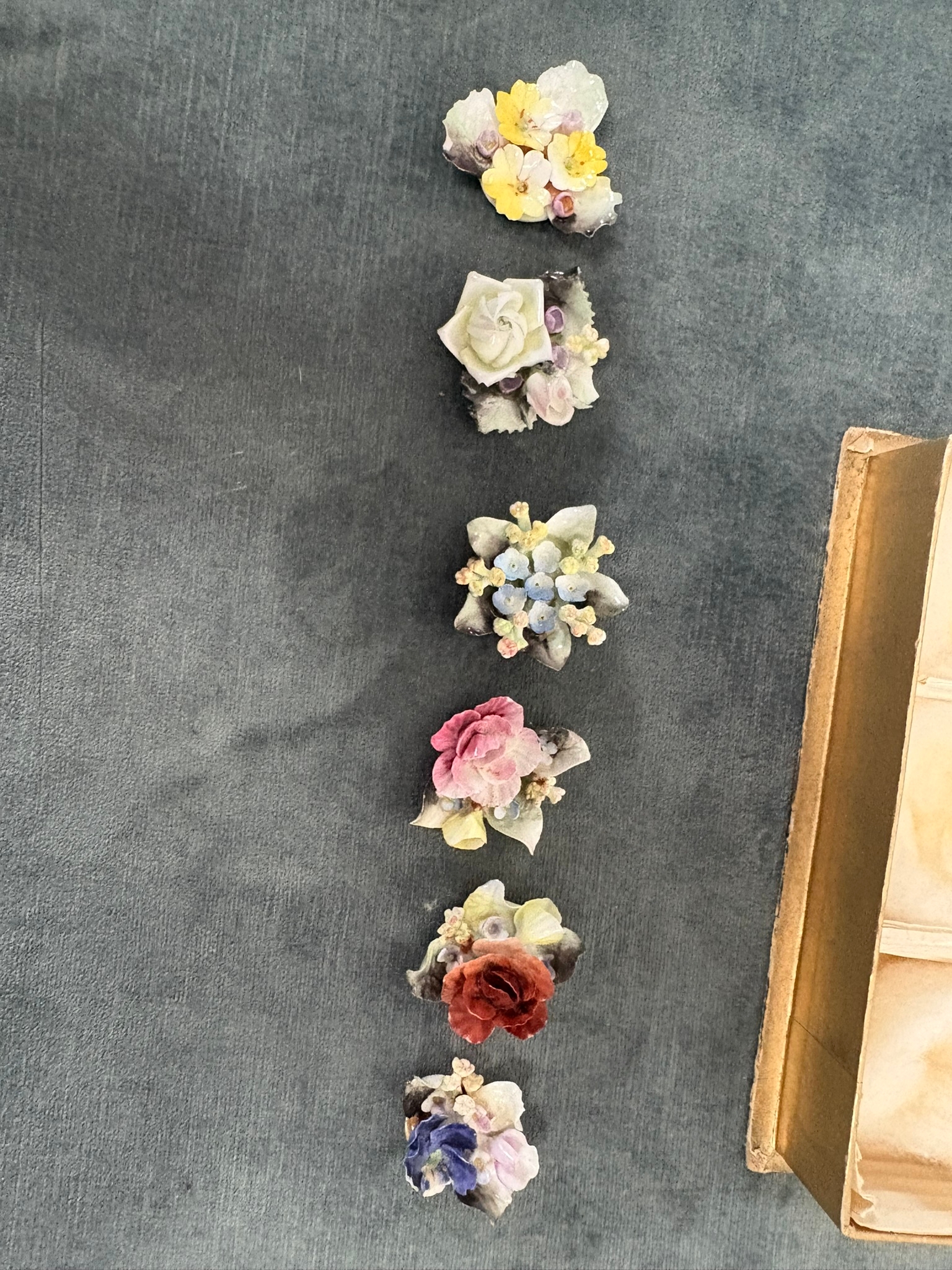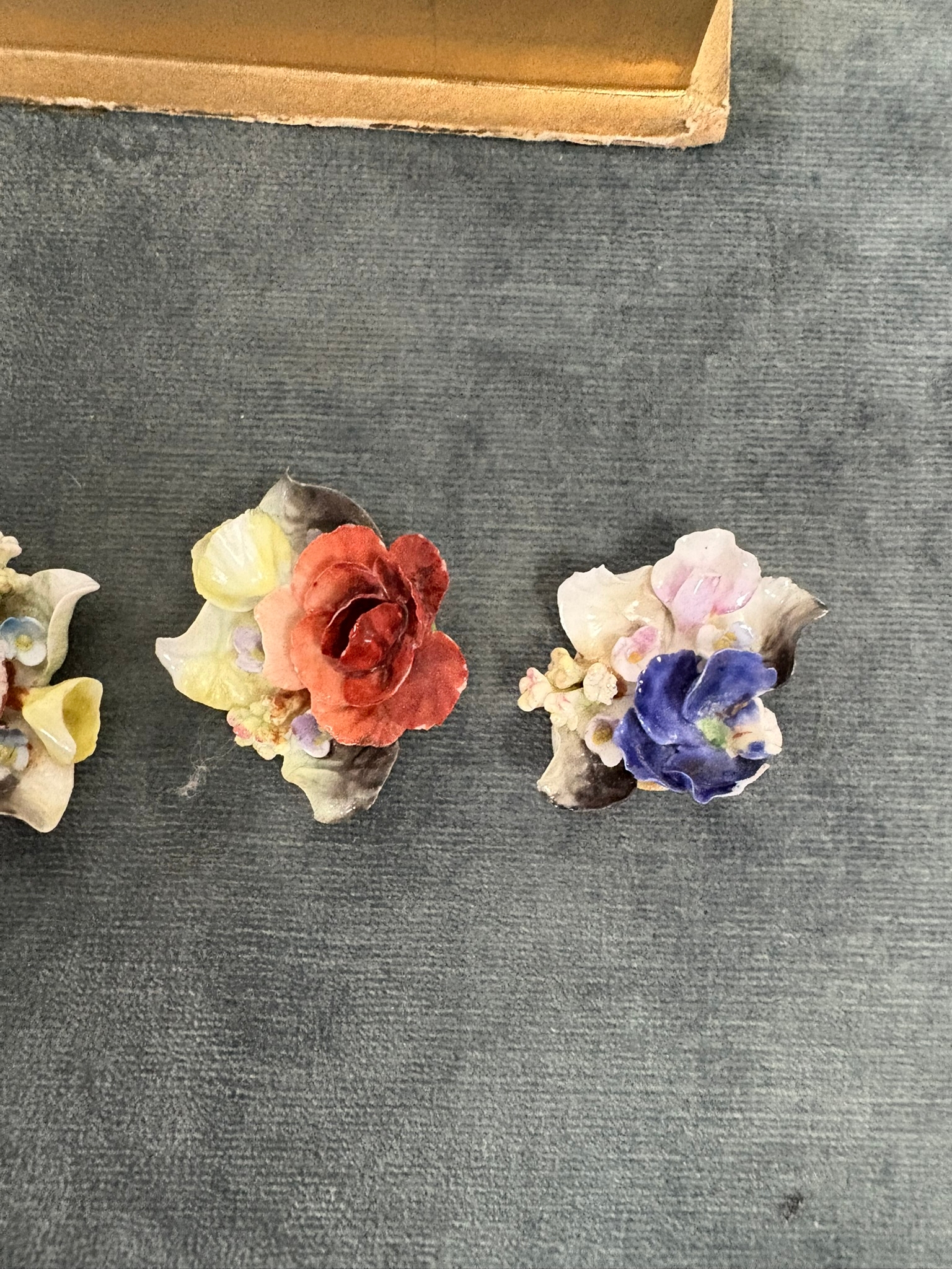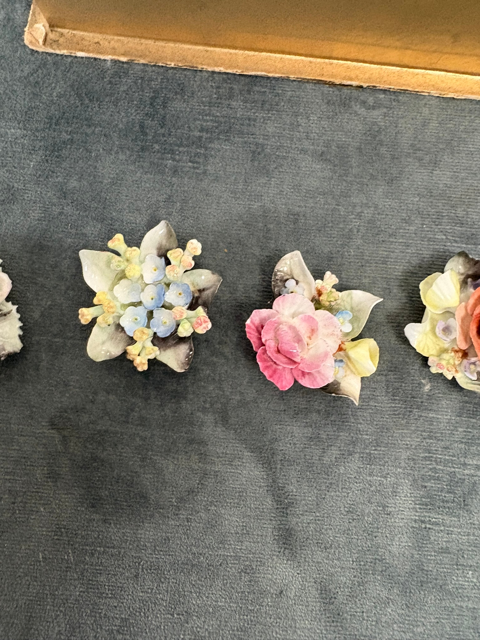 Boxed set of Royal Crown Derby ceramic flowers