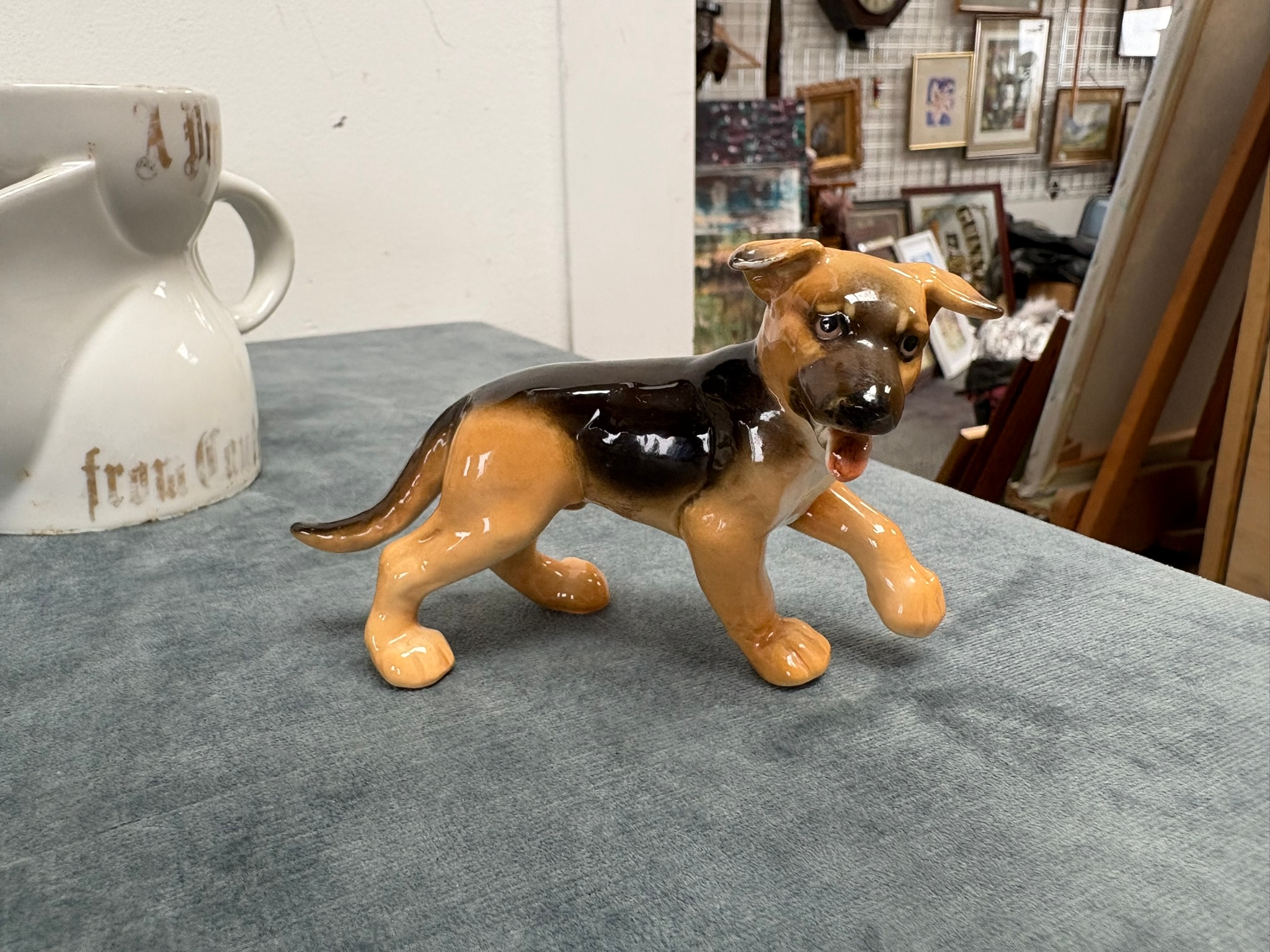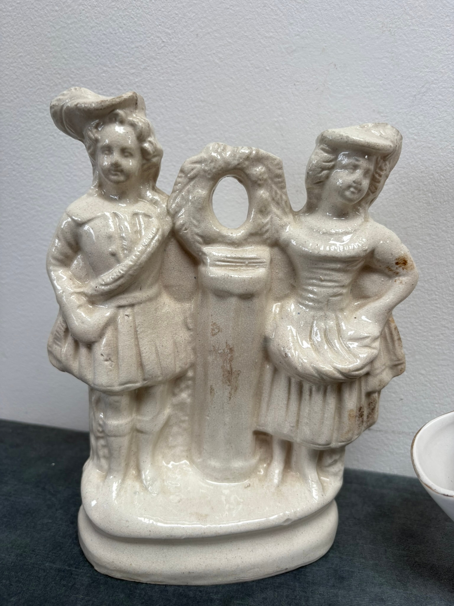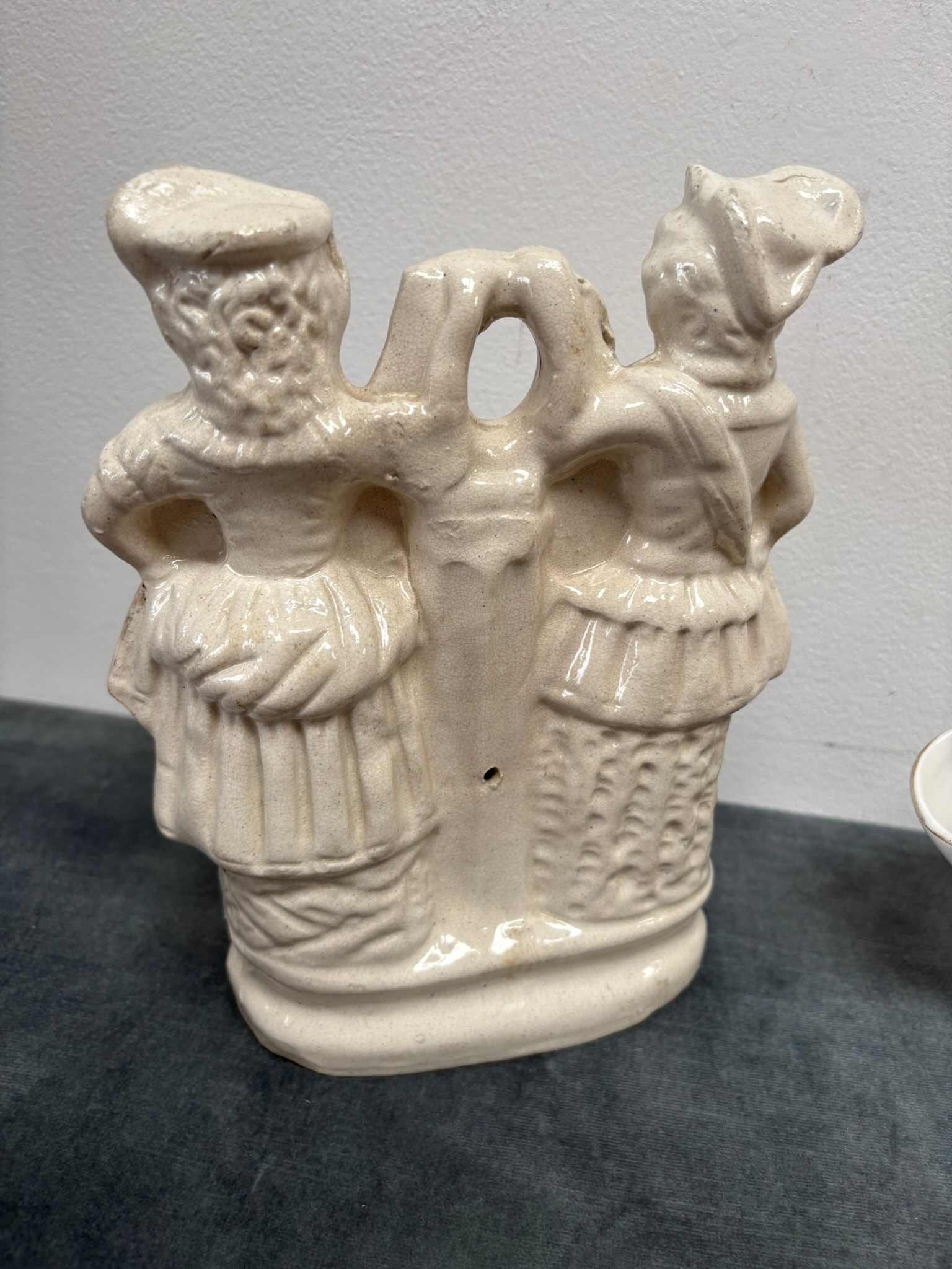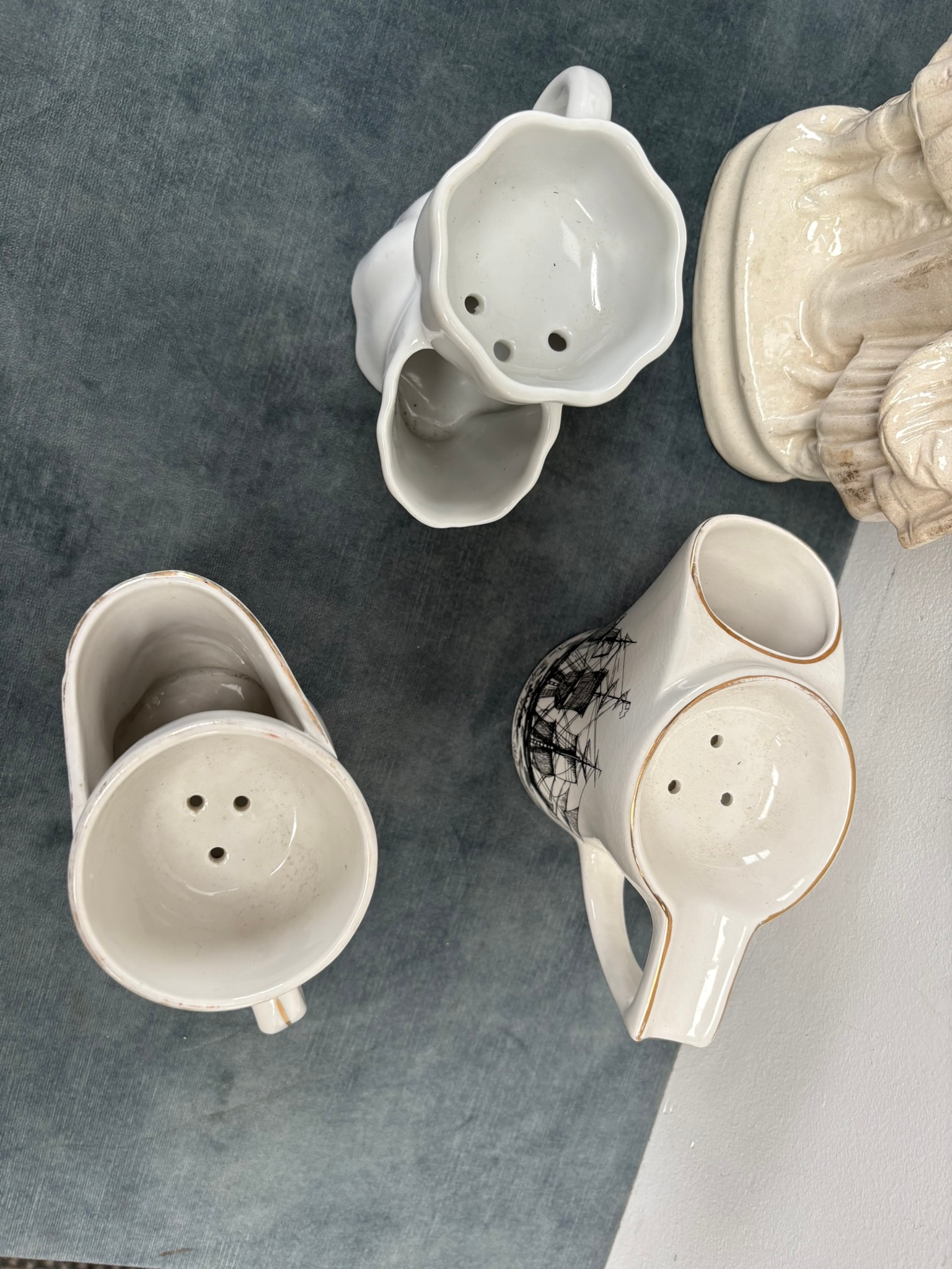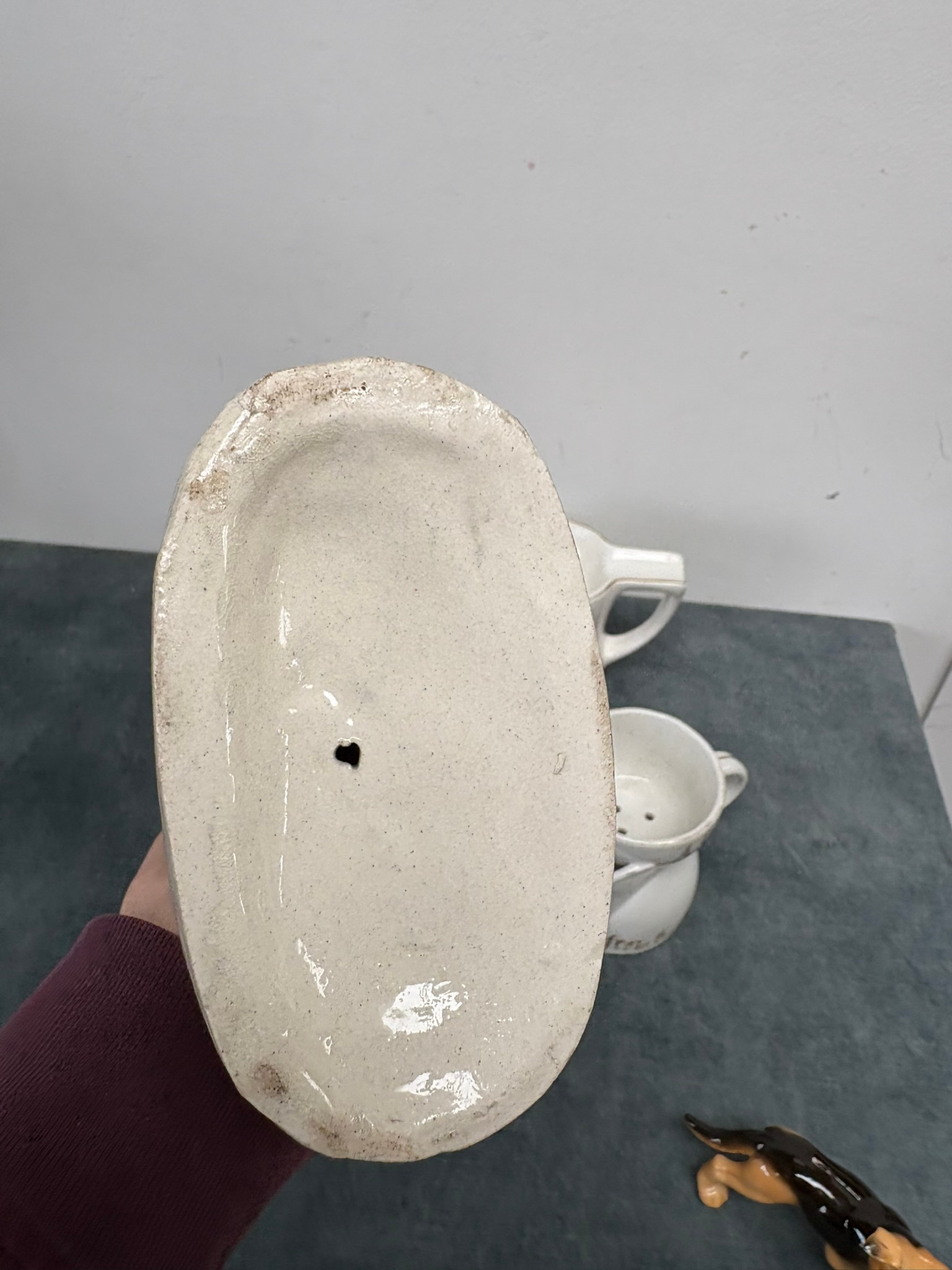 3 x Shaving mugs – Canterbury, New Bedford Whaler and one other. Along with cream ware flatback and small dog