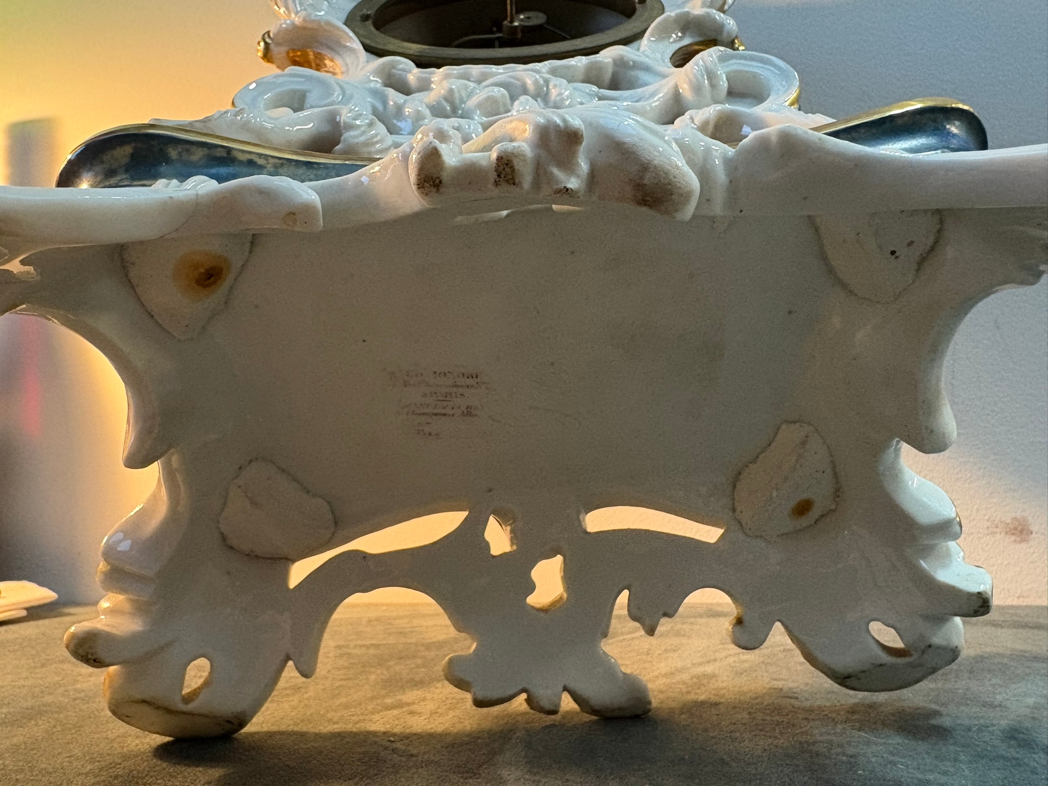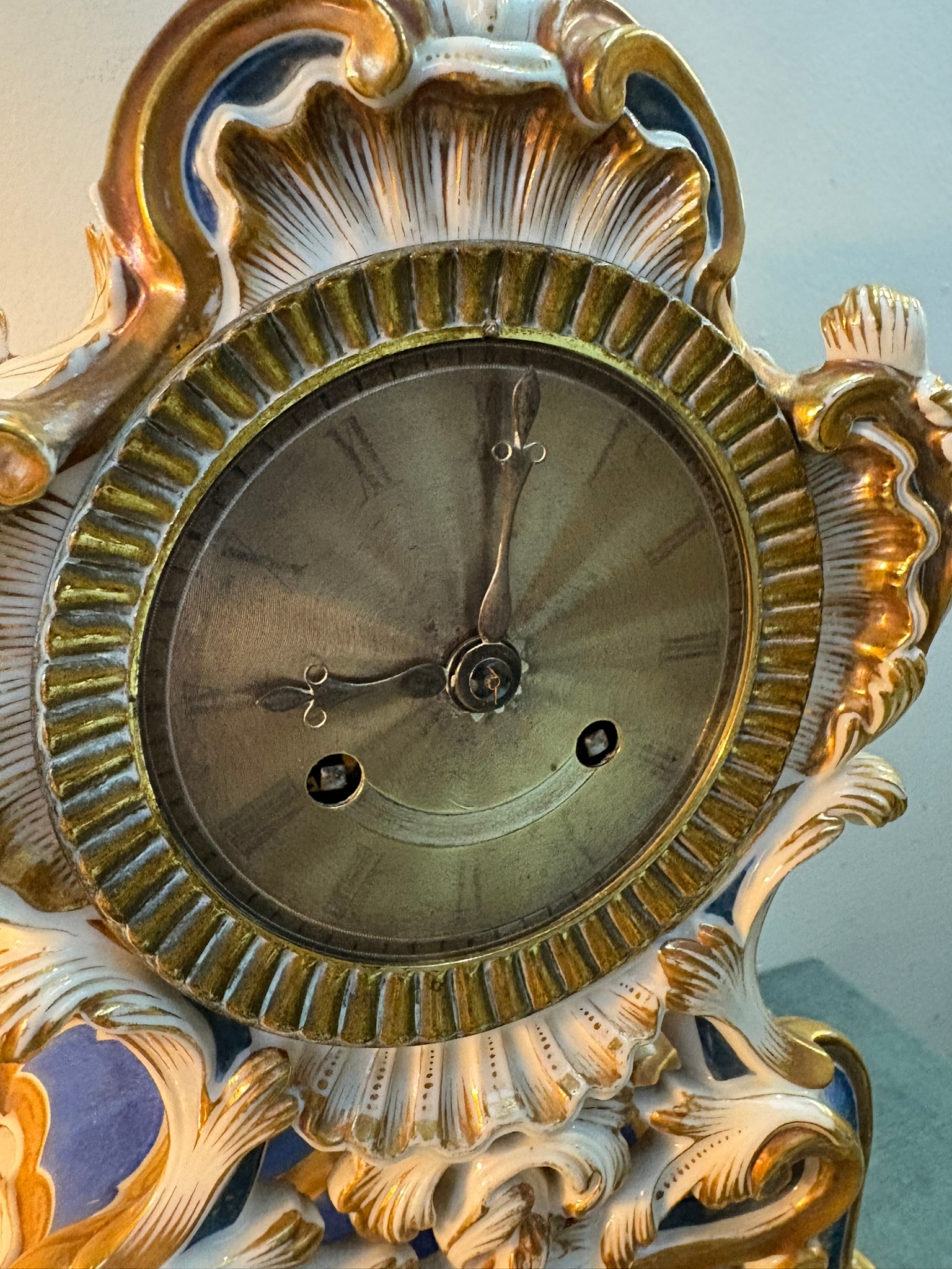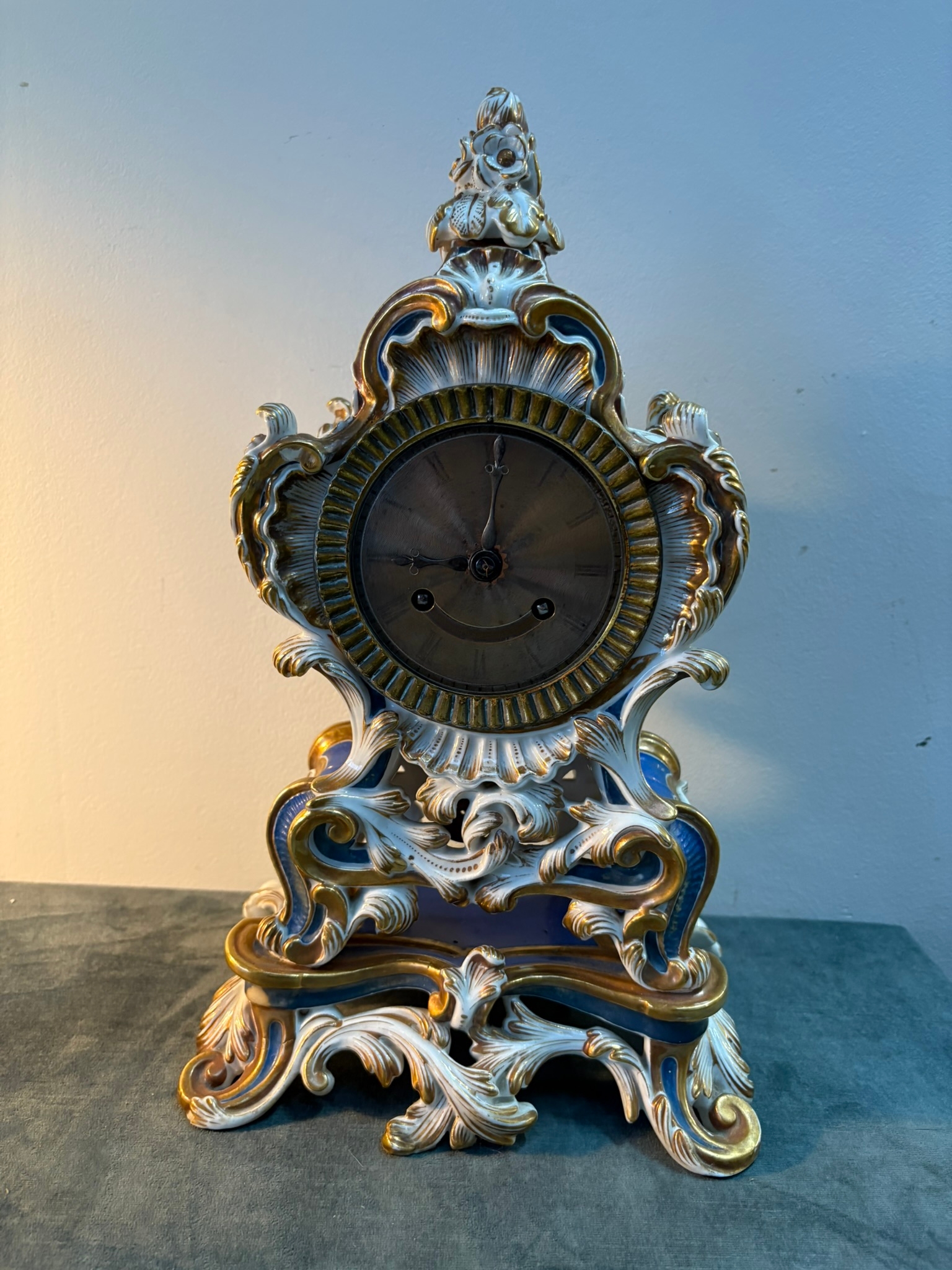 Antique Porcelain Clock By Edouard Honoré Paris. Silk suspension and rose cut face