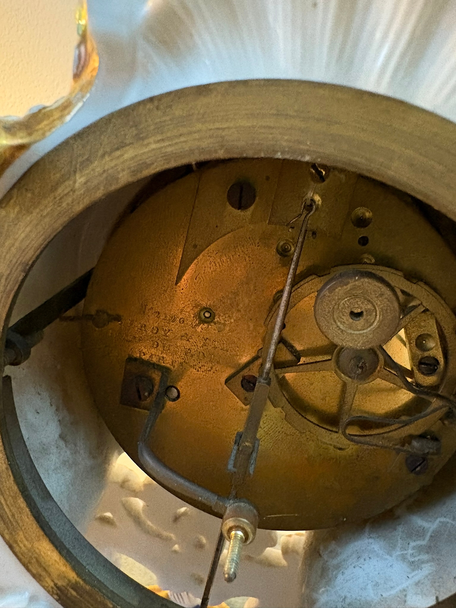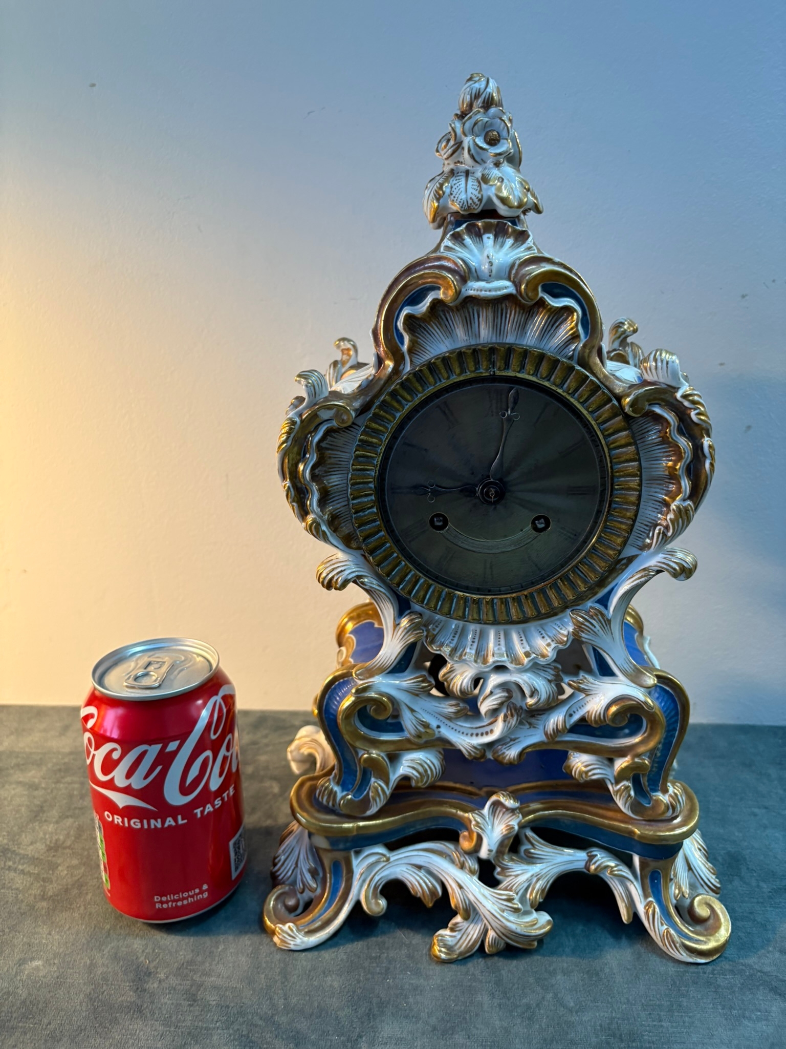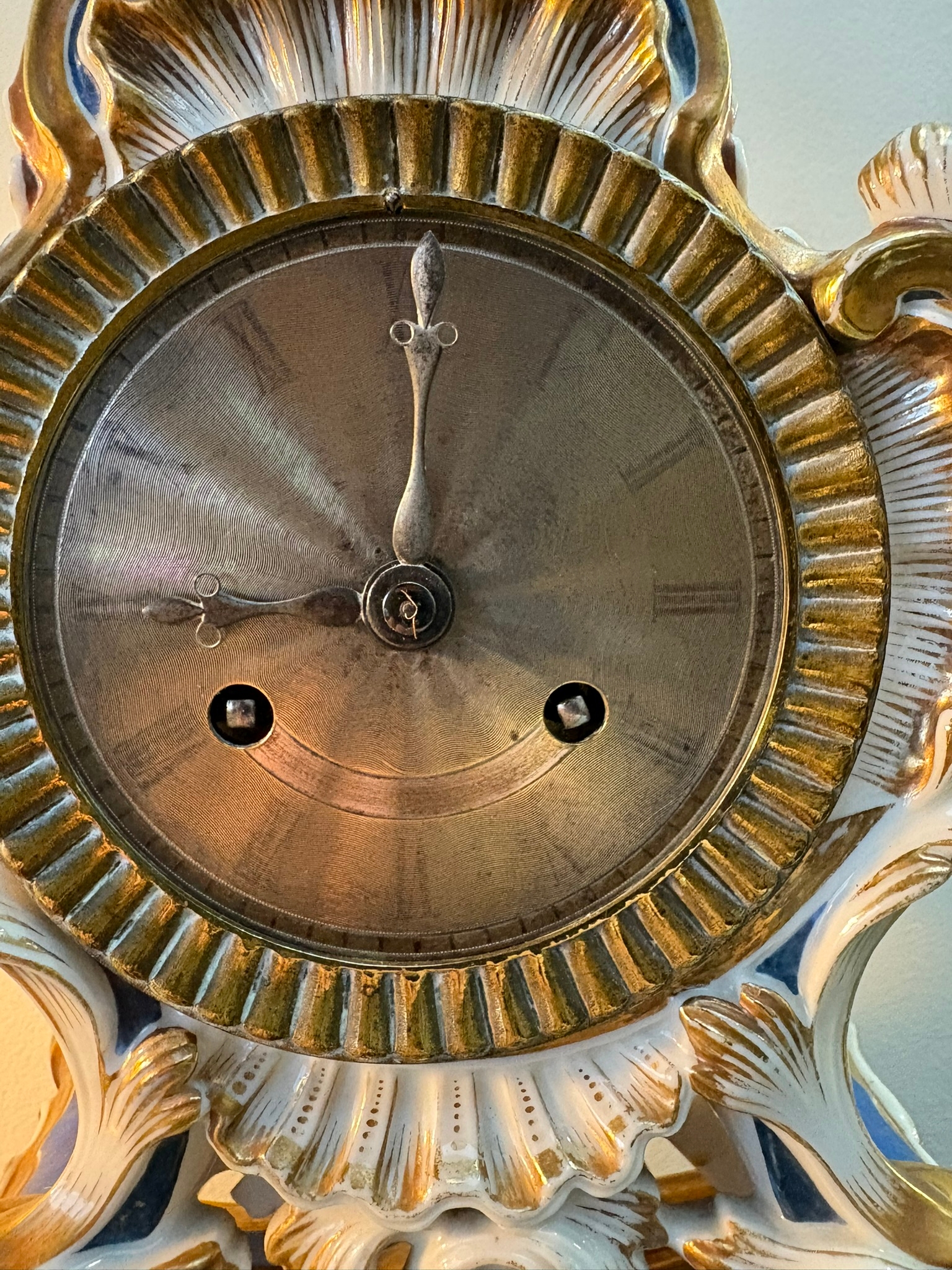 Antique Porcelain Clock By Edouard Honoré Paris. Silk suspension and rose cut face