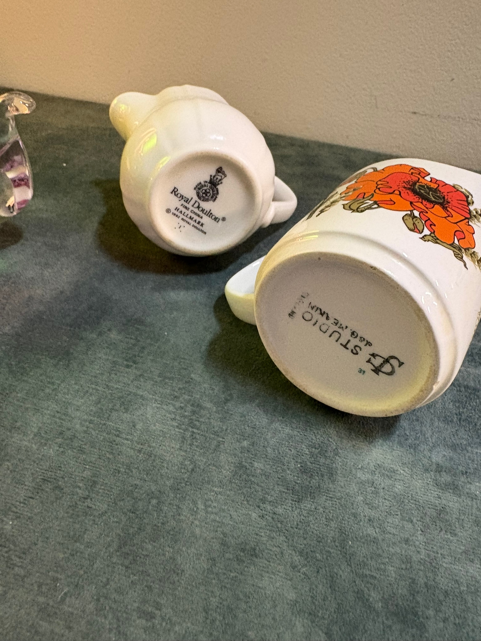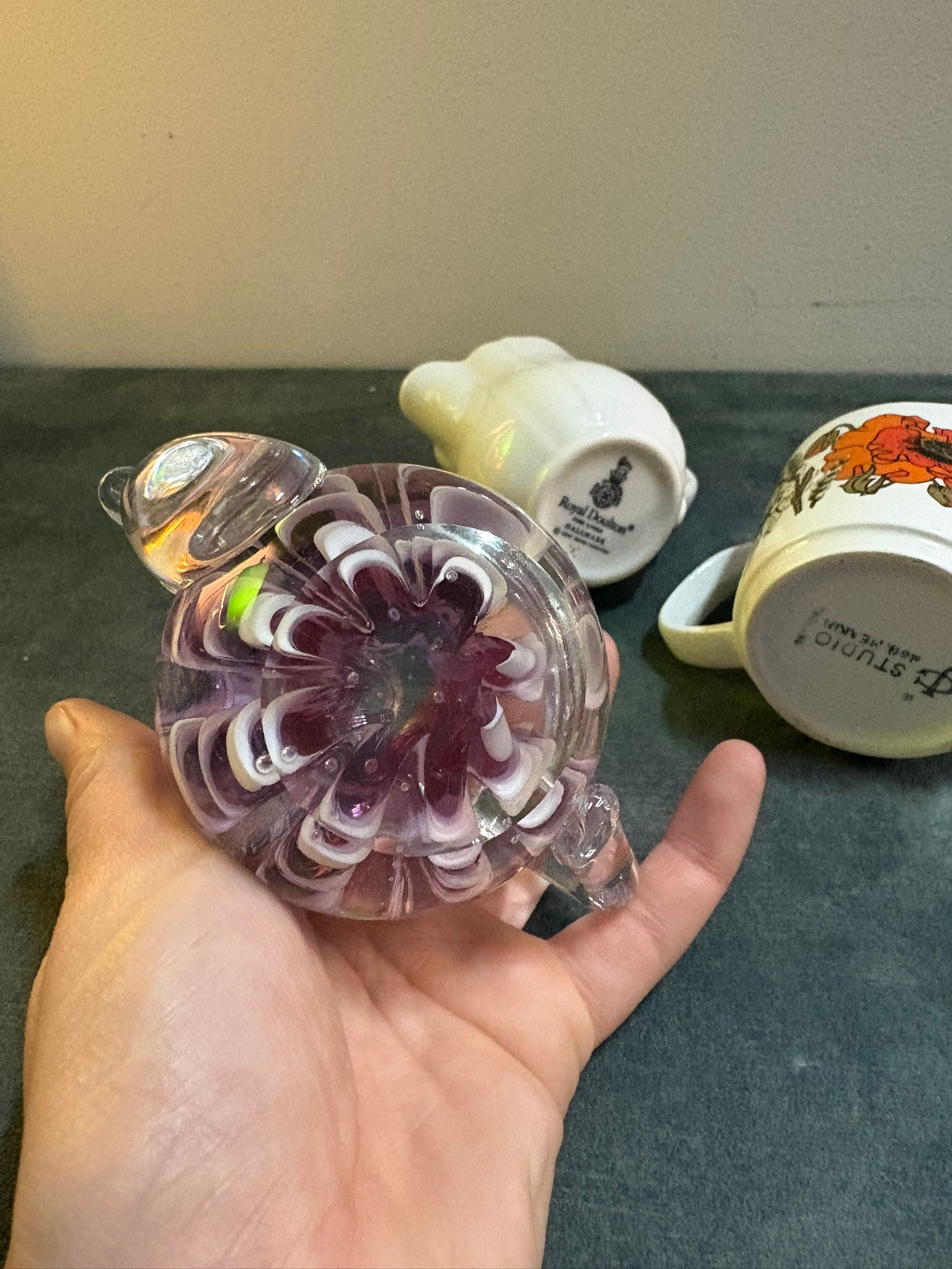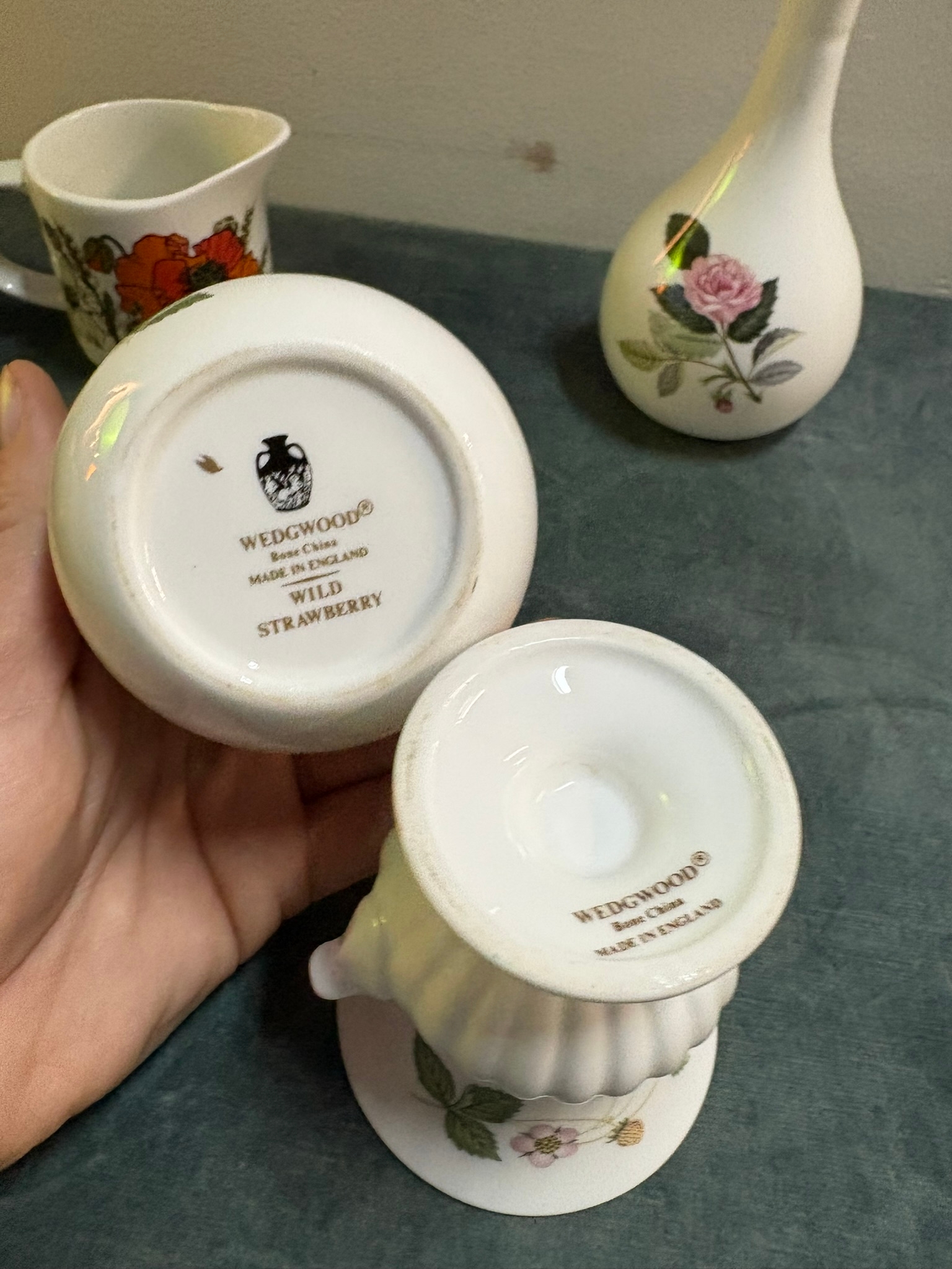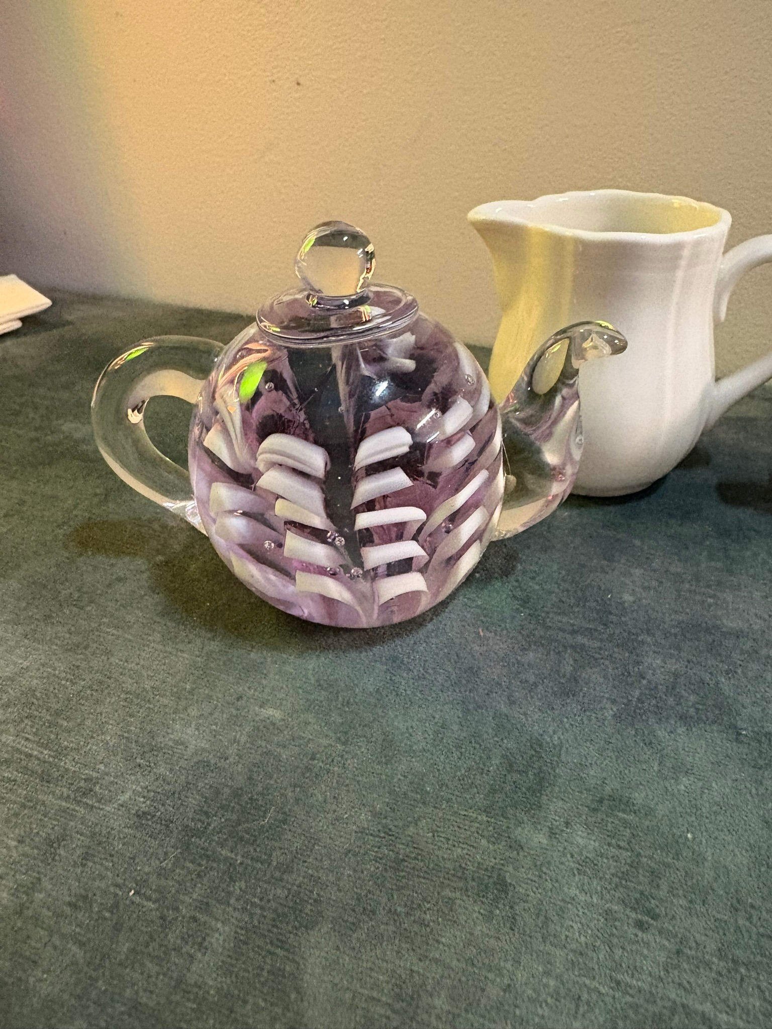 2 x Wedgewood posy vases, Wedgewood urn, glass teapot paperweight and two small jugs