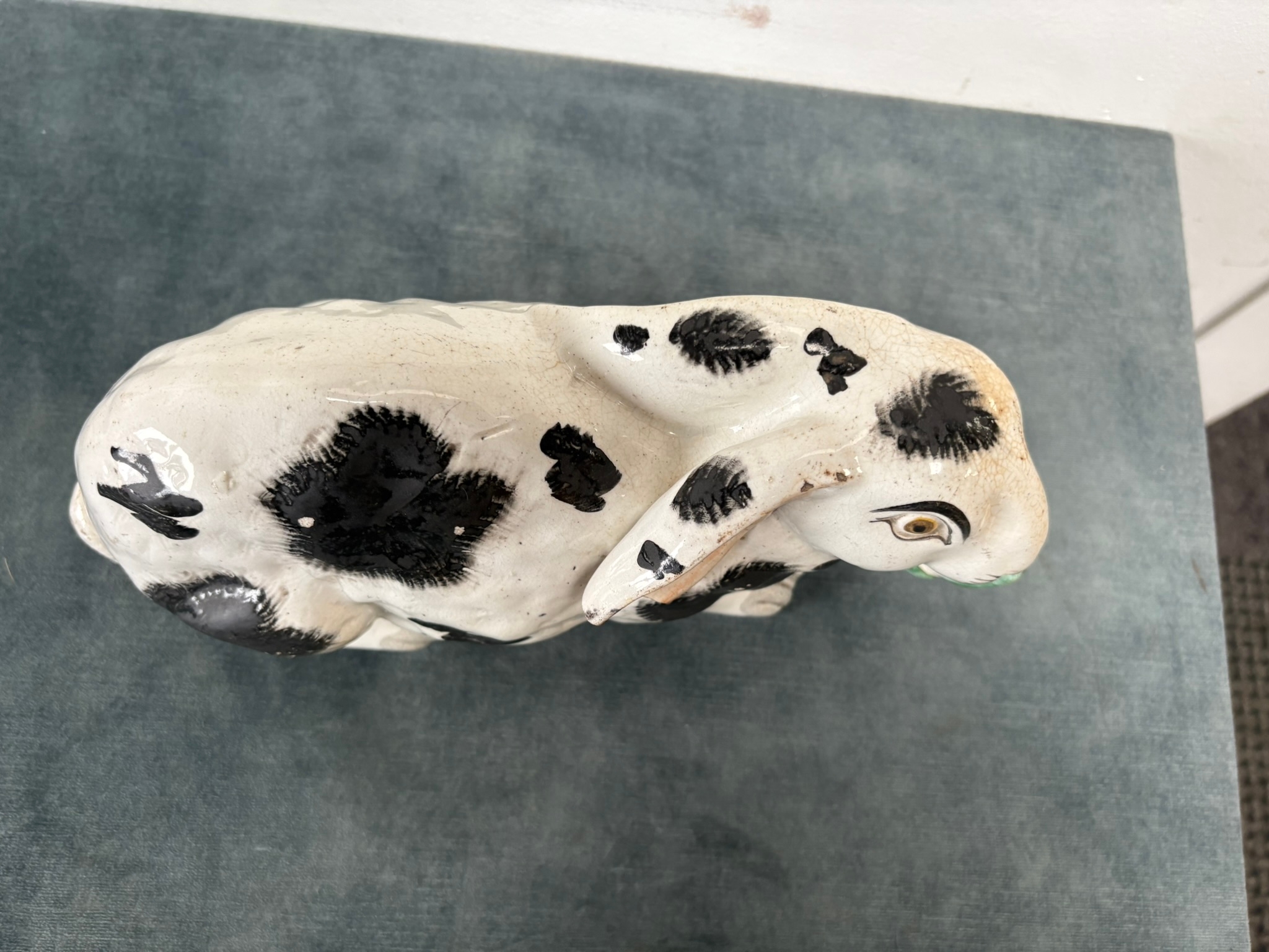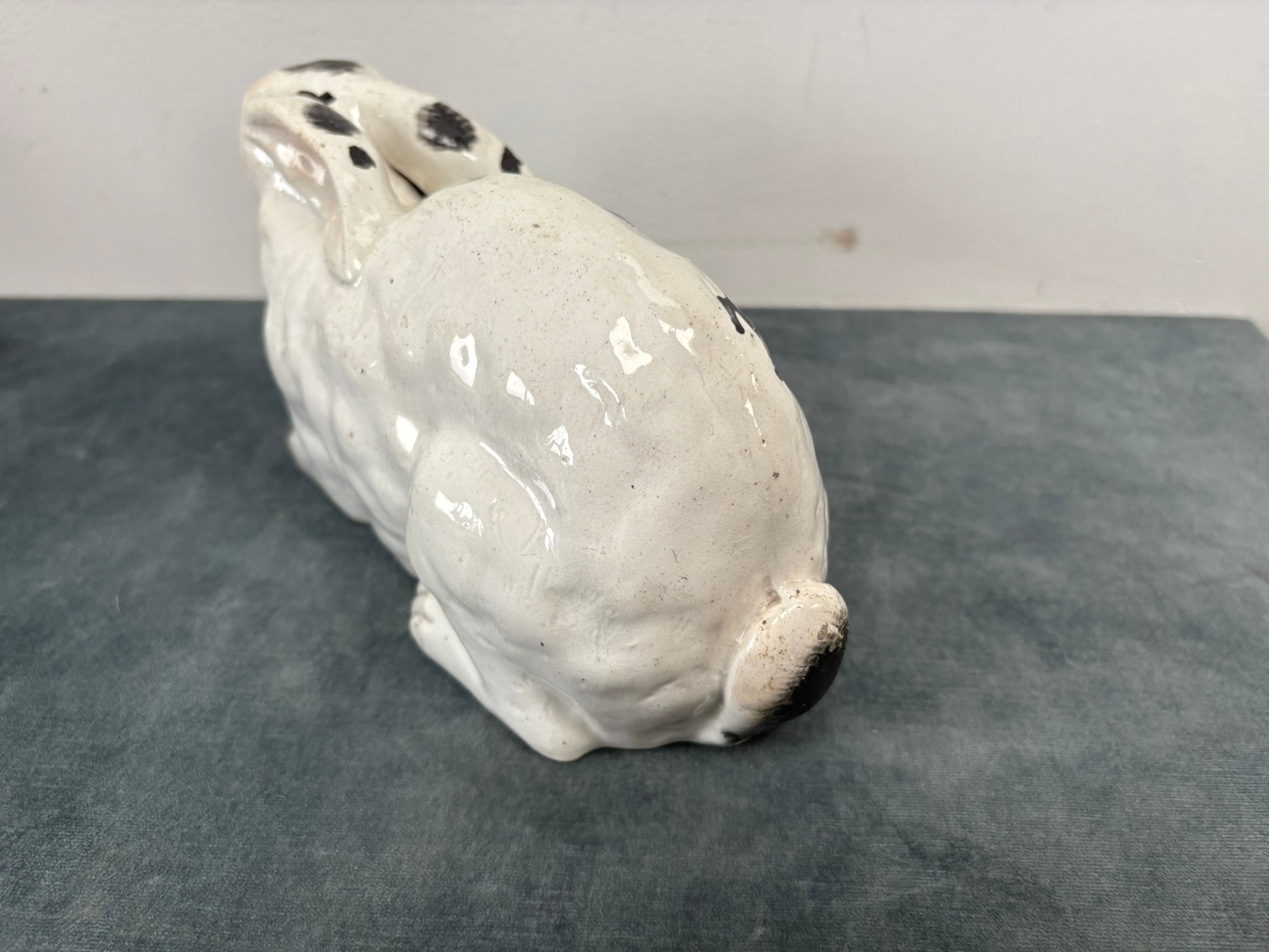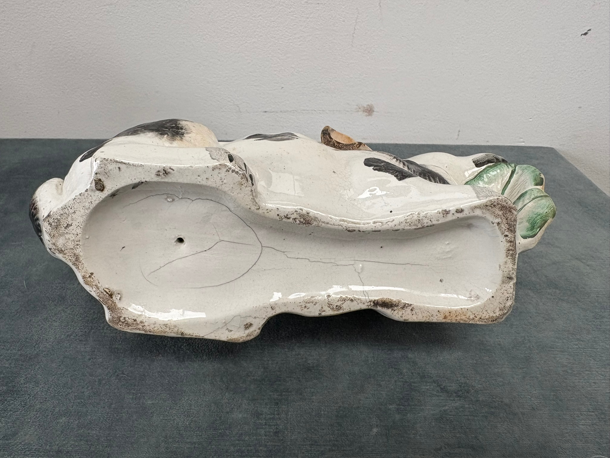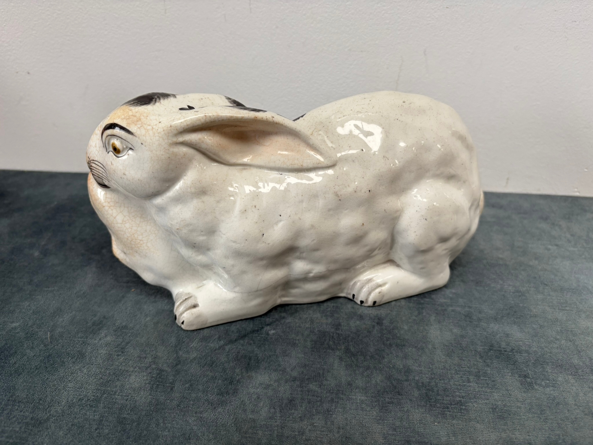 Antique Staffordshire pottery rabbit nibbling leaves