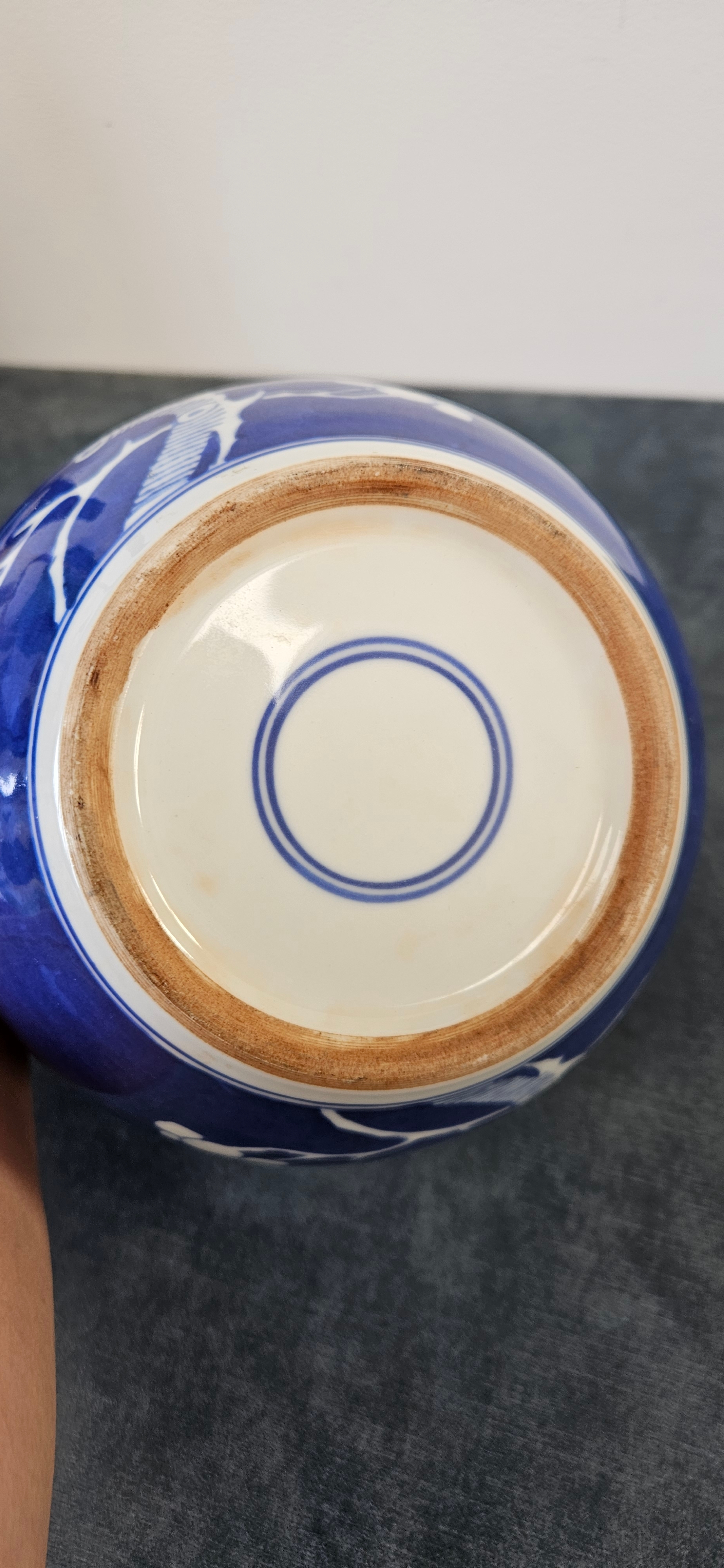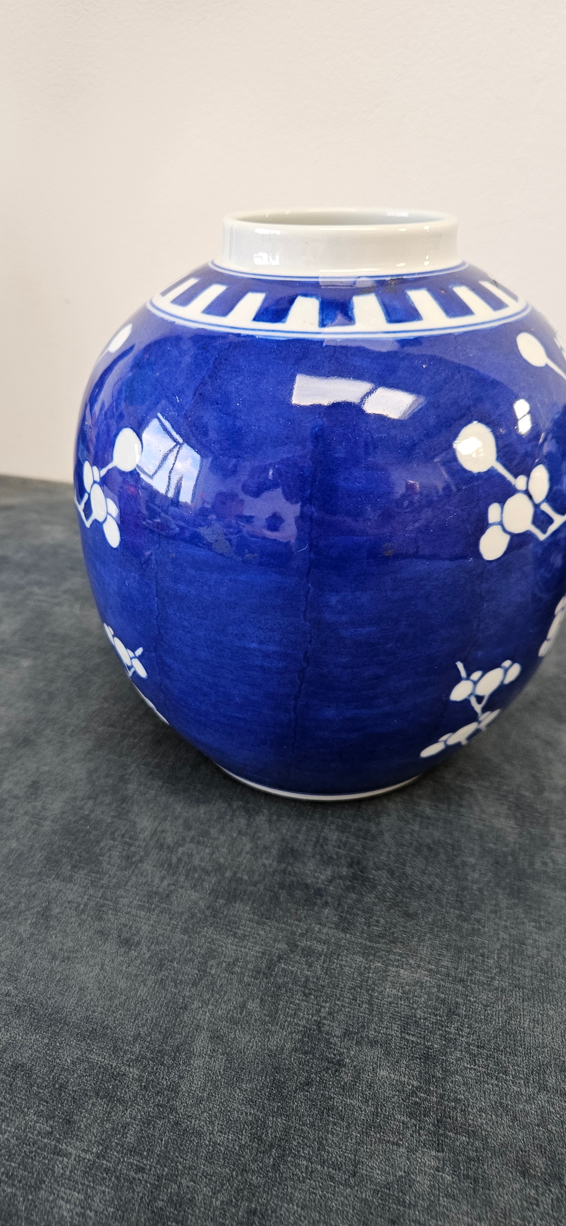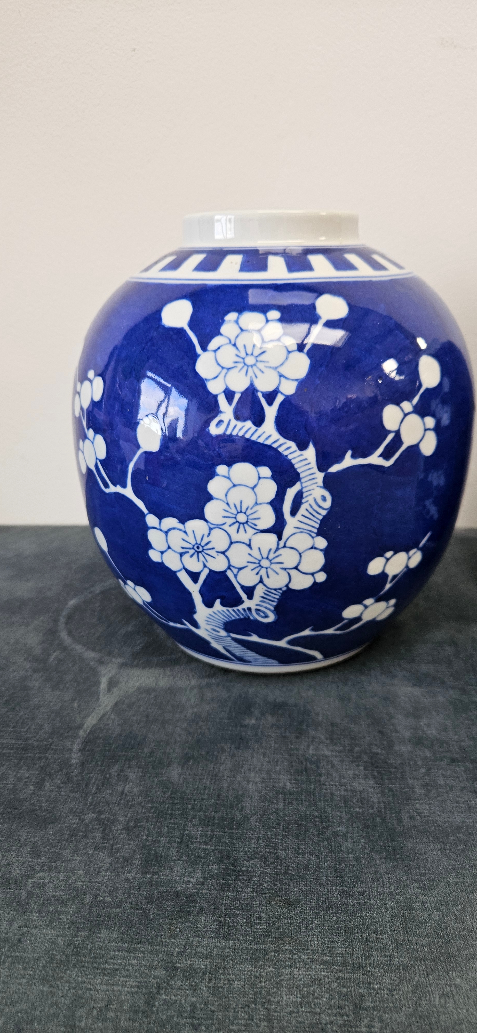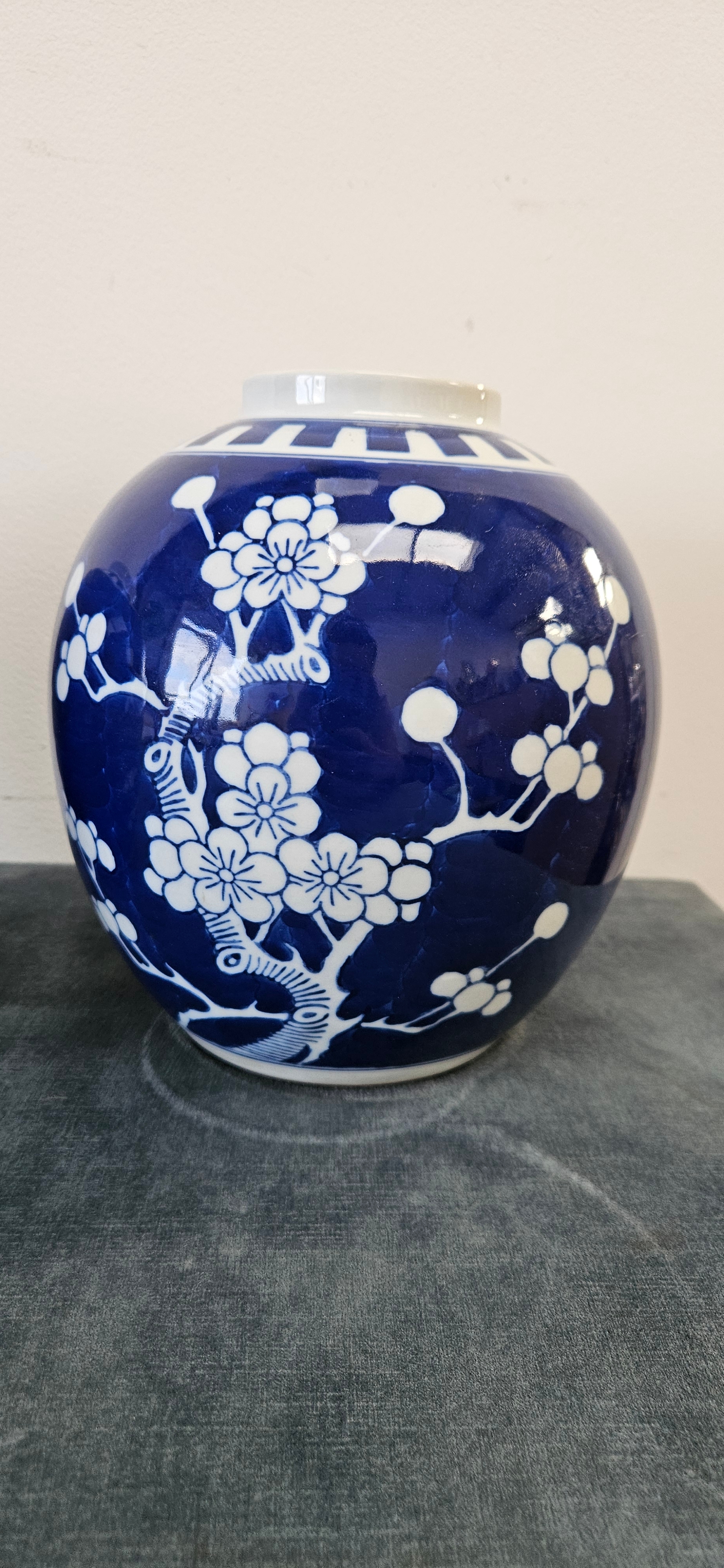 2 x Large oriental ginger jars. Blue and white and decorated with prunus blossom