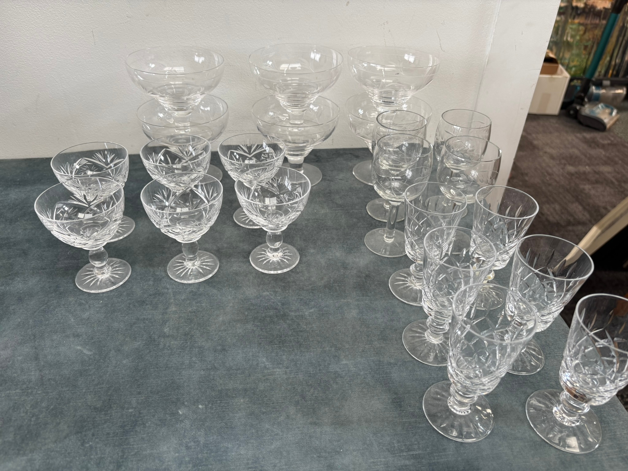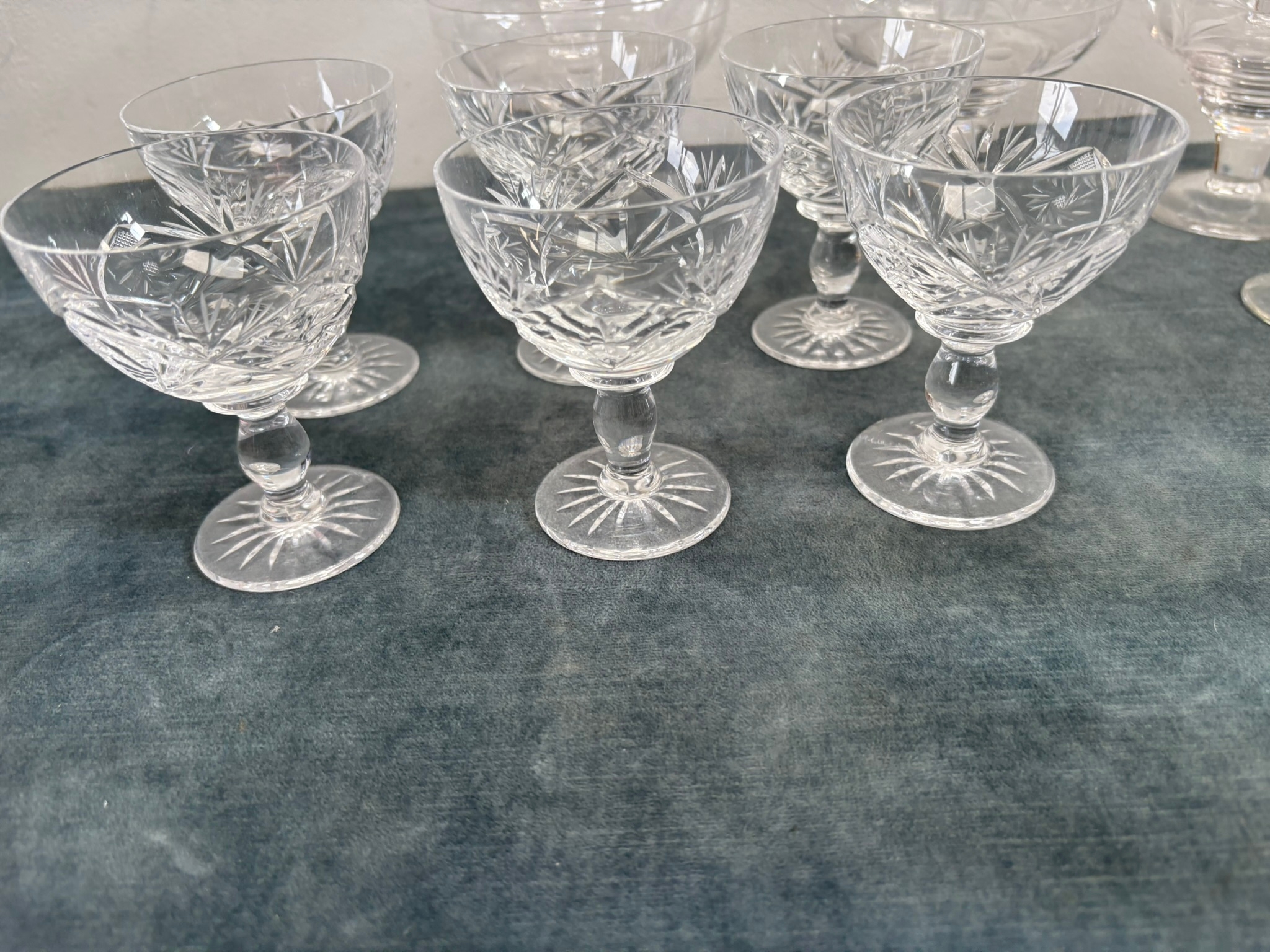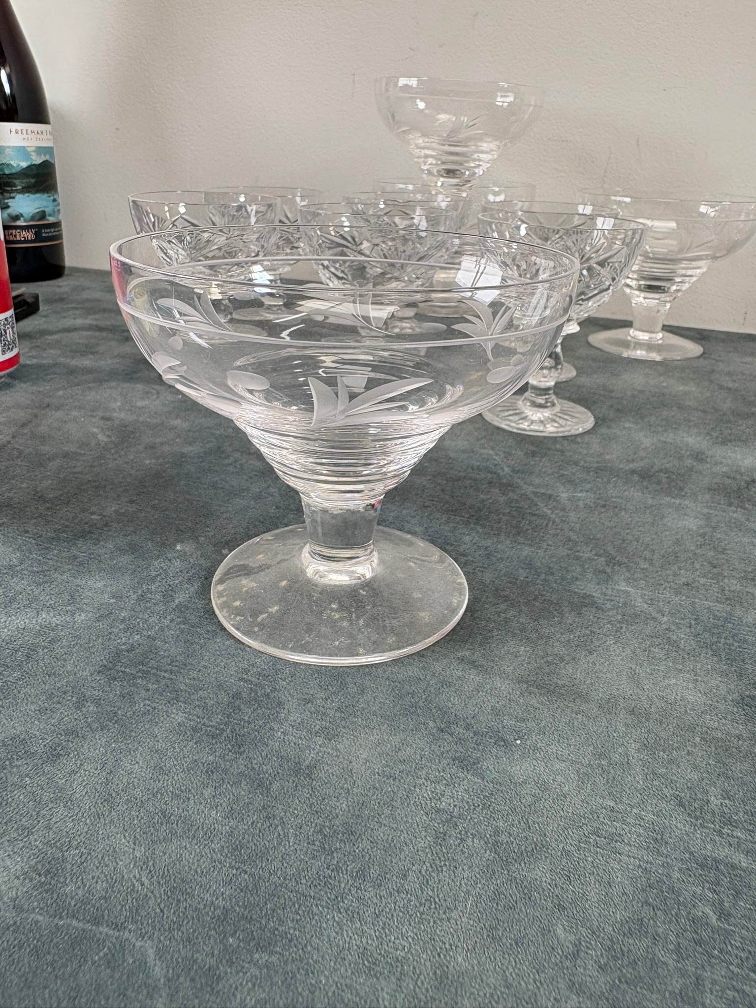6 x Stuart Crystal sundae dishes, and other crystal wine glasses