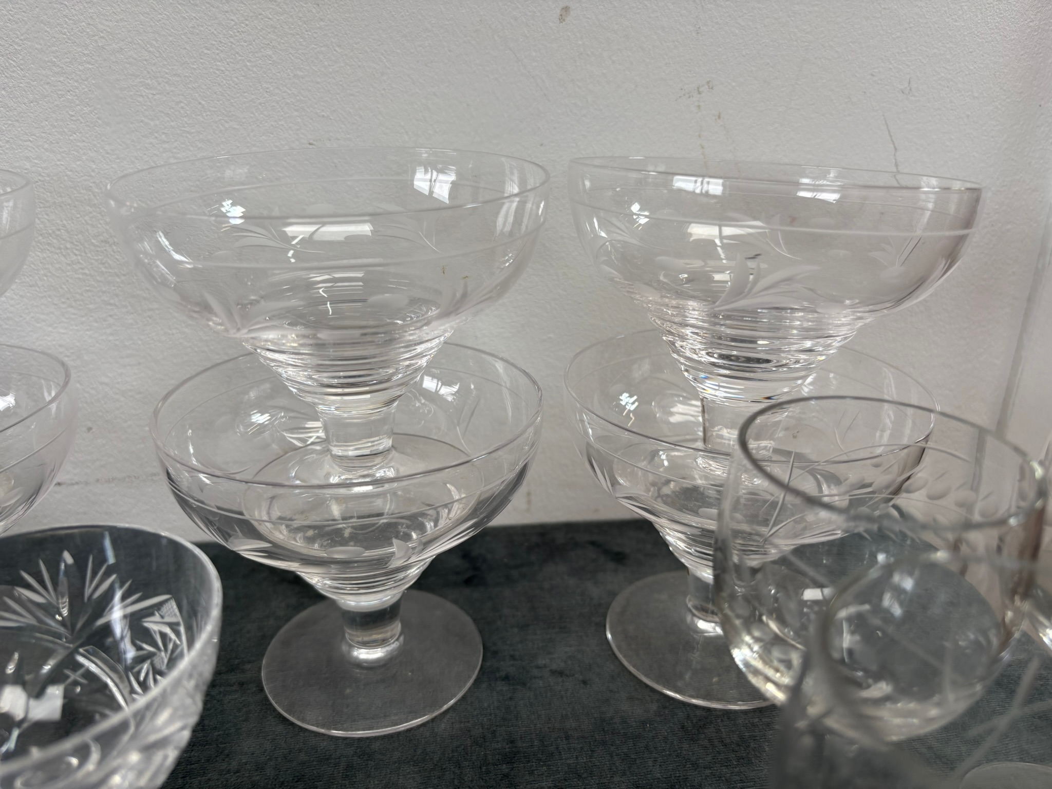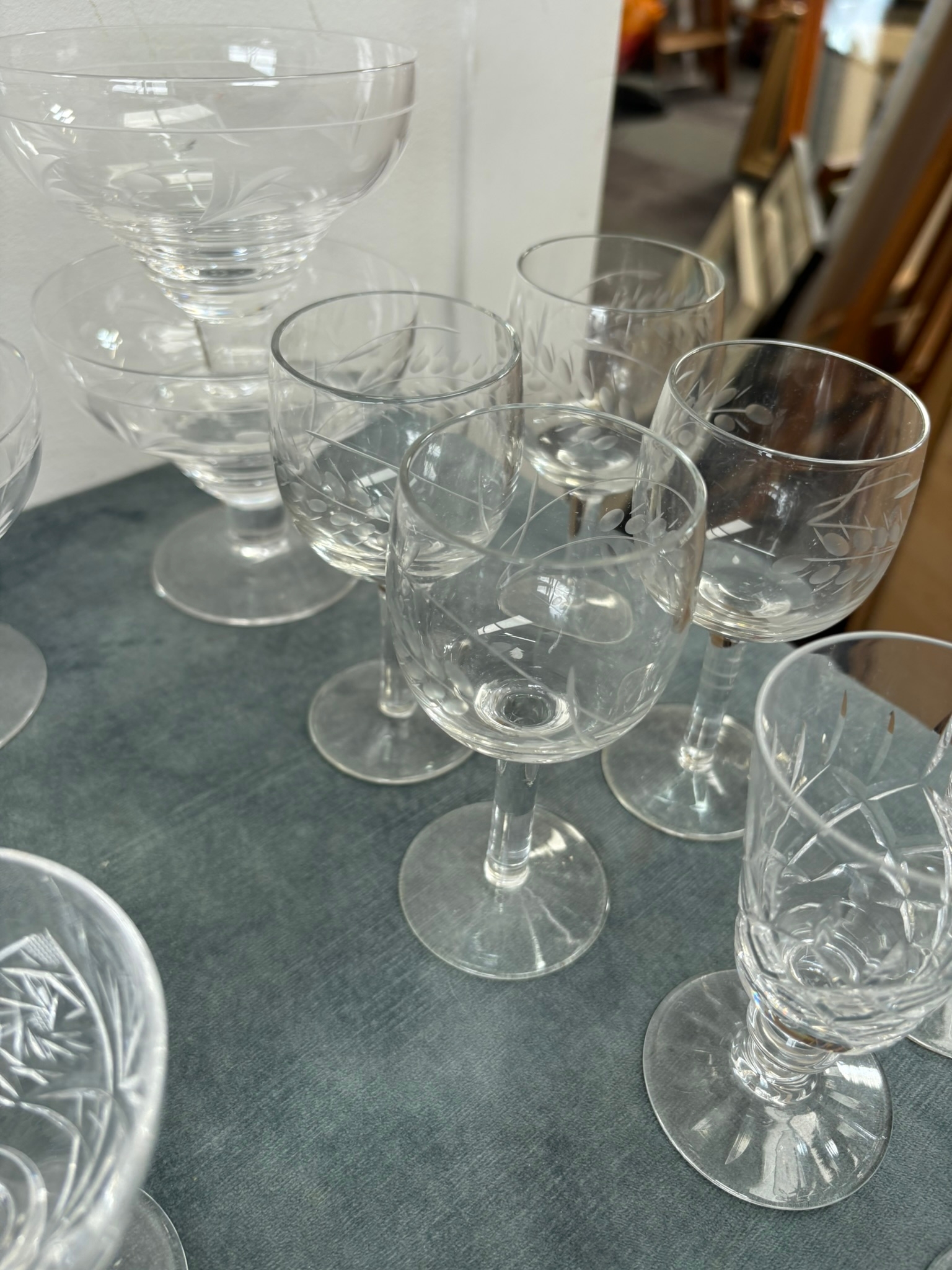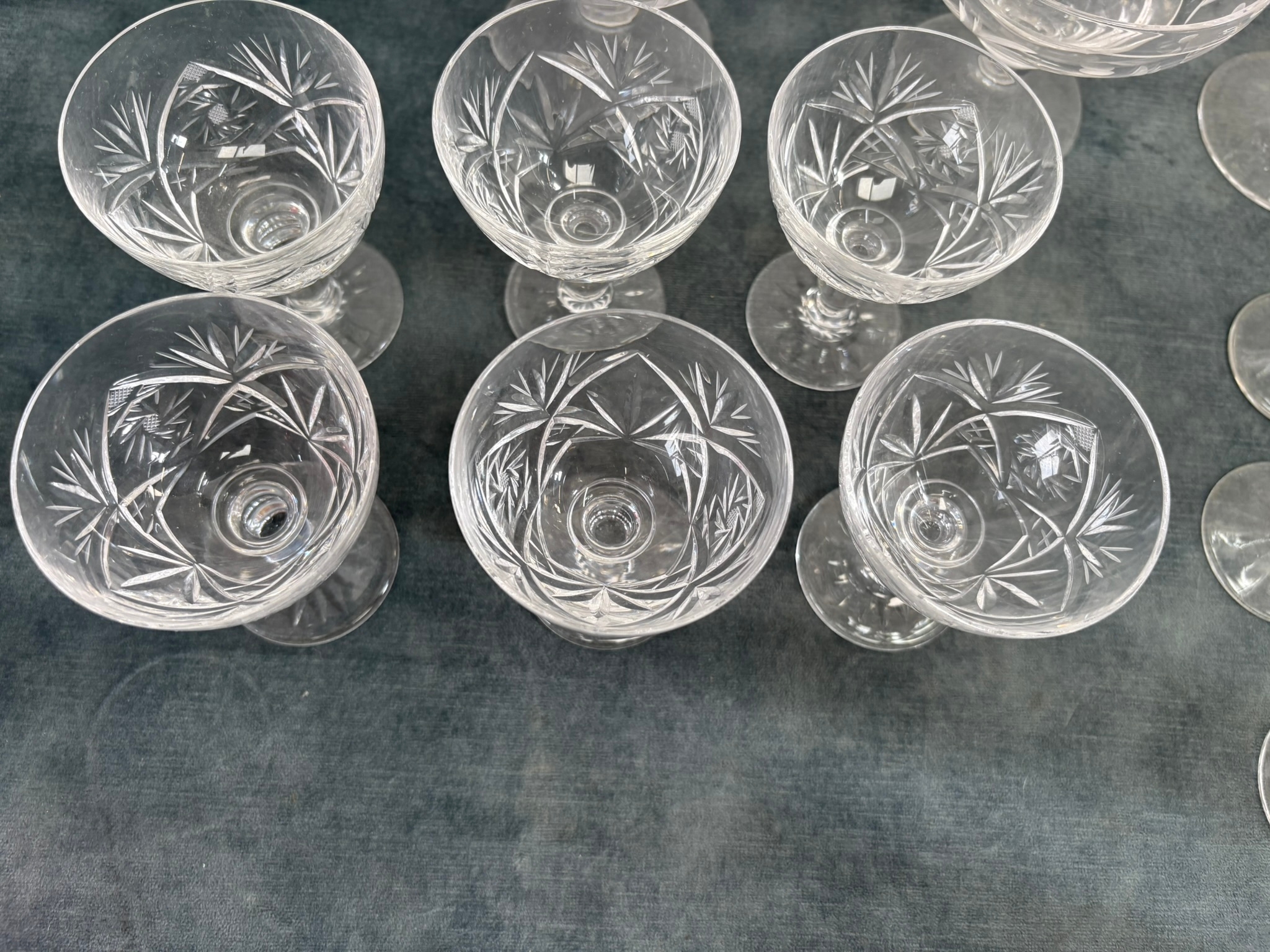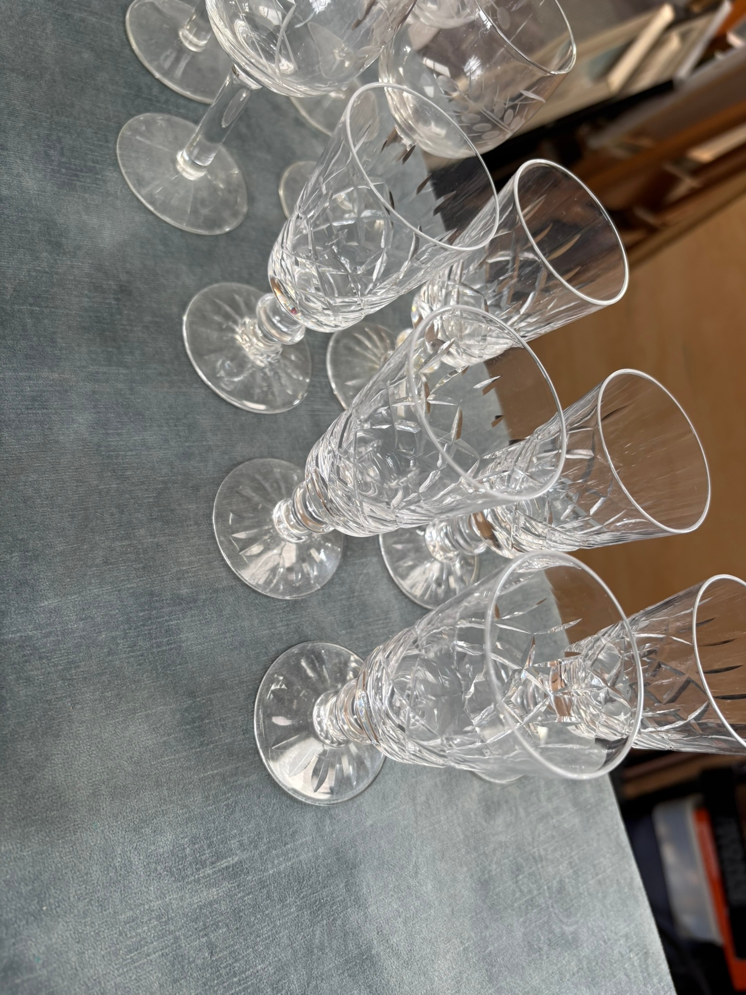6 x Stuart Crystal sundae dishes, and other crystal wine glasses