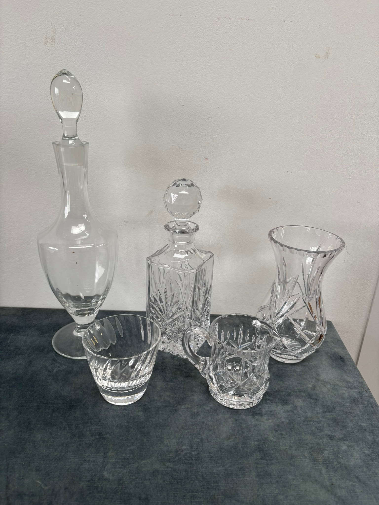 Glass decanter, crystal decanter, crystal vase, small glass vase and crystal jug.