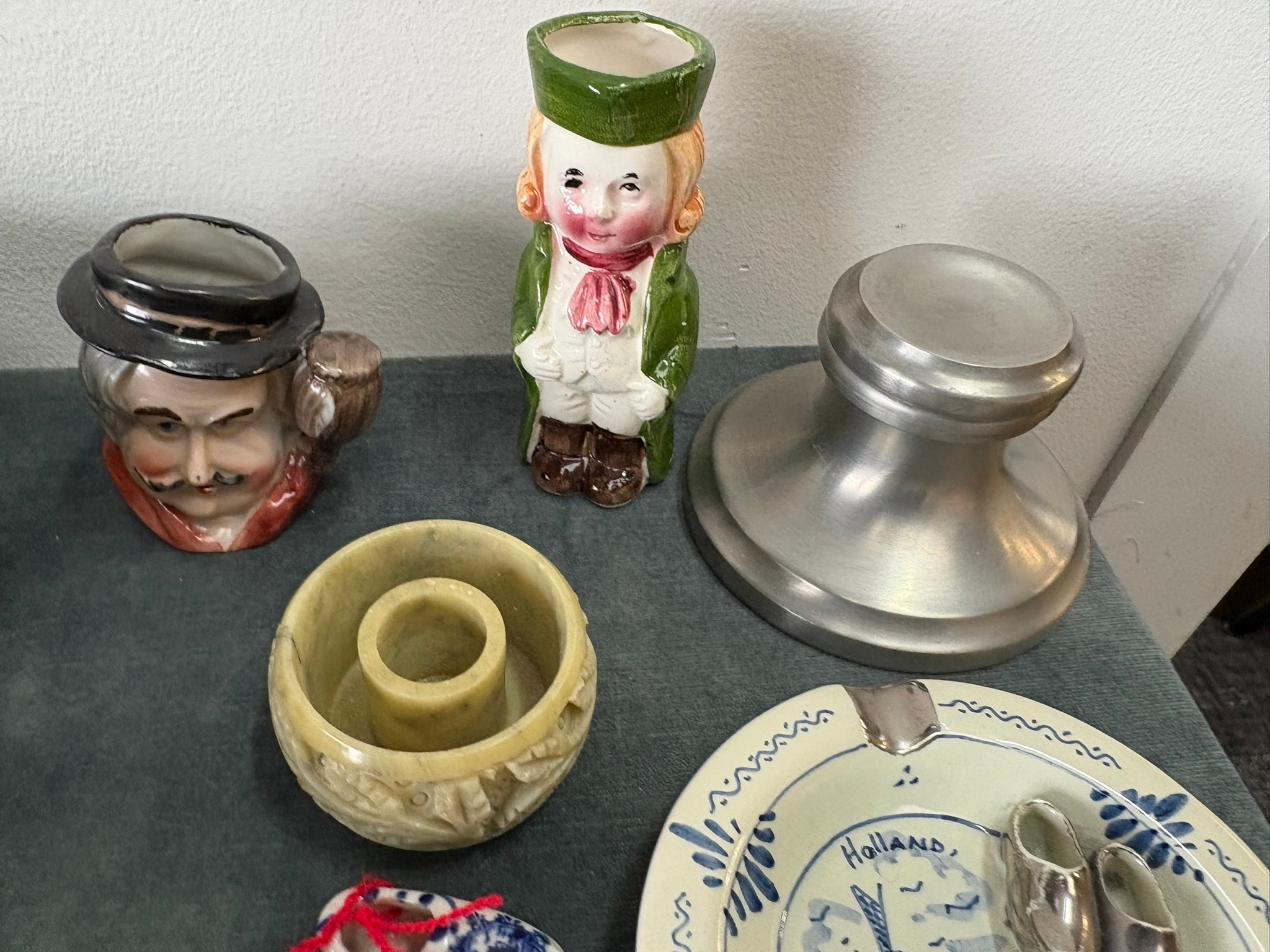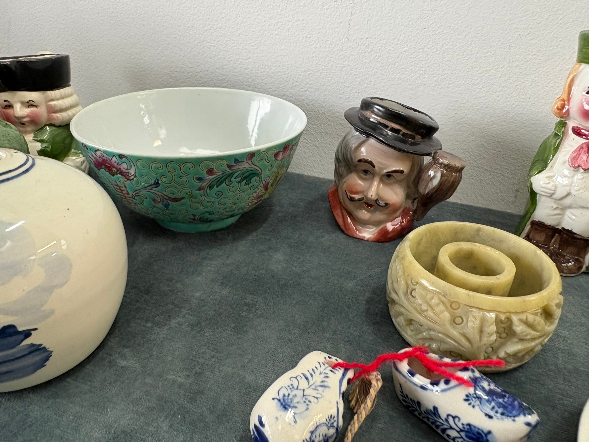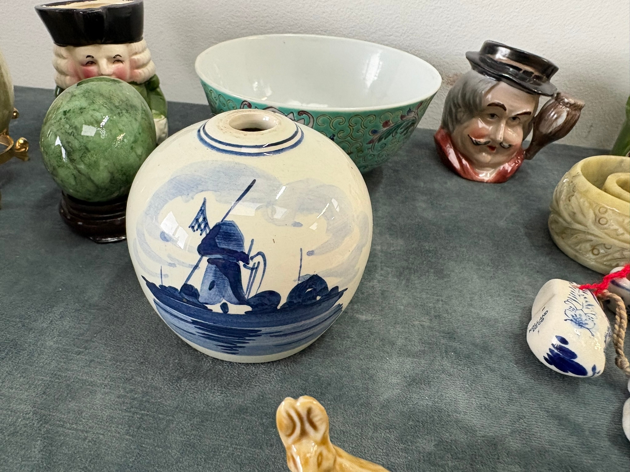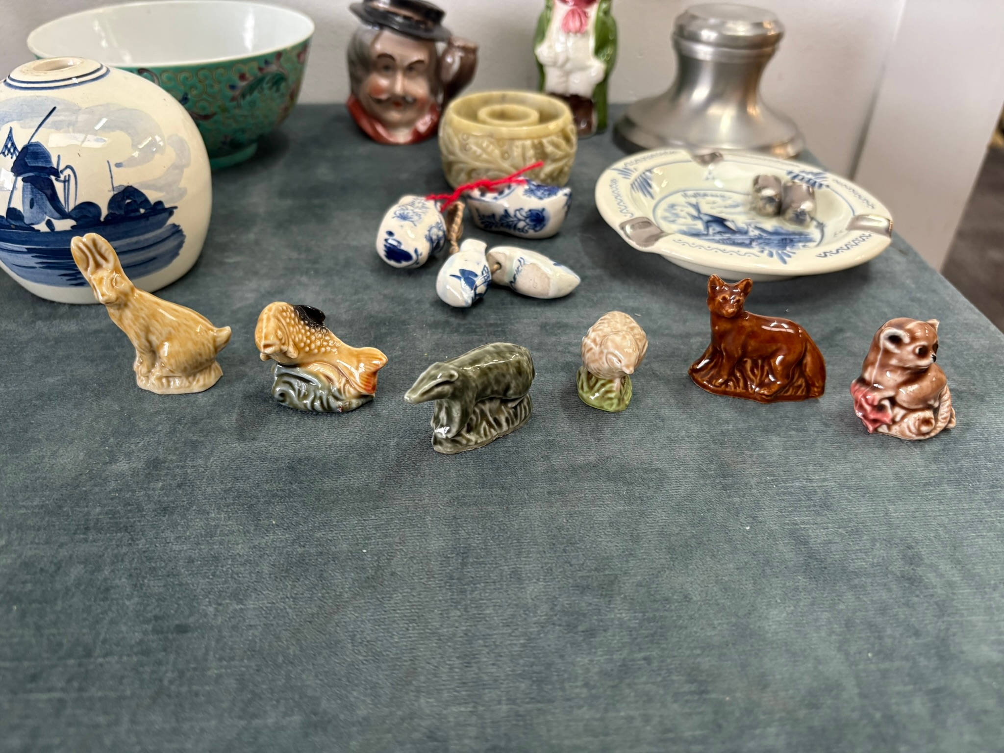 Miscellaneous ornaments including onyx eggs, delft, toby jugs, wade miniatures ect.
