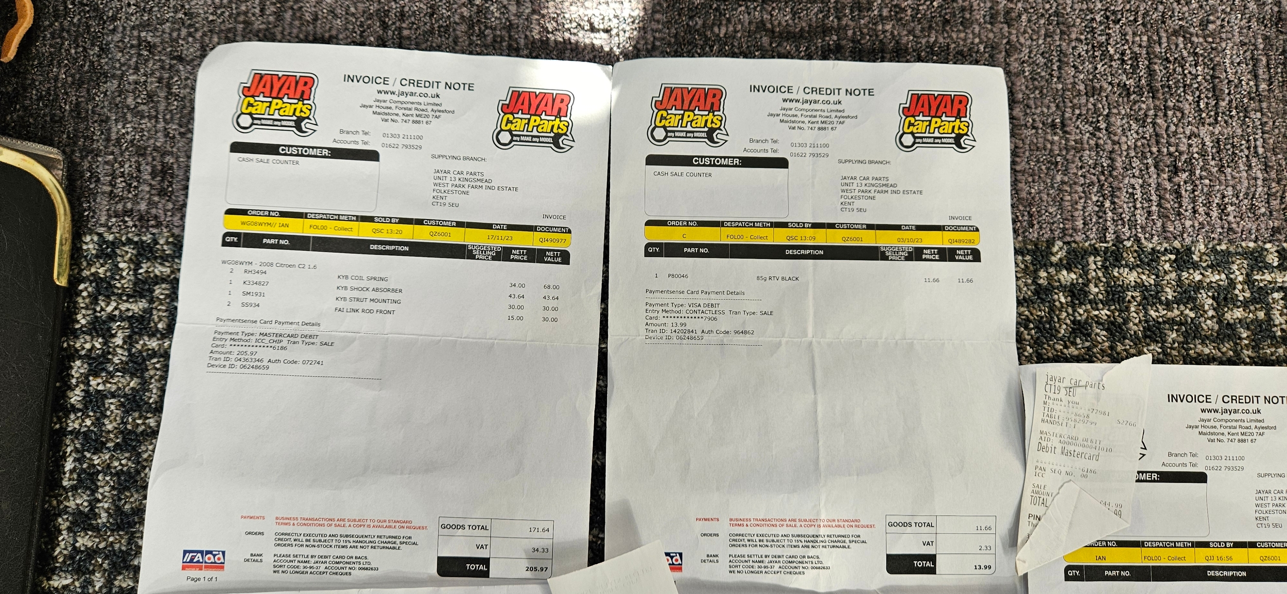 Large amount of car parts/ spares for a 2008 Citroen C2 – as new, never used.