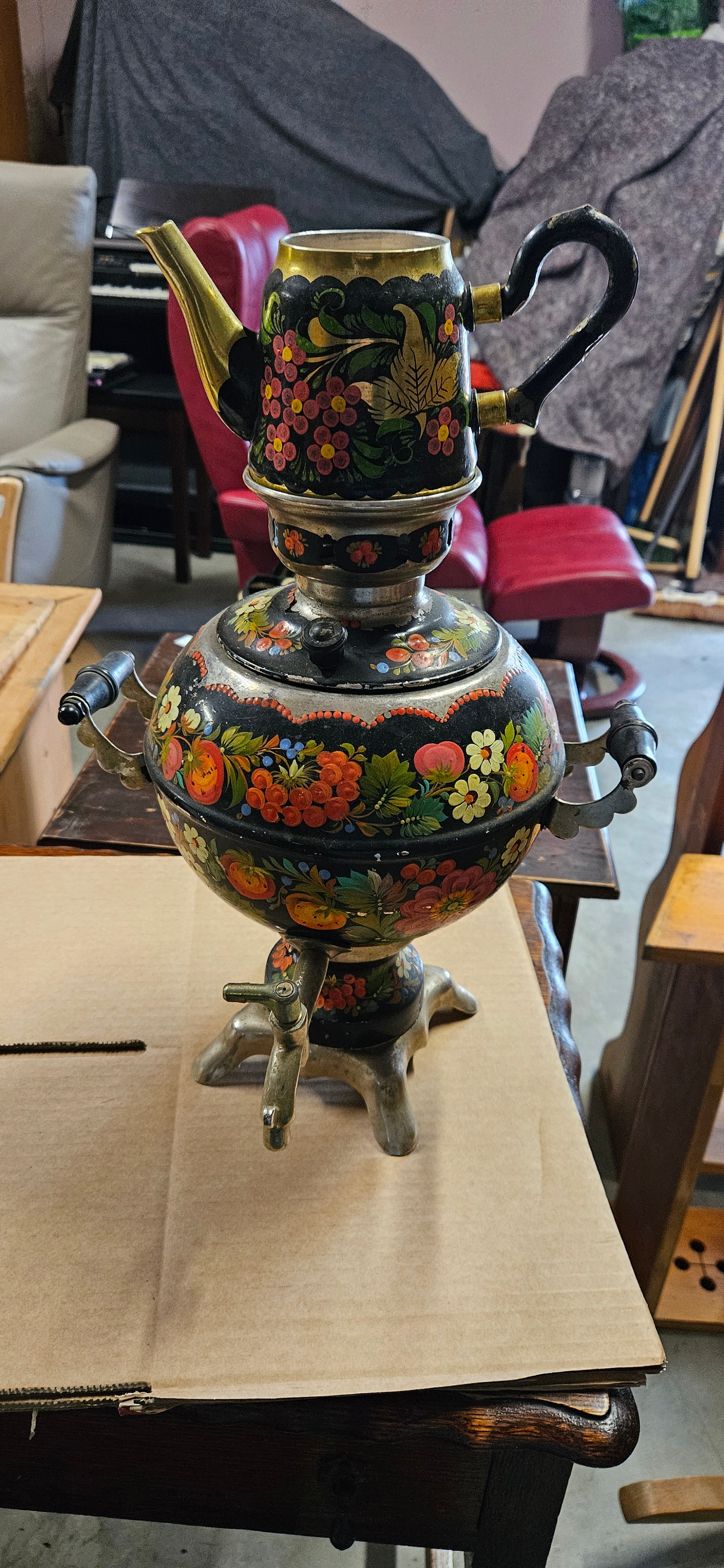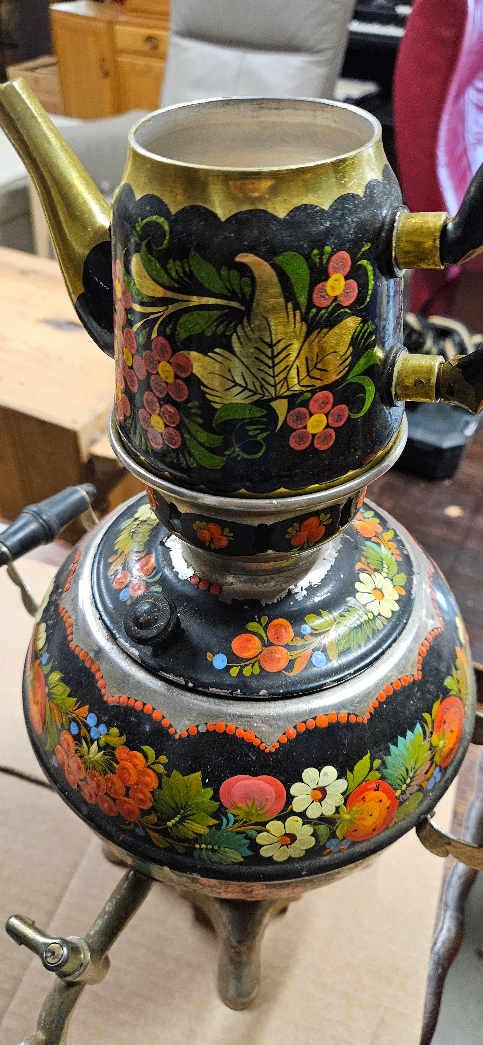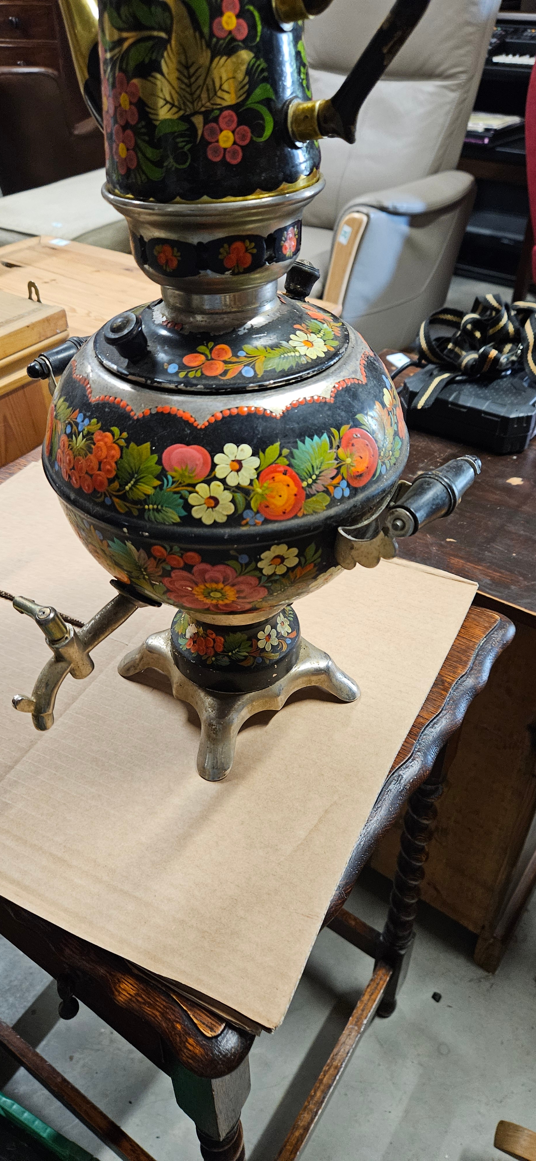 Russian samovar decorated with flowers