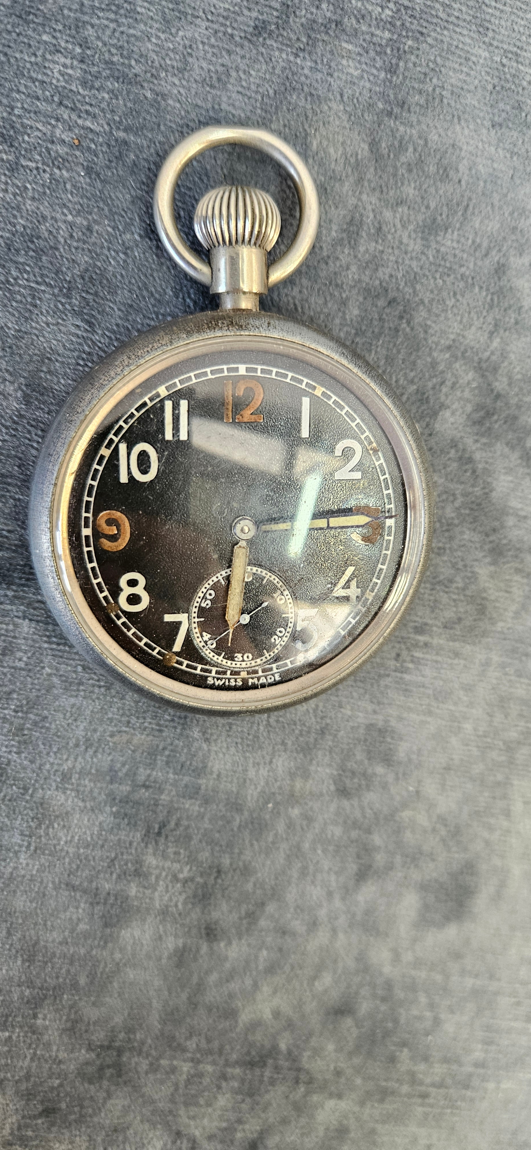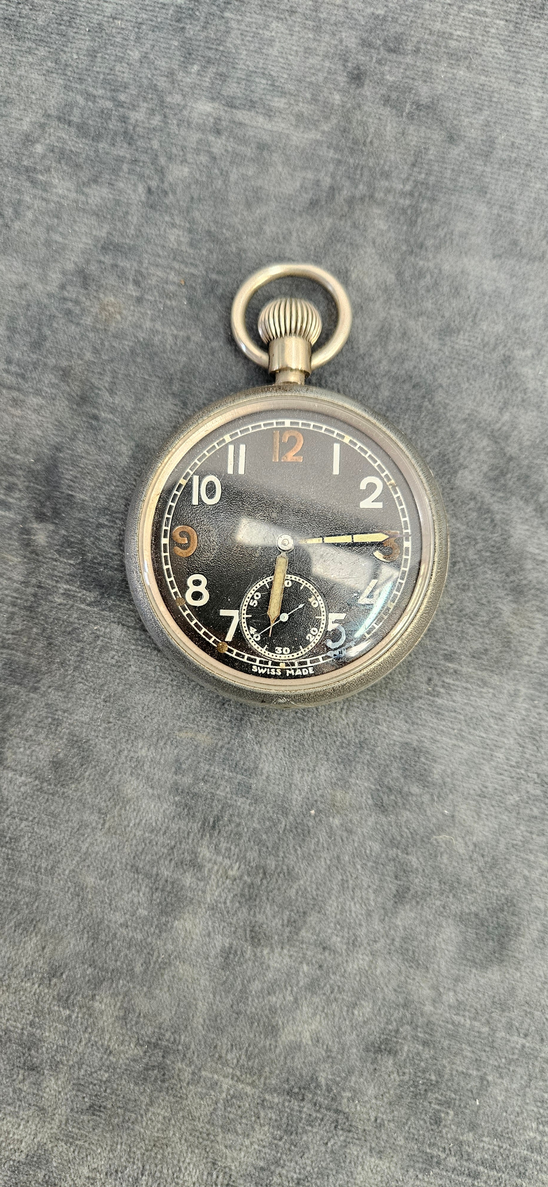 WWII British General Service Time Piece G.S.T.P military pocket watch with black dial