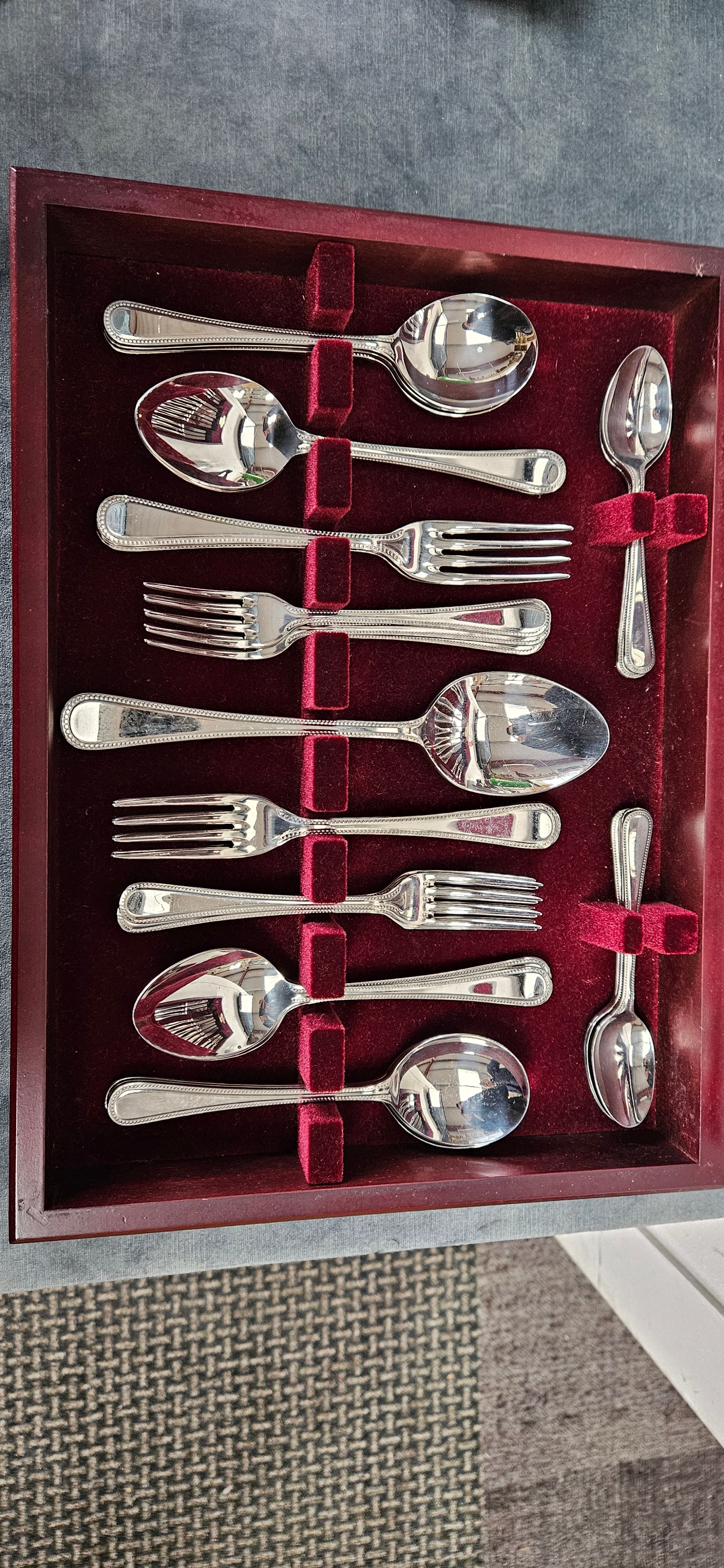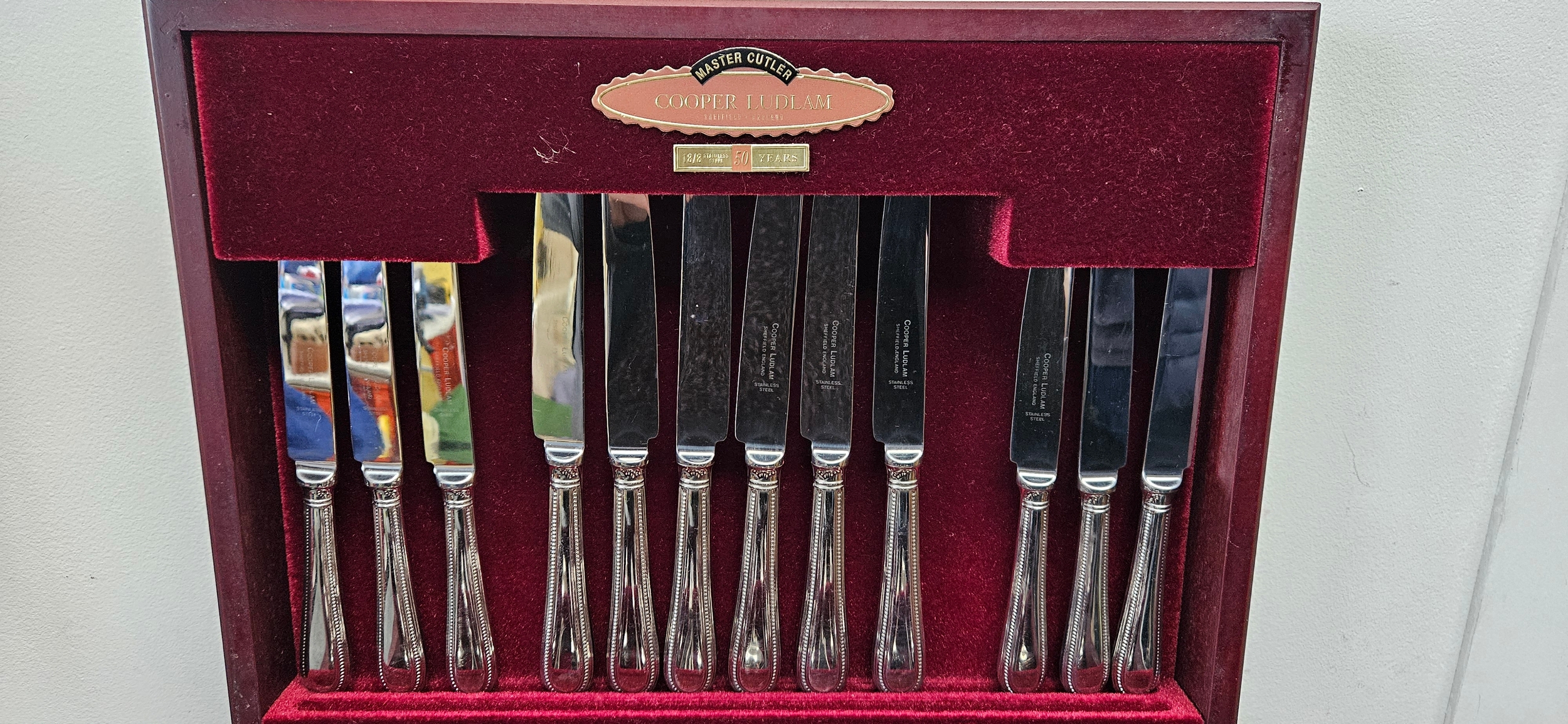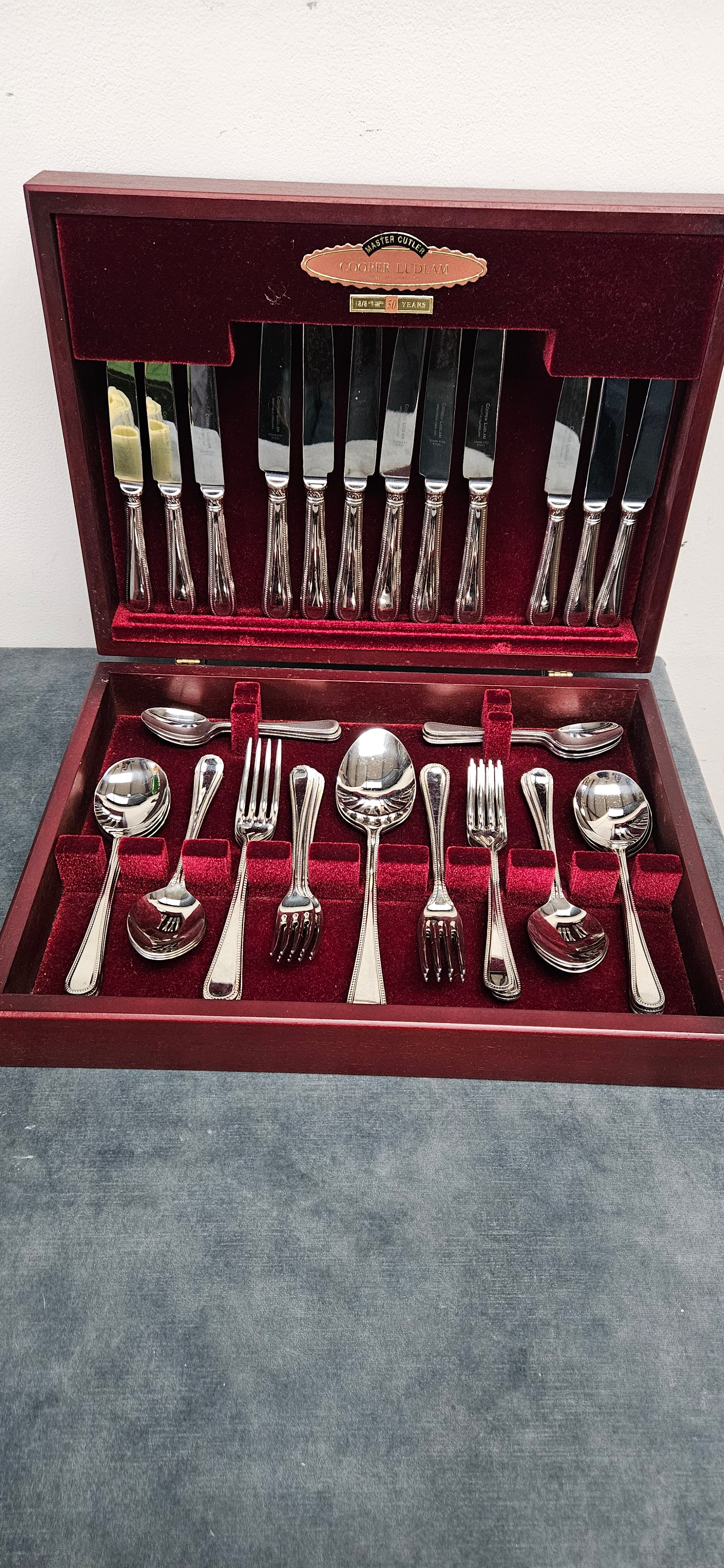 6 Piece cutlery set in wooden box made by Cooper Ludlam