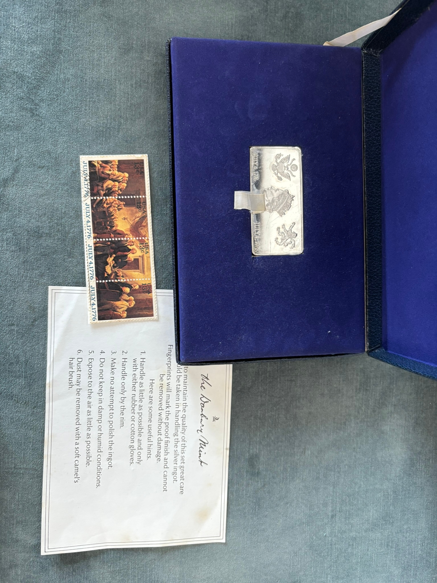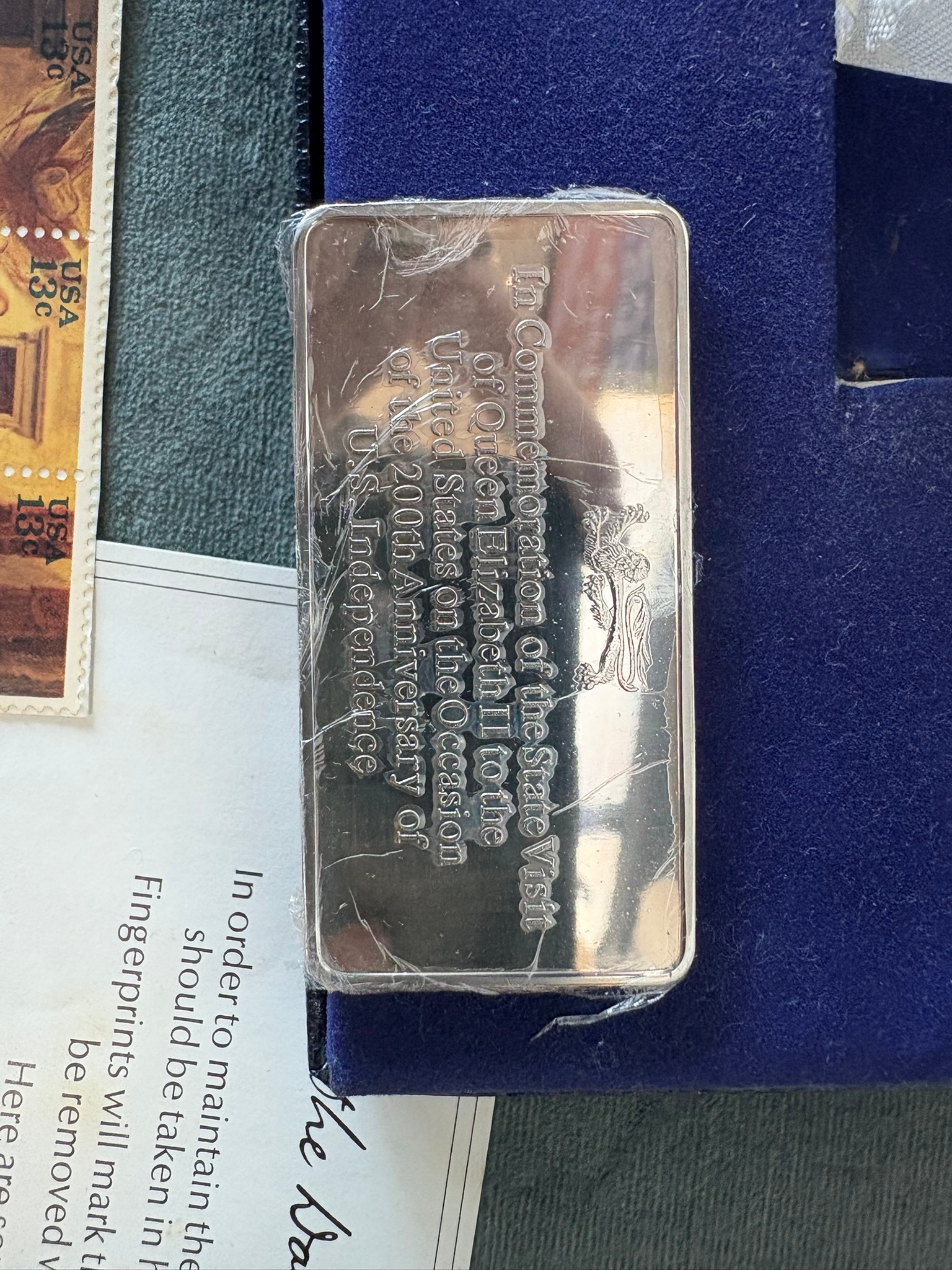 Silver ingot Danbury Mint – Commemorated Queen Elizabeth visit to United States on 200th Anniversary of U.S Independence