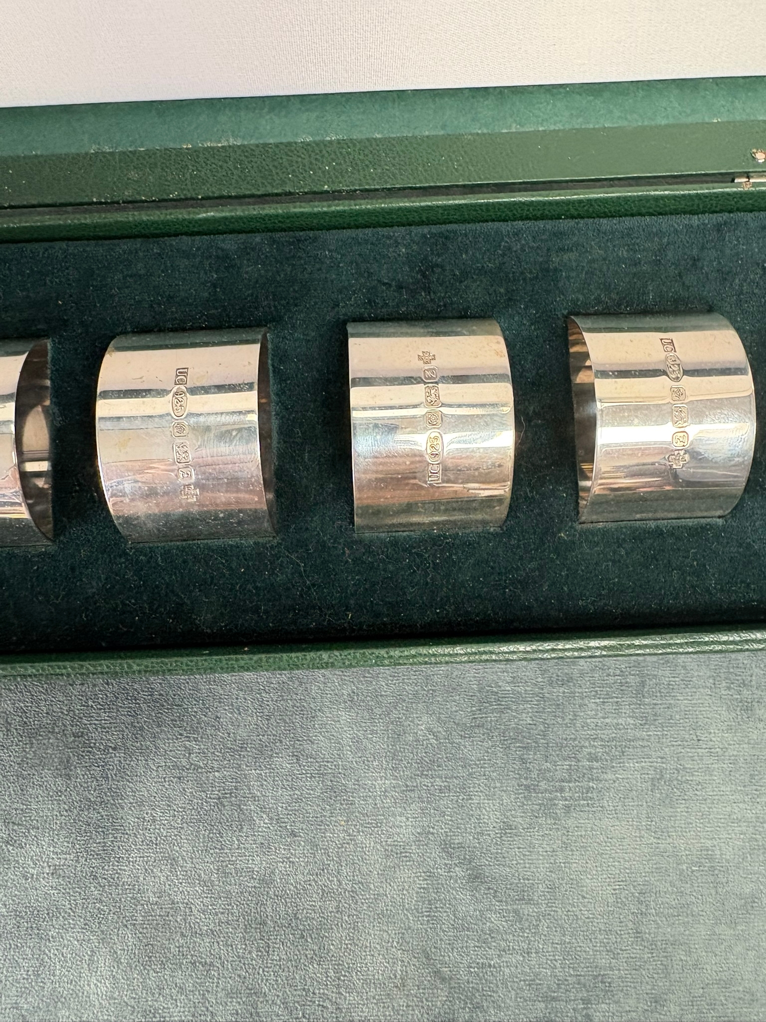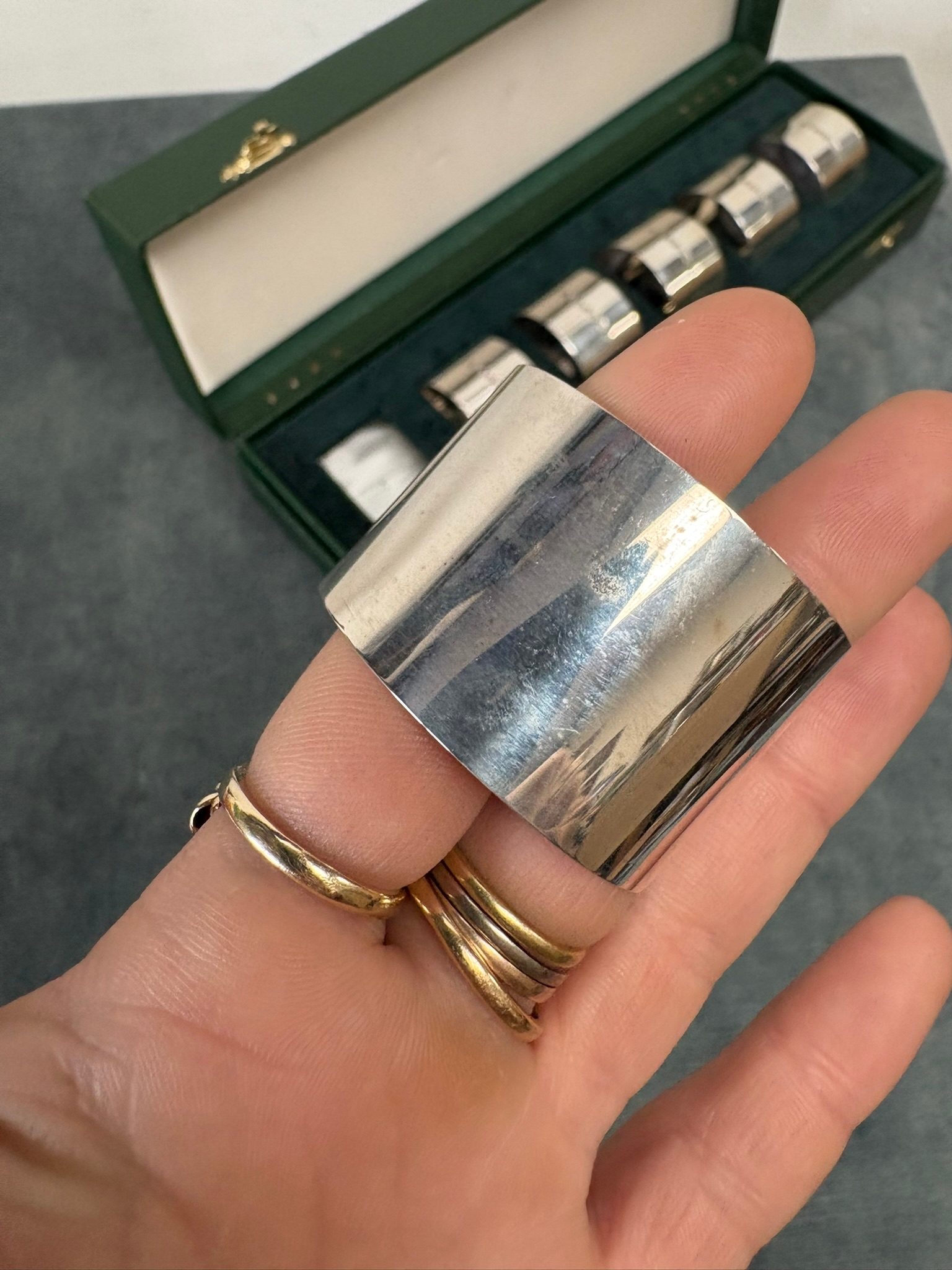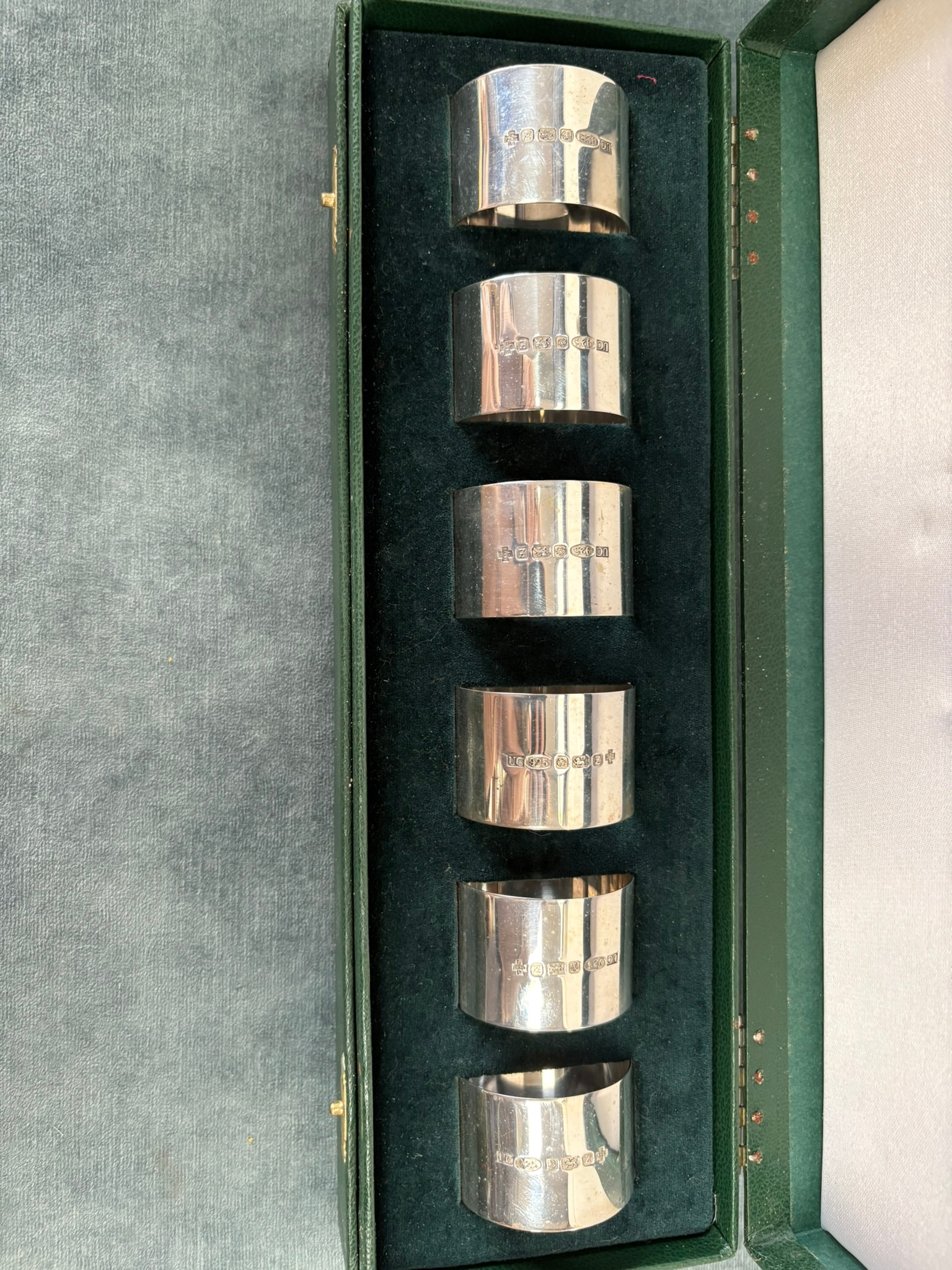 Boxed set of six silver hallmarked napkin rings approx. 170g