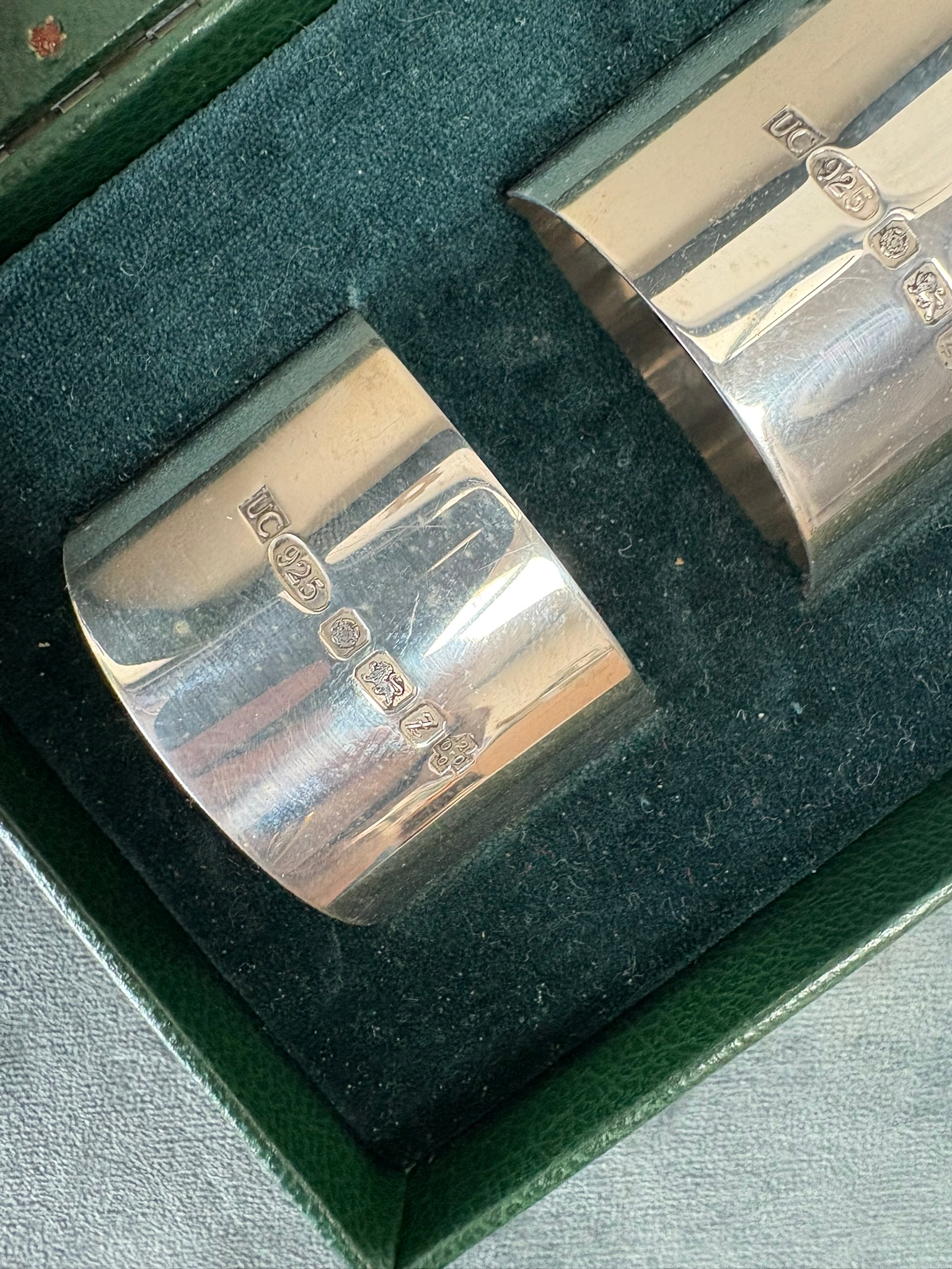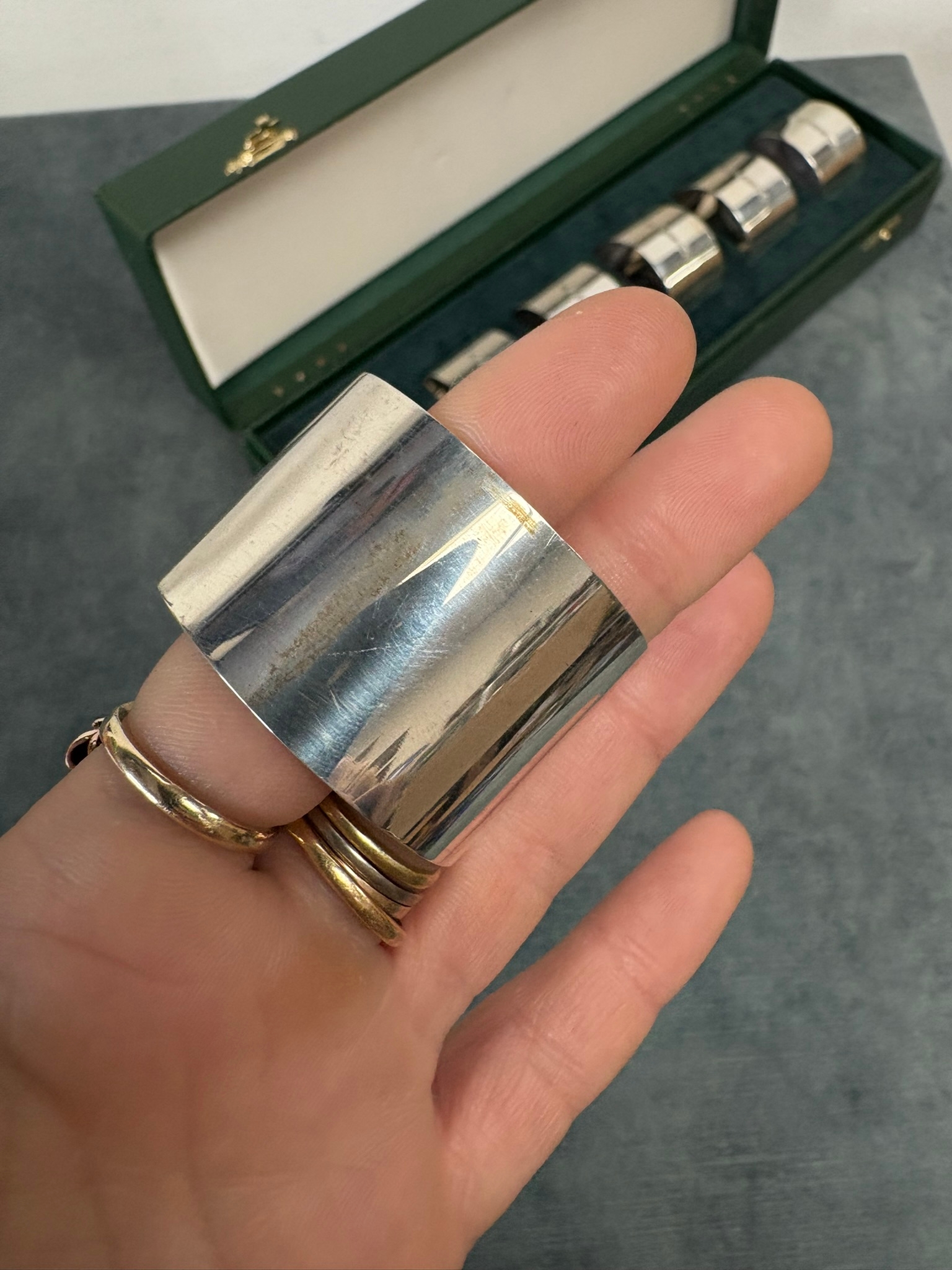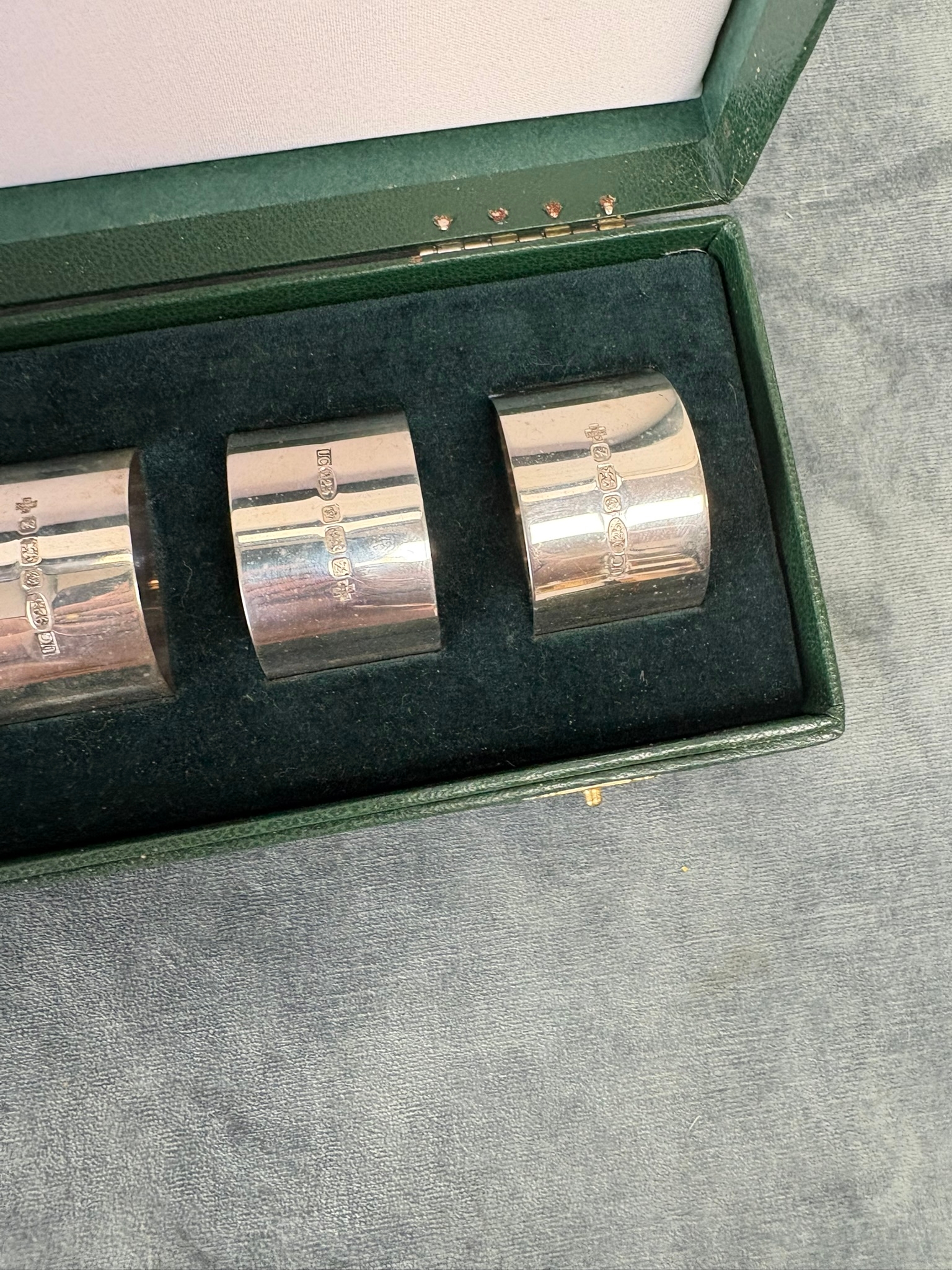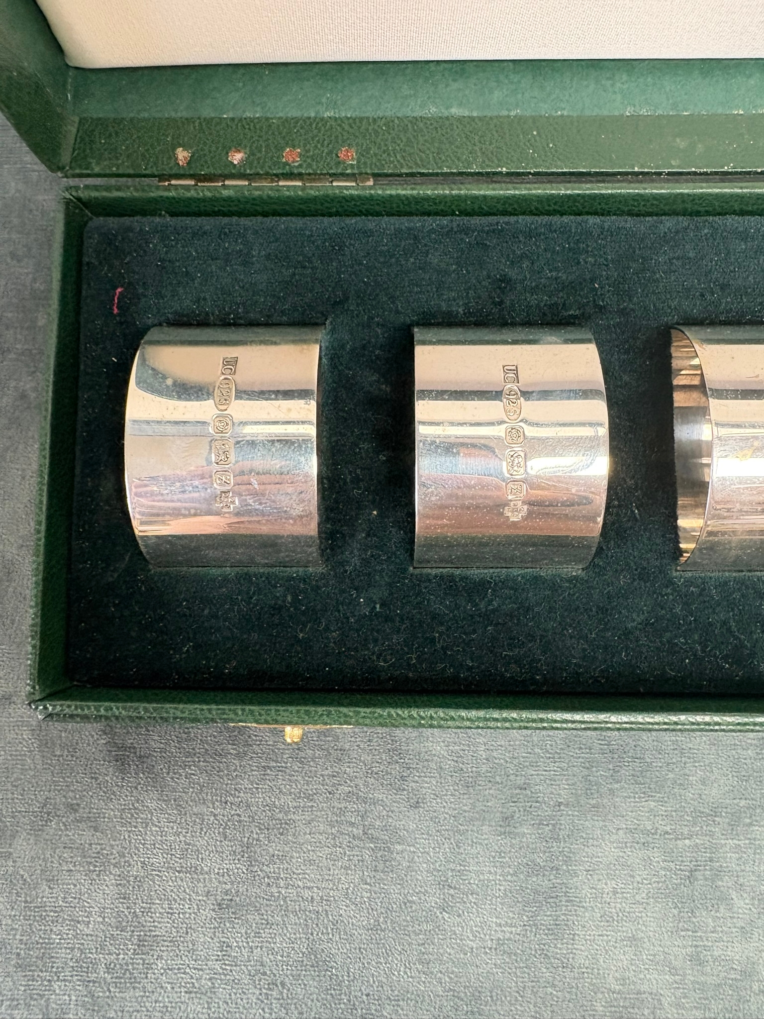Boxed set of six silver hallmarked napkin rings approx. 170g