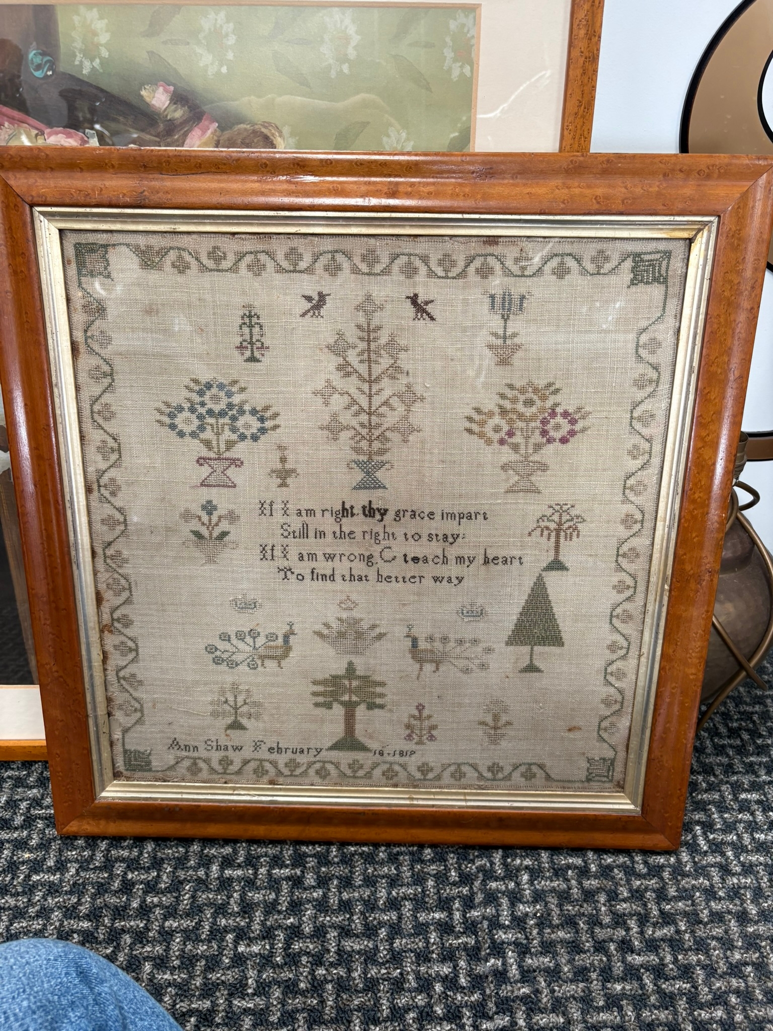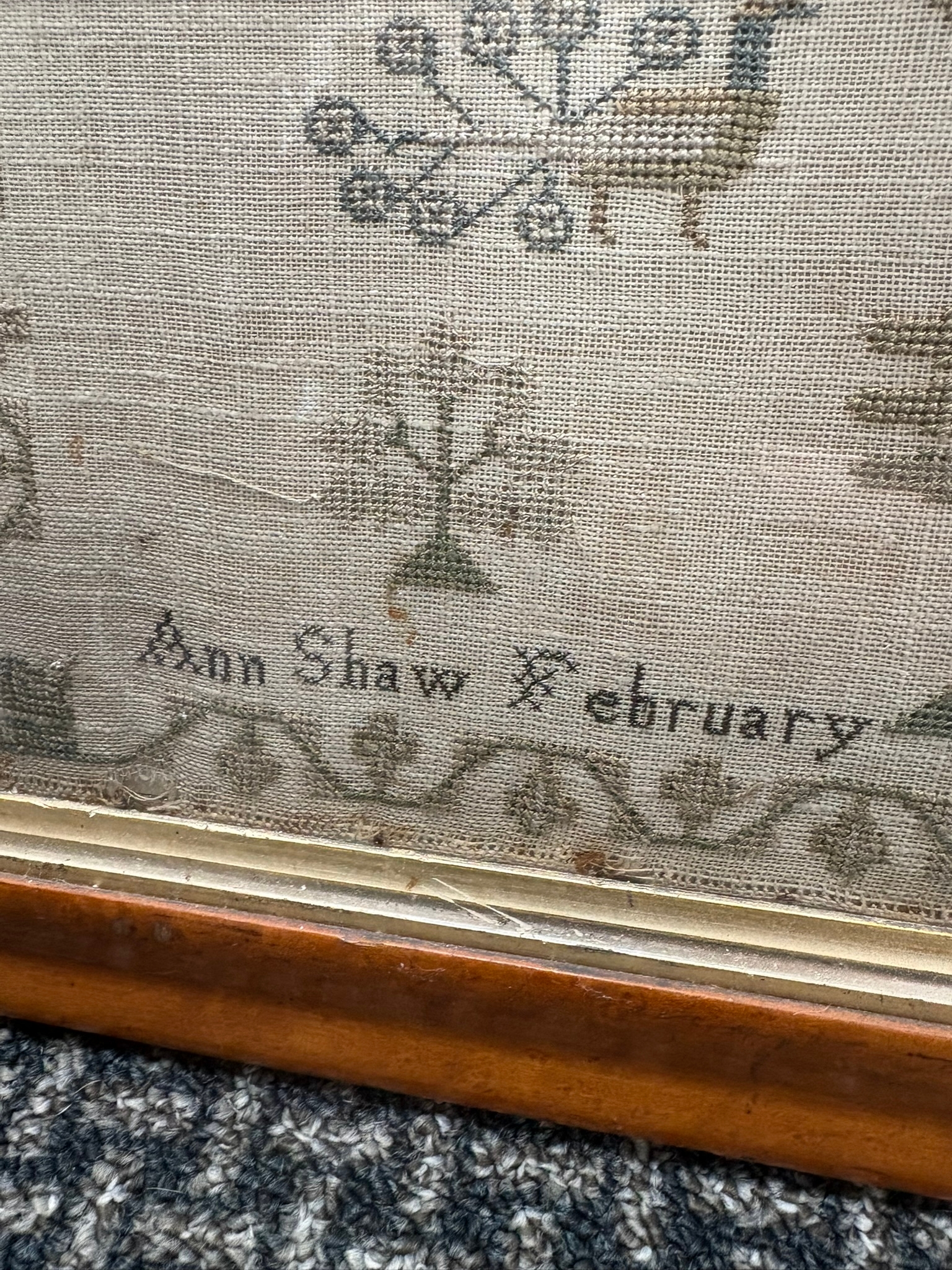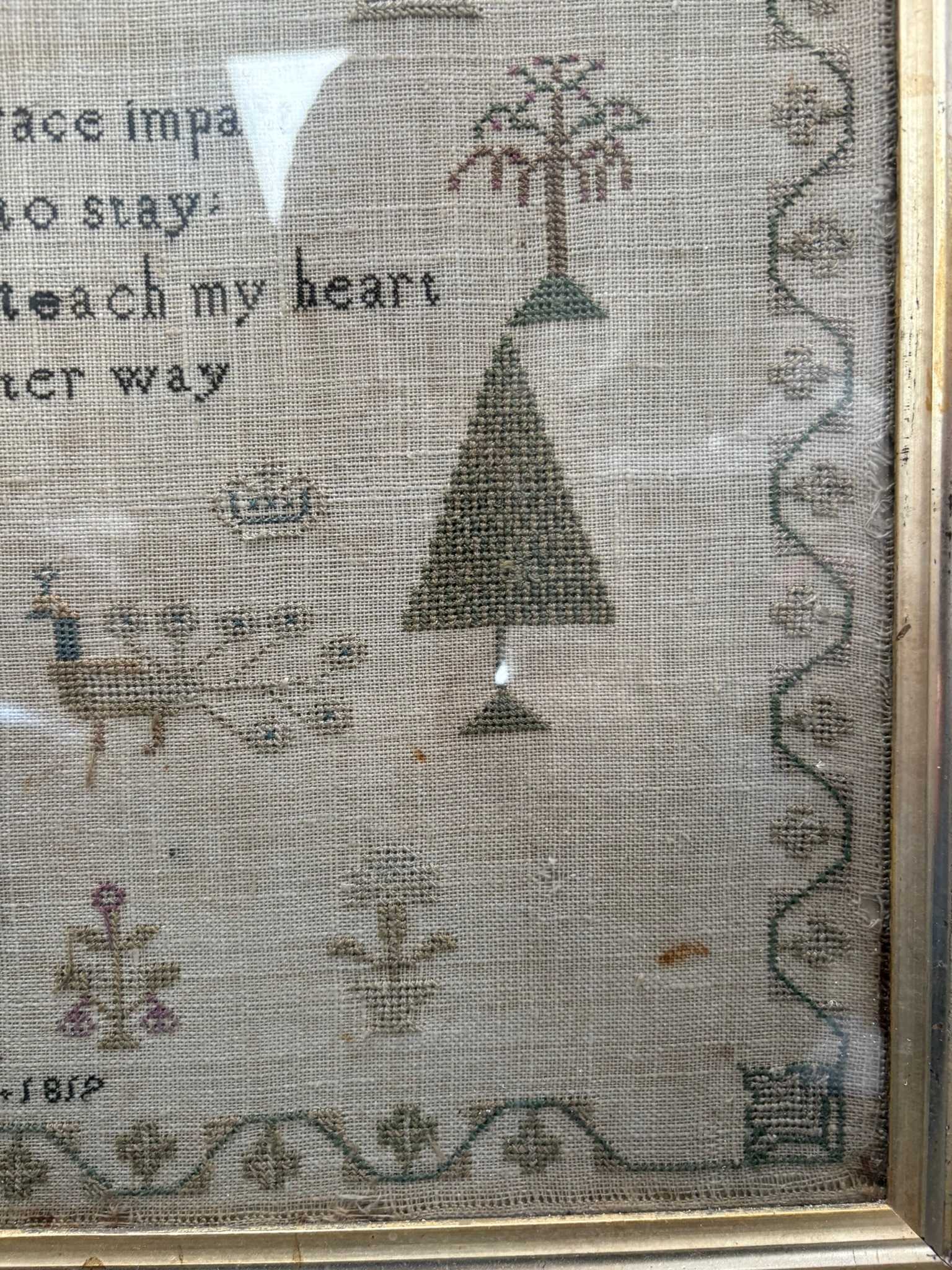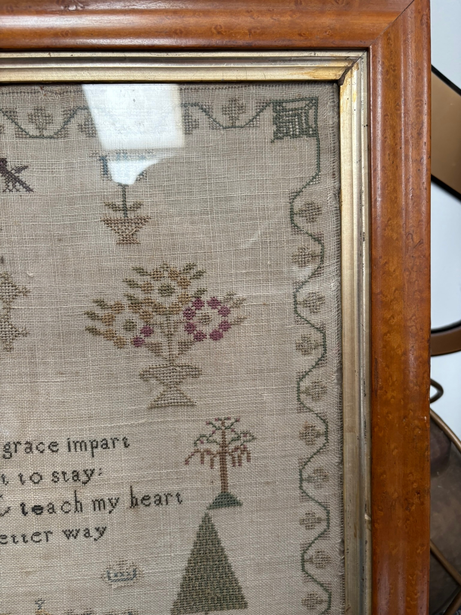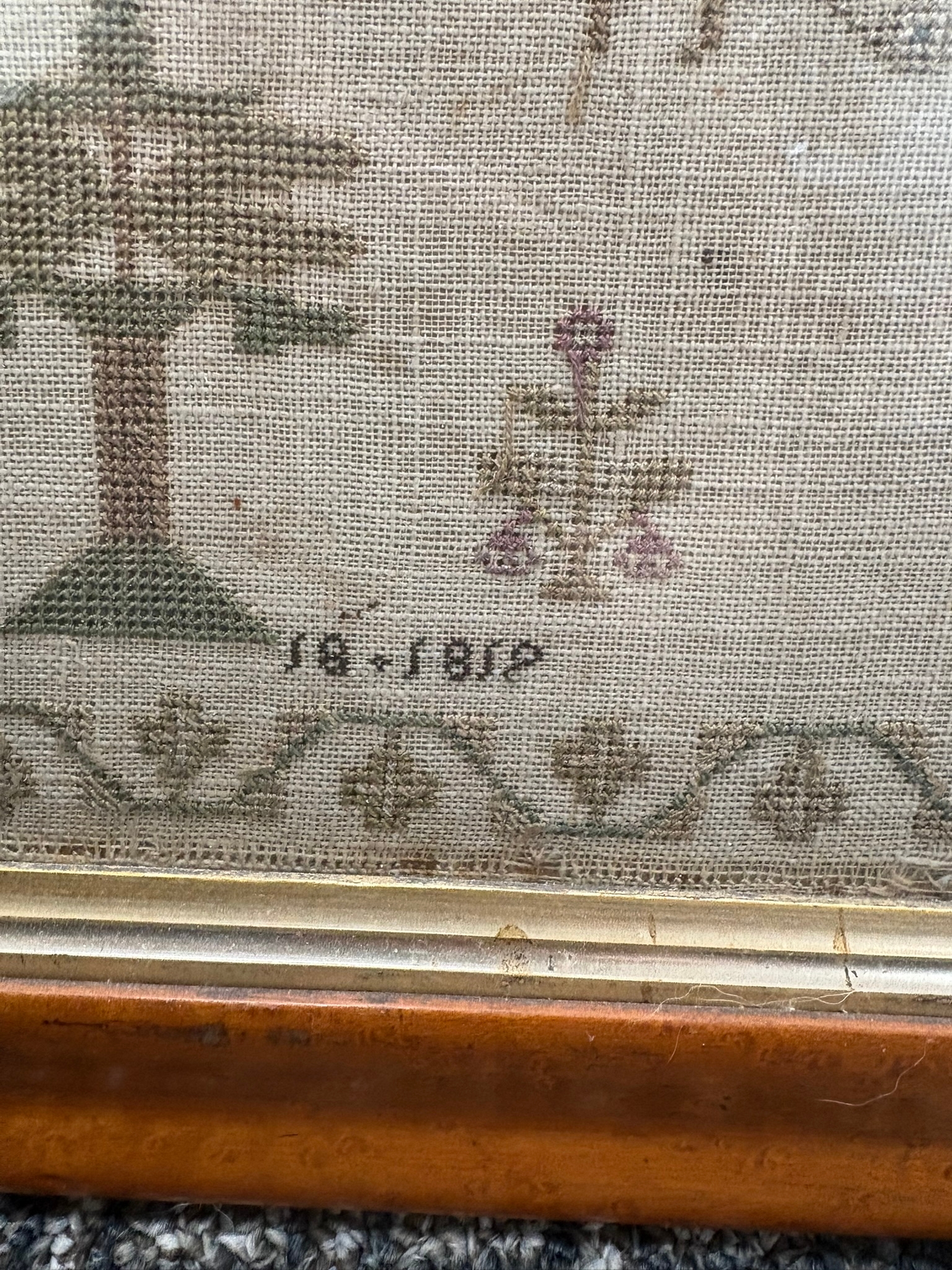 Antique sampler dated – possibly 1812? in walnut veneer frame
