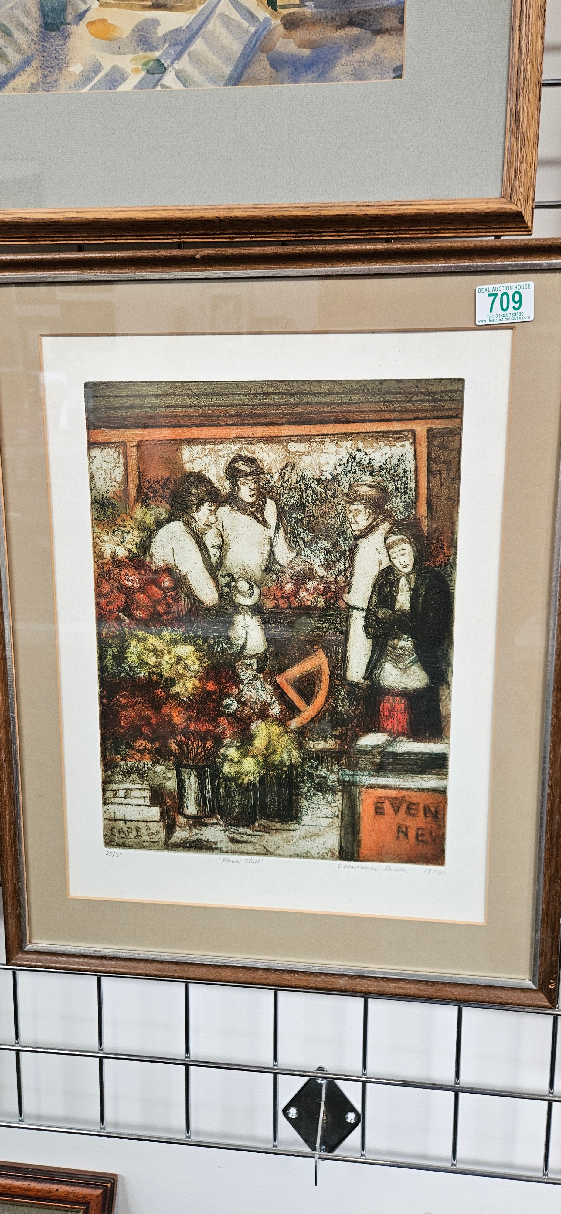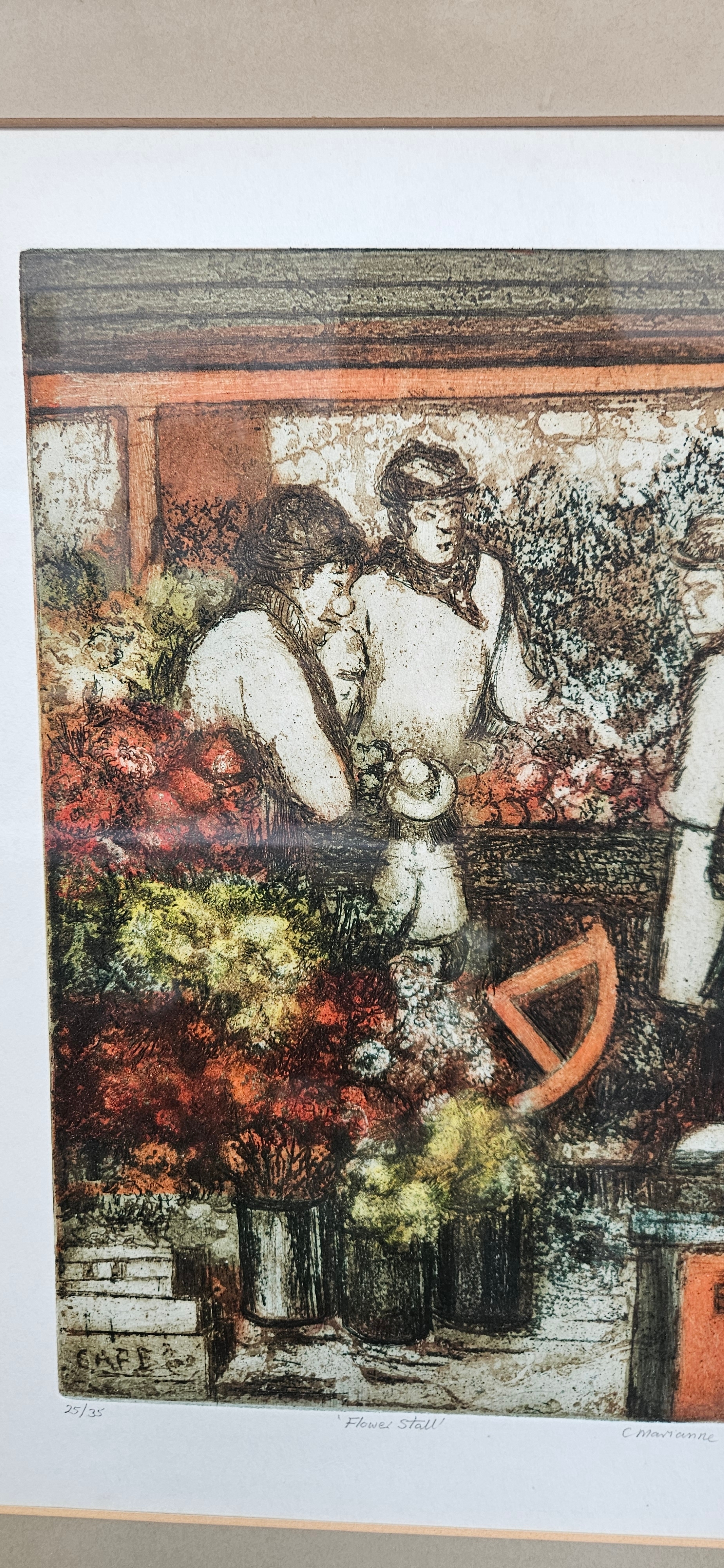Limited edition lithograph titled ‘Flower Stall’ signed Marianne