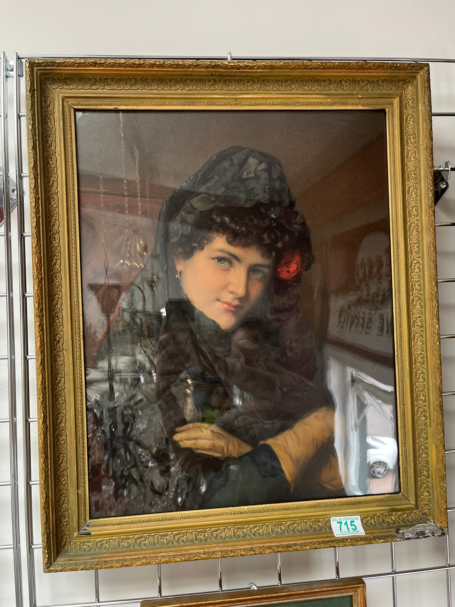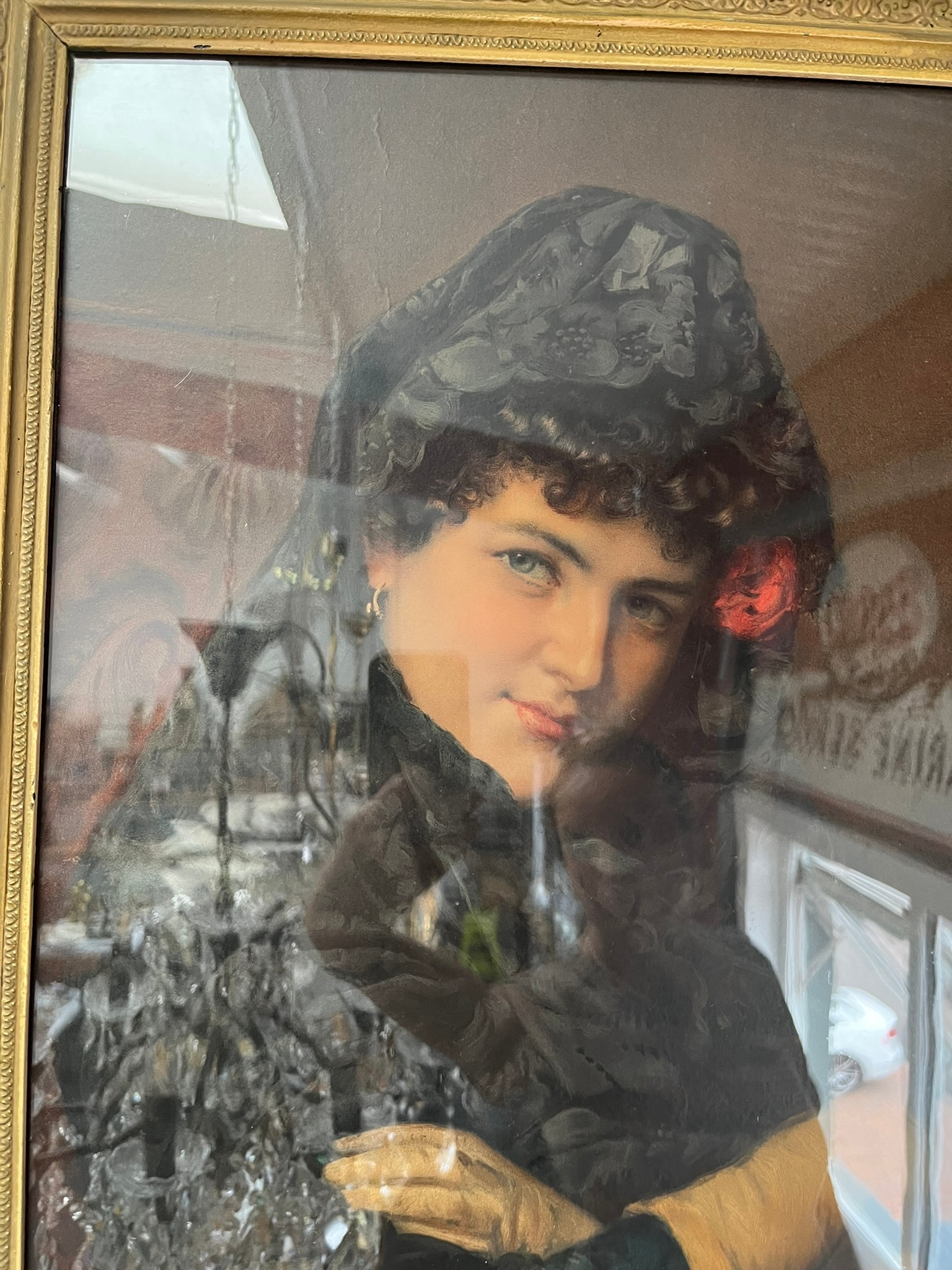 Antique print of a lady in gold gilt frame