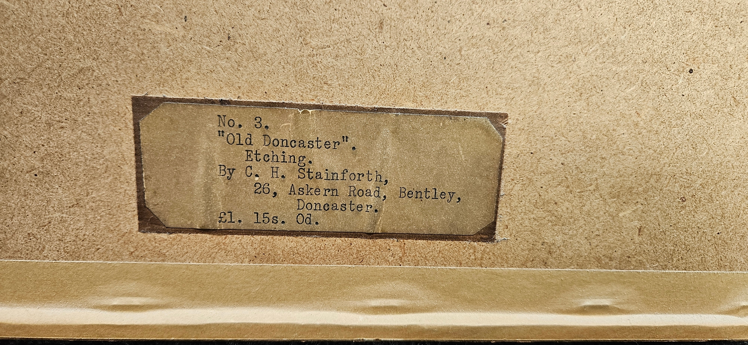 Etching titled ‘Old Doncaster’ signed – C H Stainforth