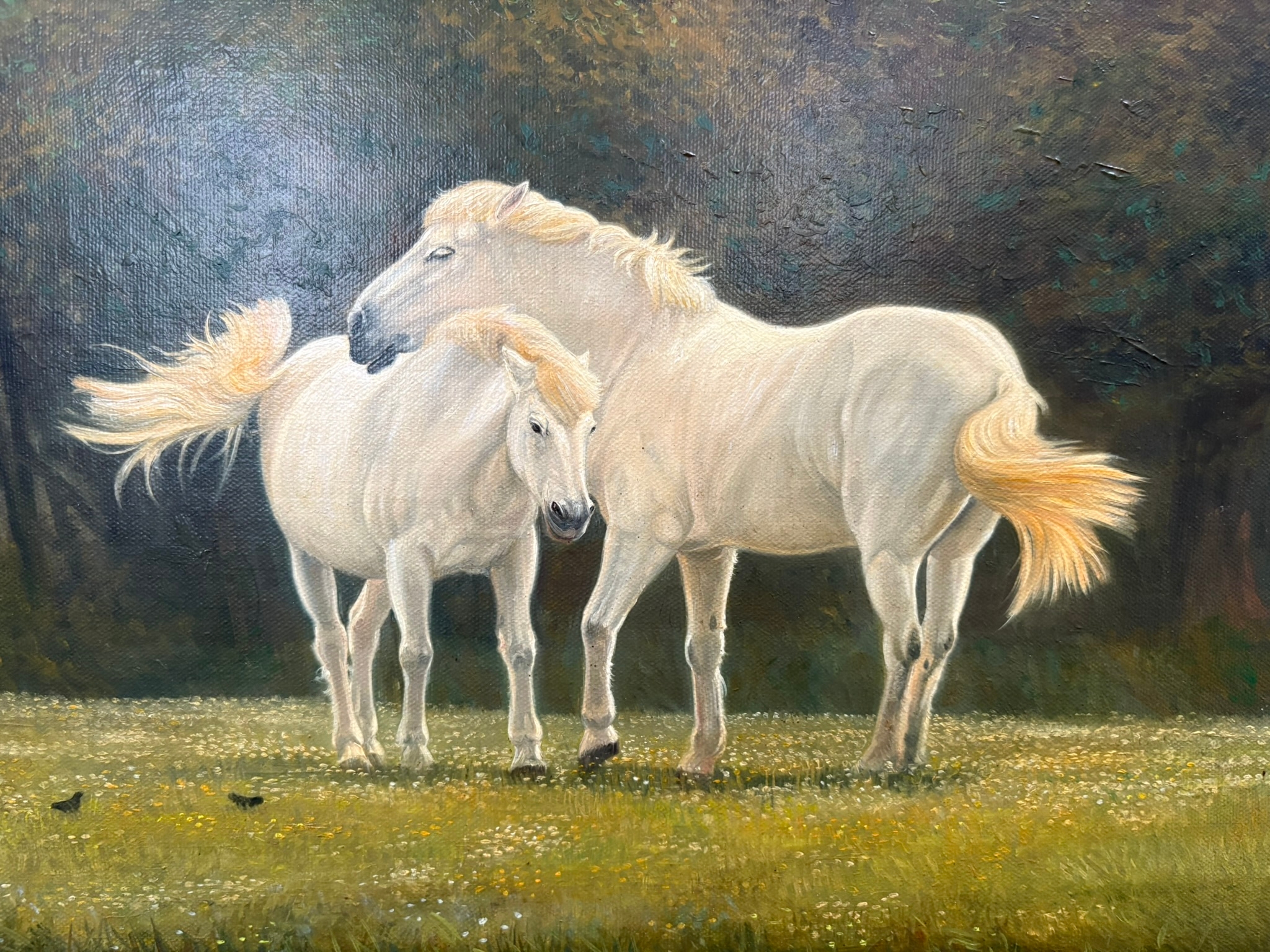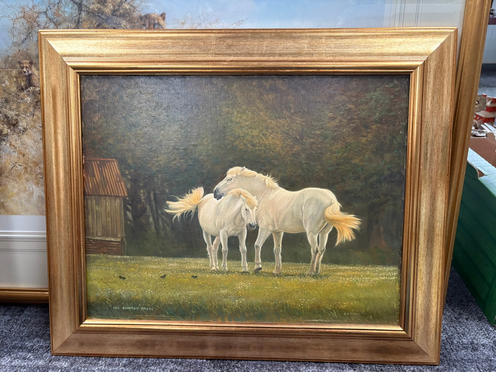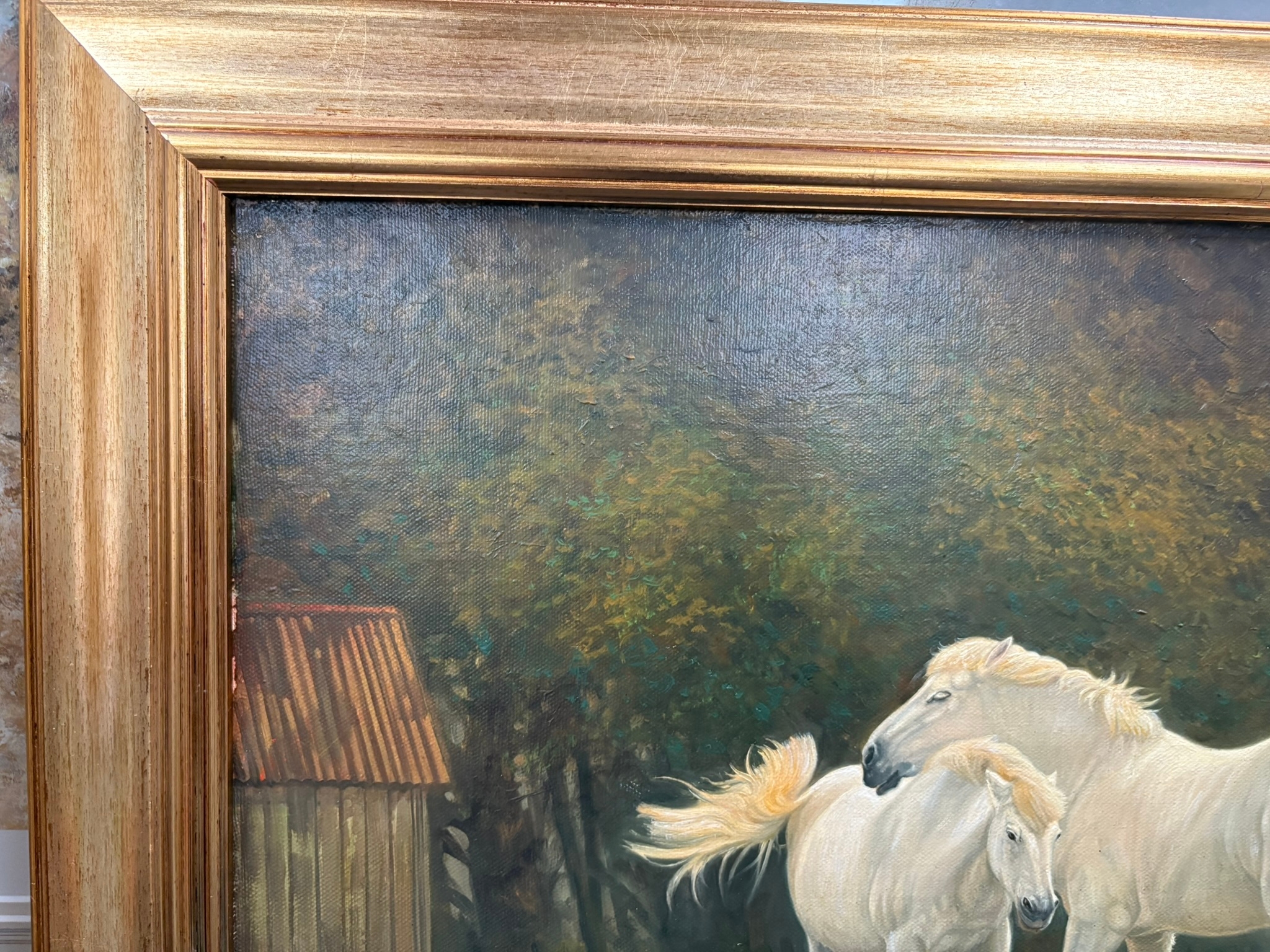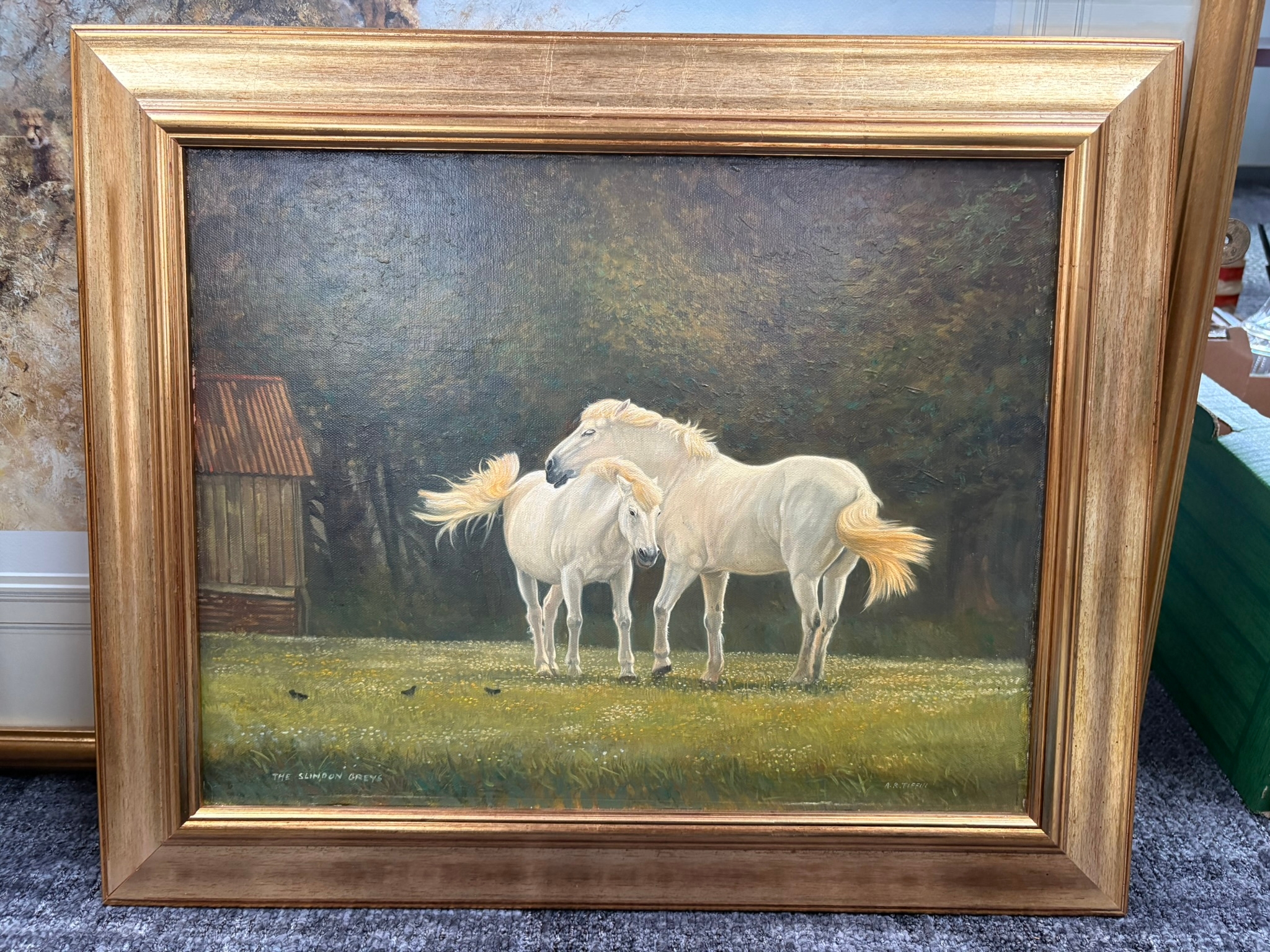 Oil painting of horses in gold frame signed – Anthony Richard Tiffin