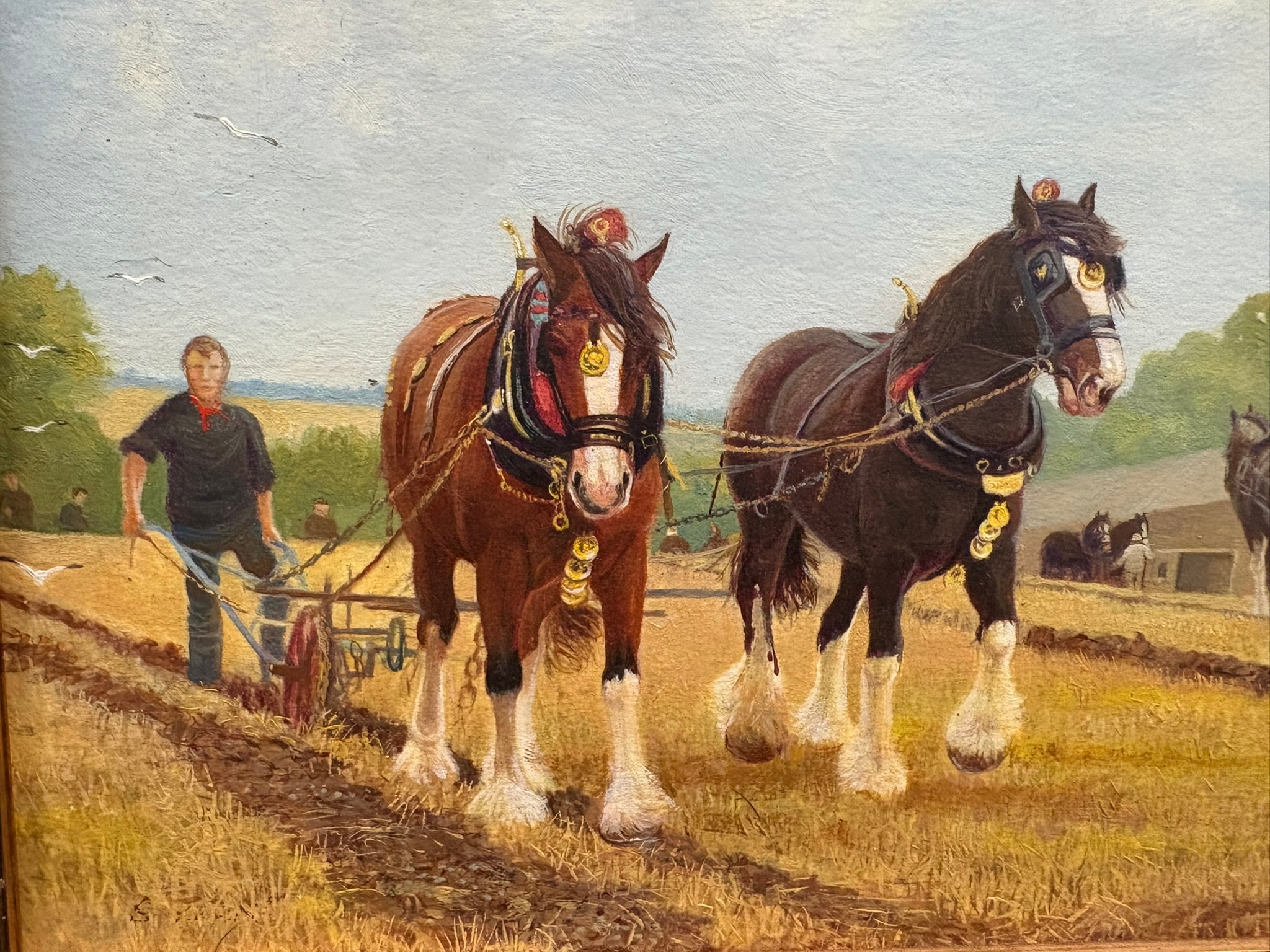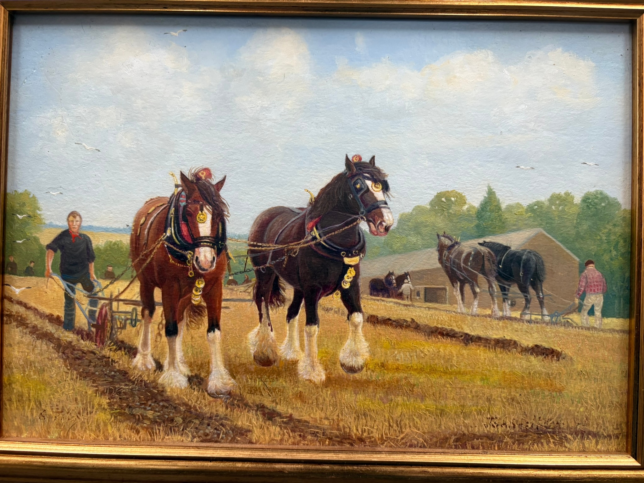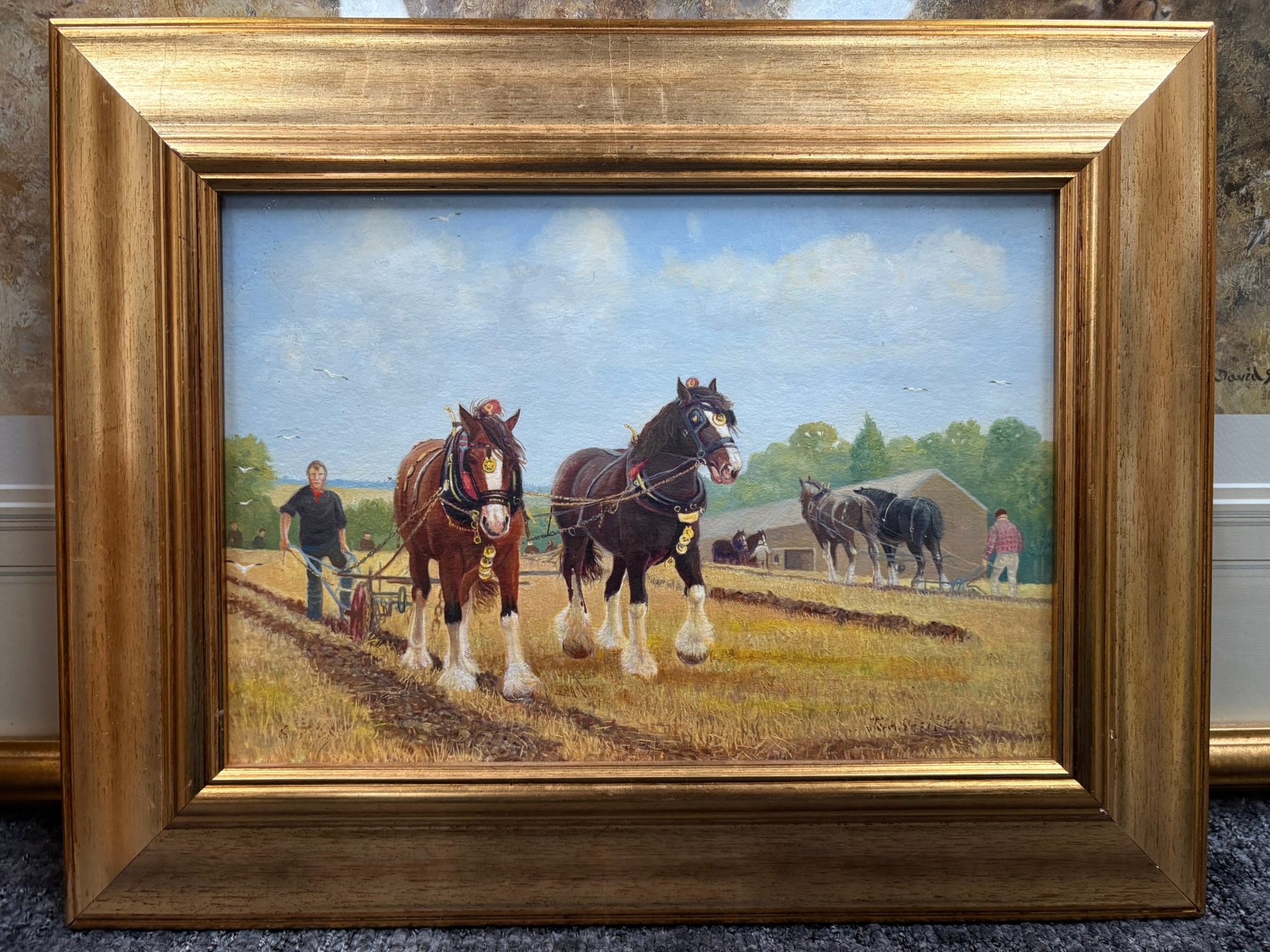 Oil painting of horses in gold frame signed – Anthony Richard Tiffin