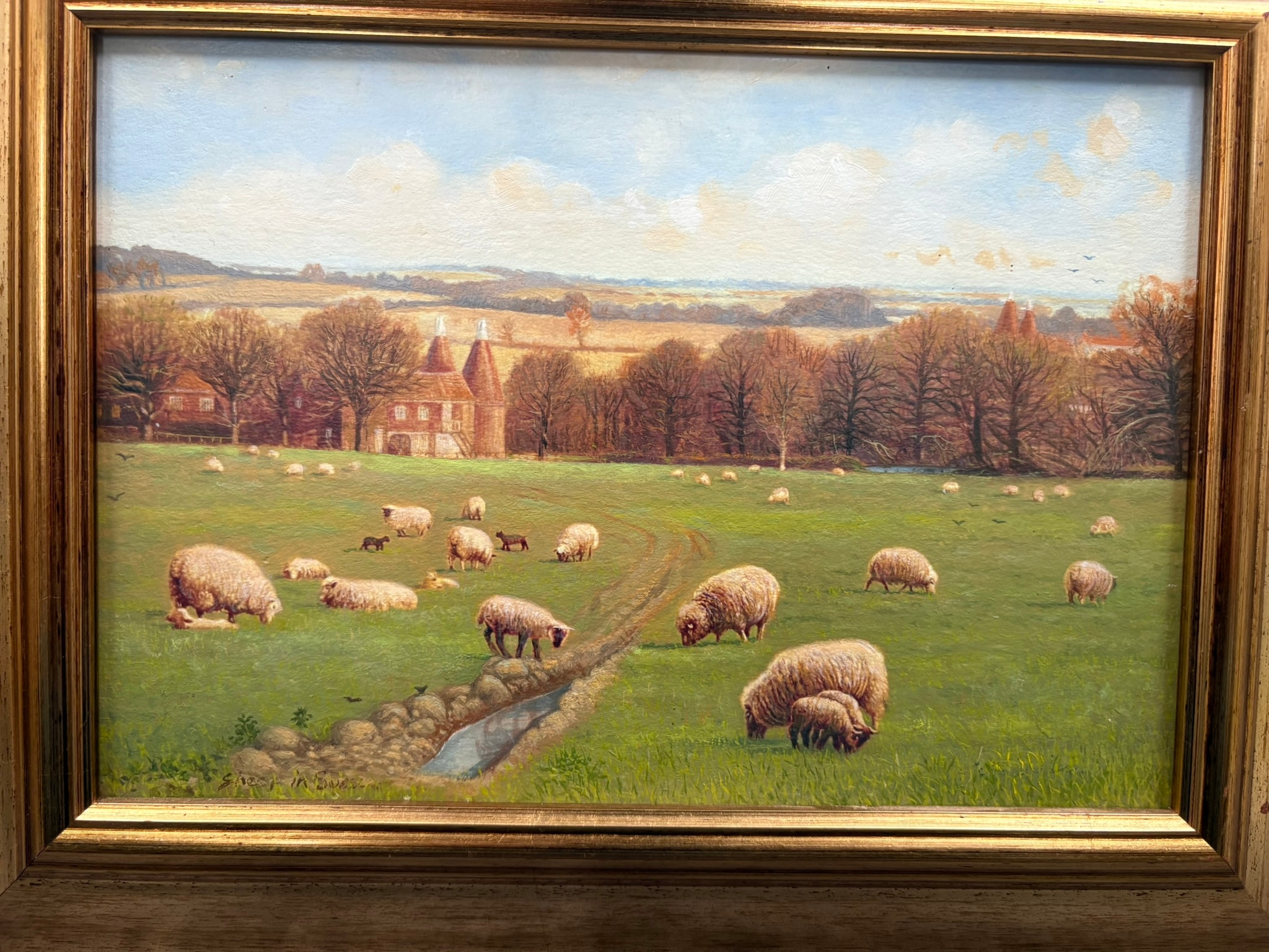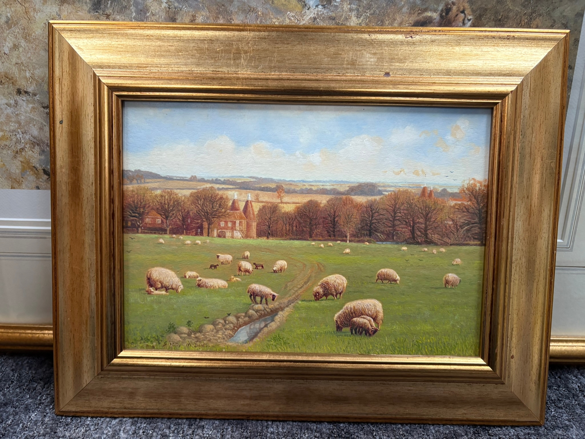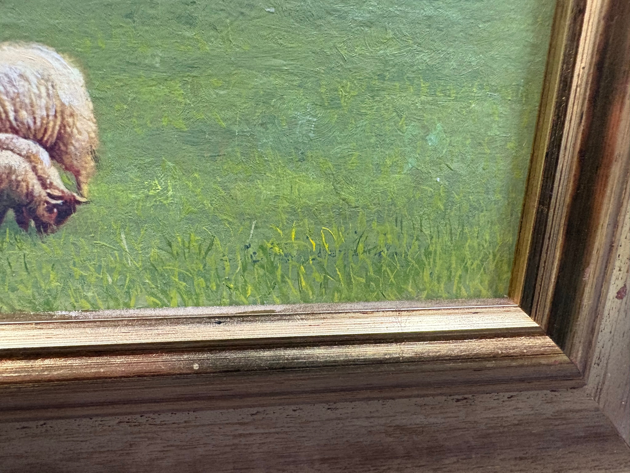 Oil painting of sheep in gold frame signed – Anthony Richard Tiffin