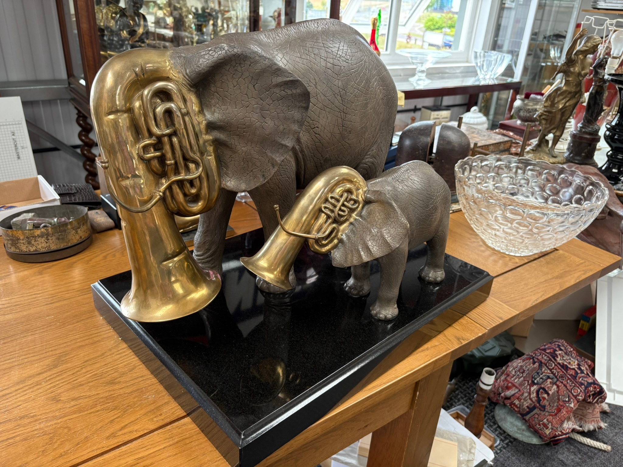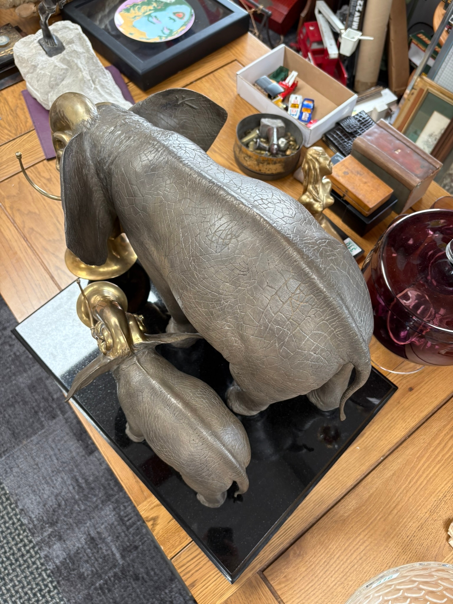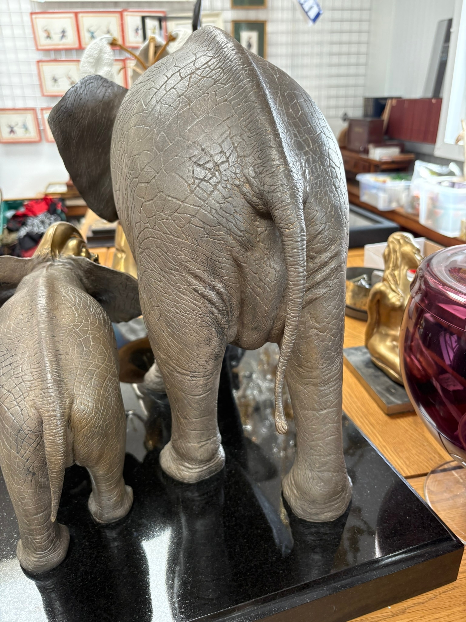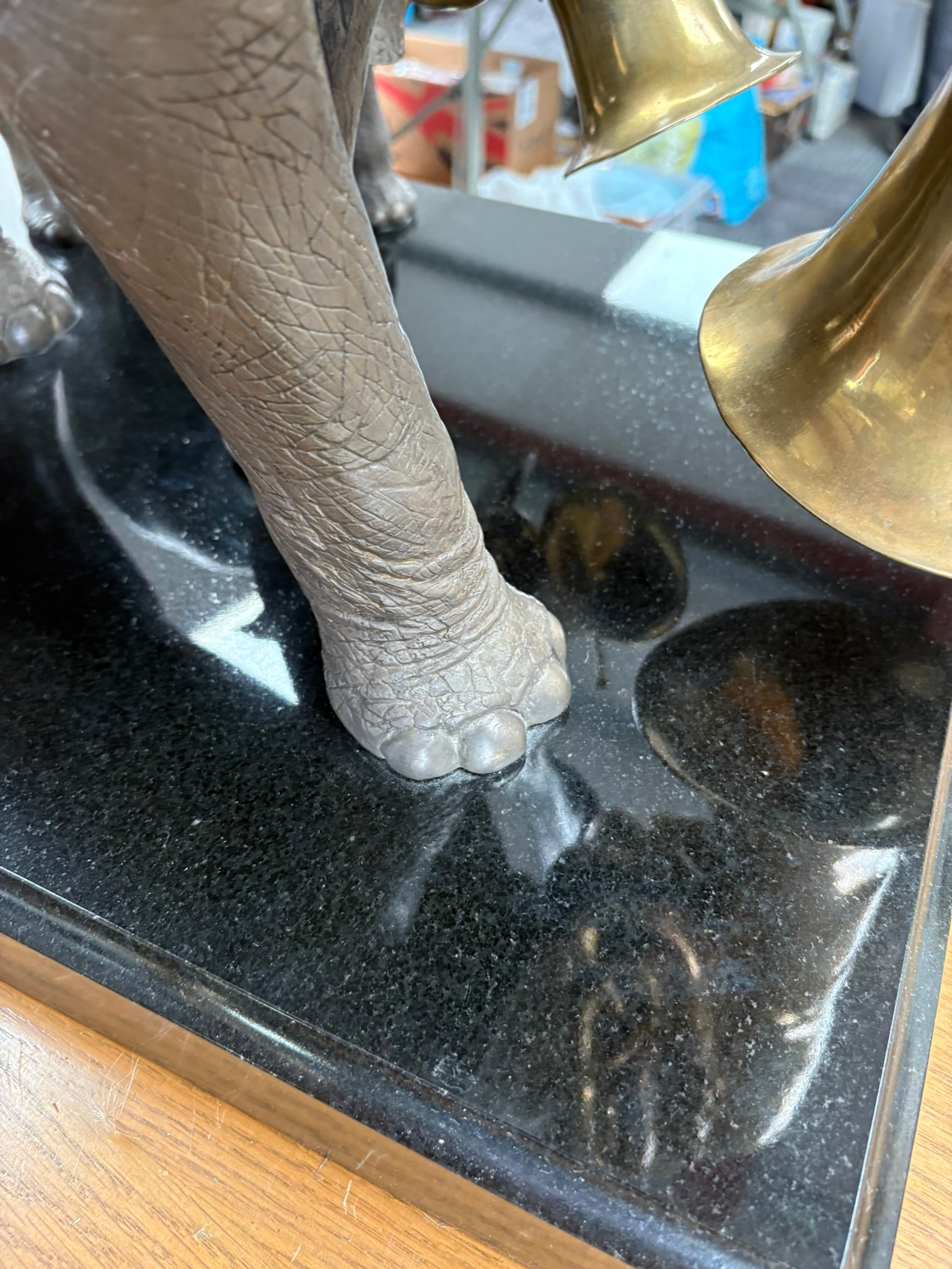 Very large and very heavy bronze sculpture of two trumpeting elephants