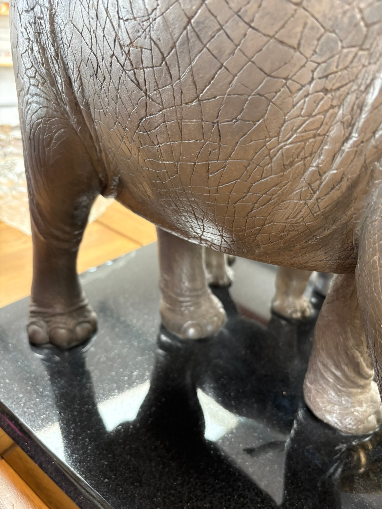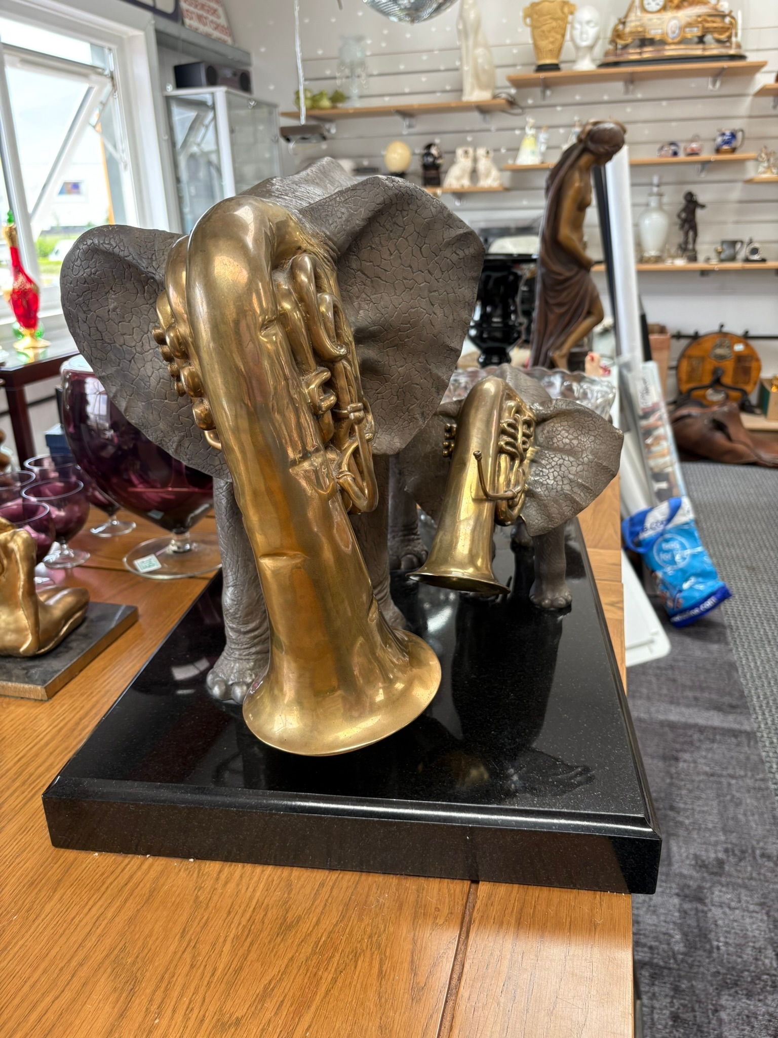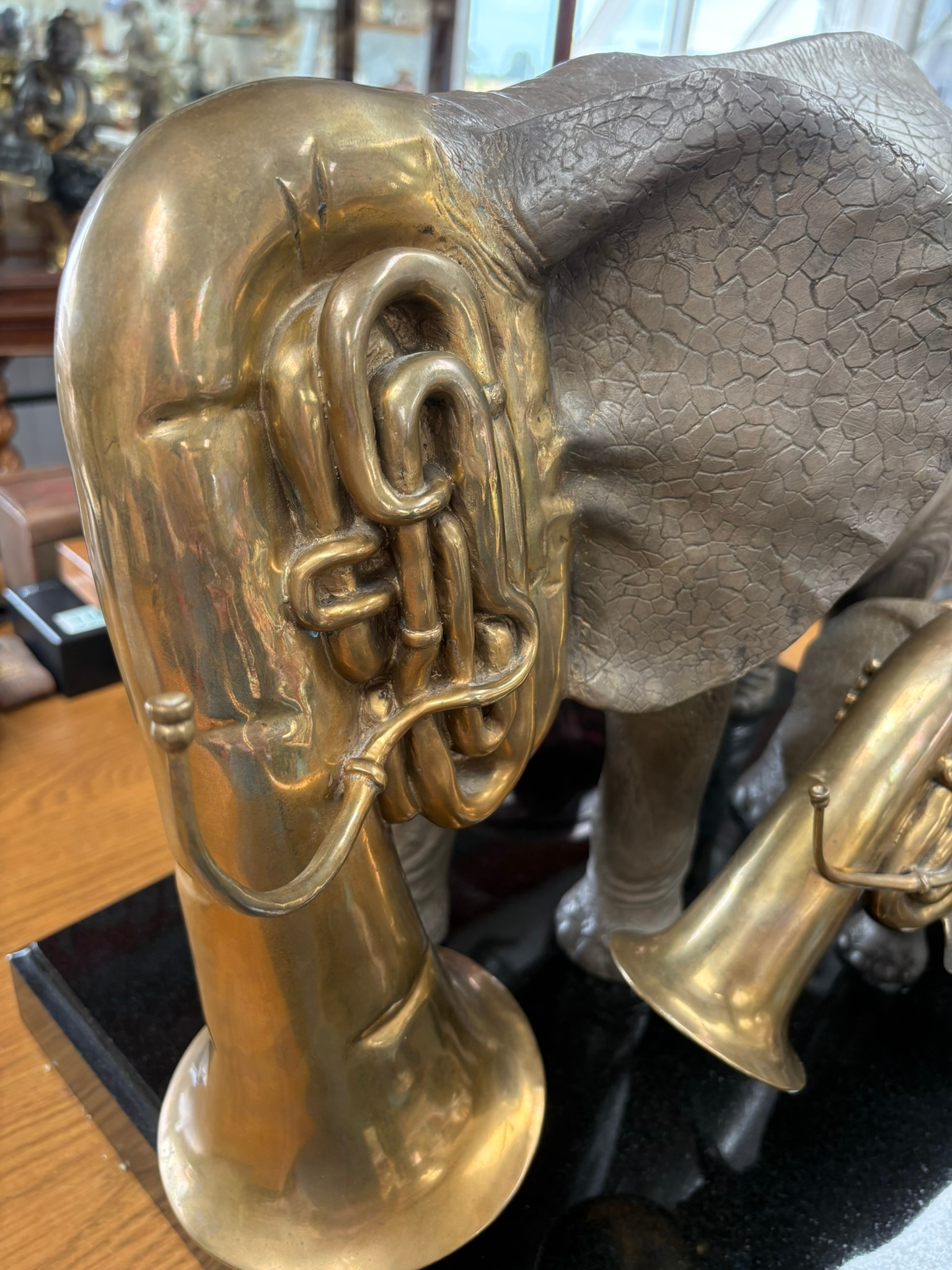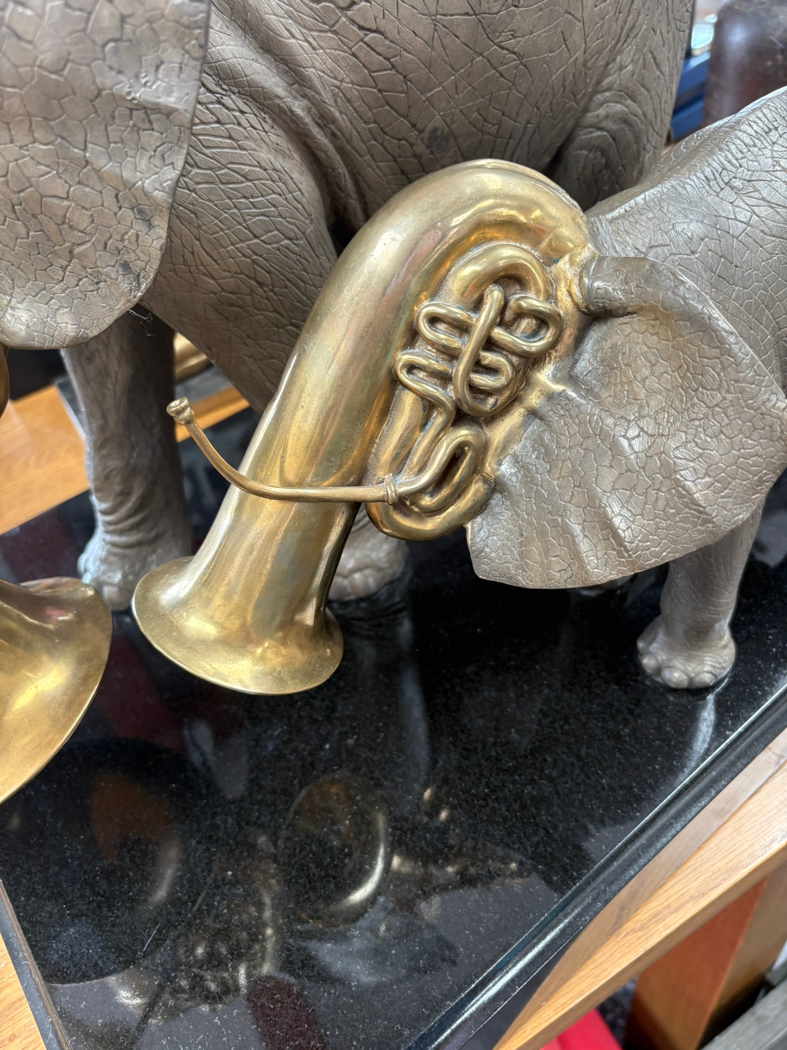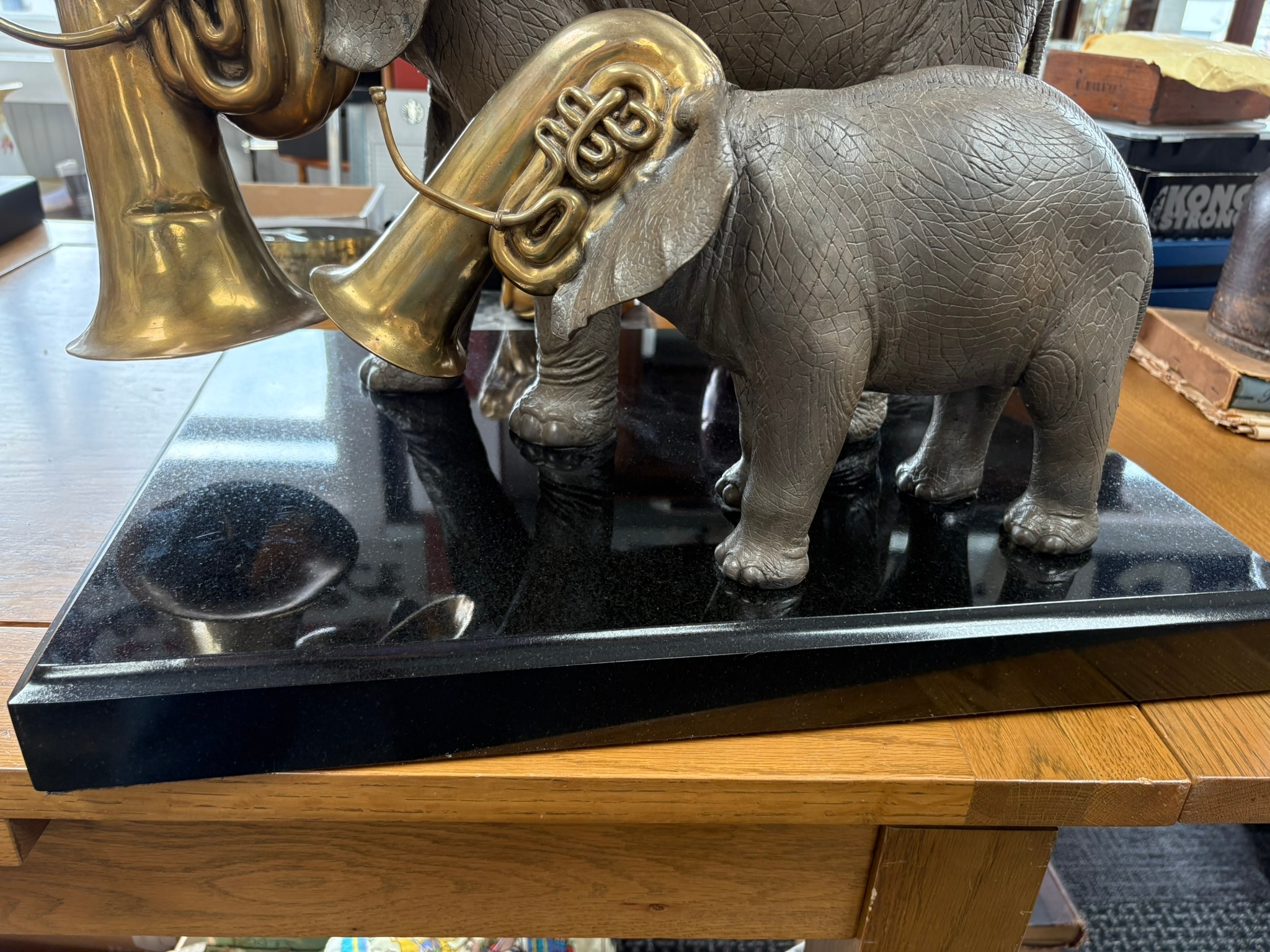 Very large and very heavy bronze sculpture of two trumpeting elephants