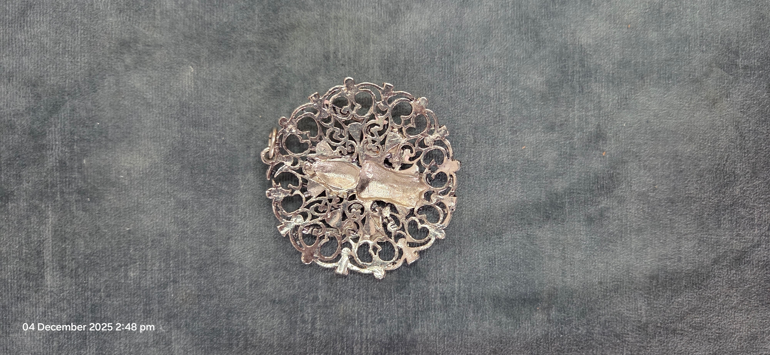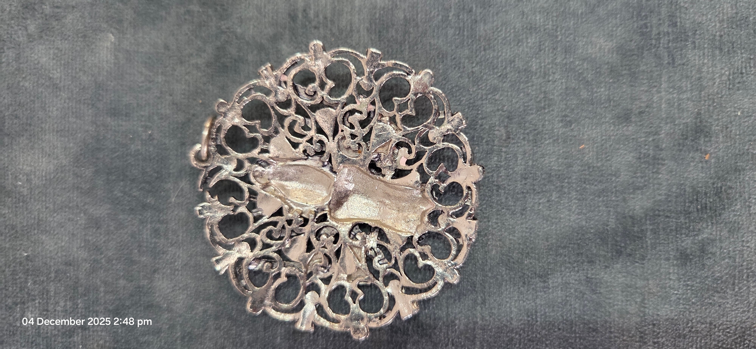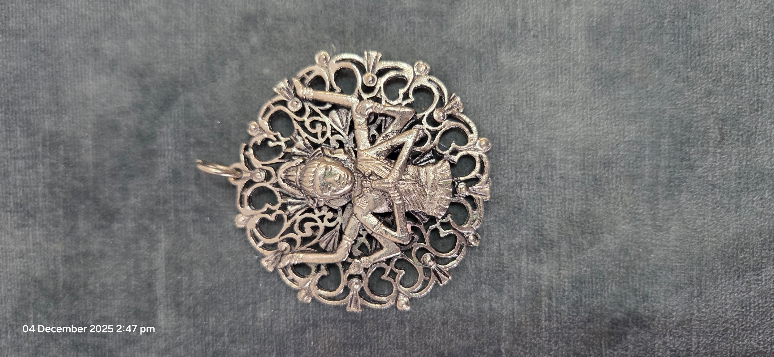 Large silver plate necklace pendant Indian Hindu