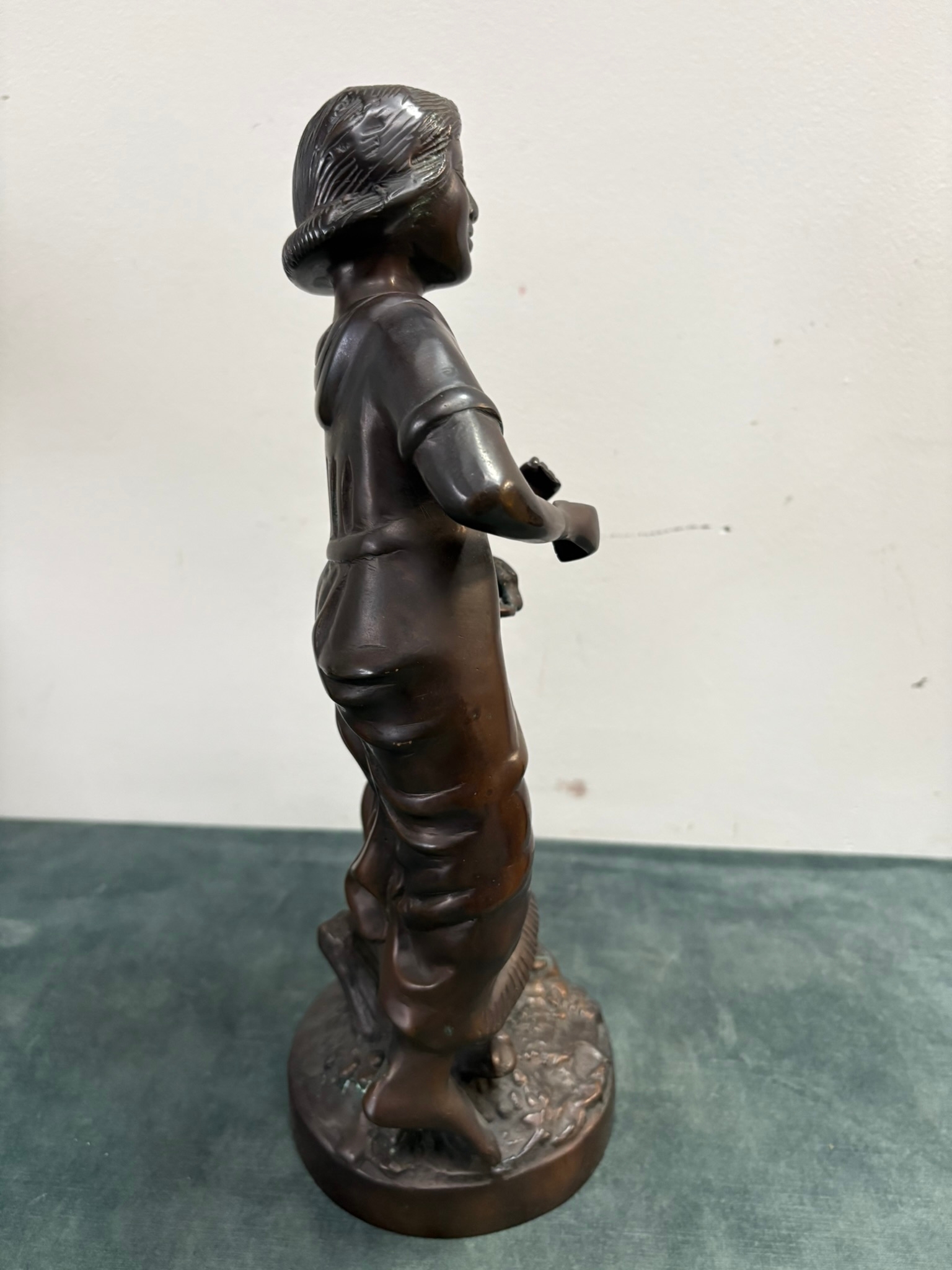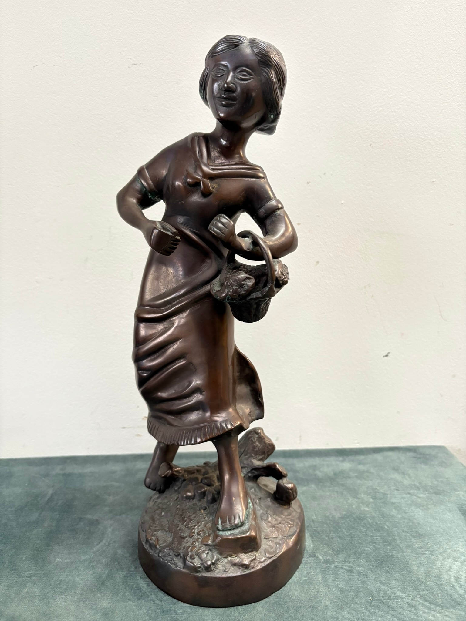 Bronze figure of a lady picking fruit – after Rancoulet