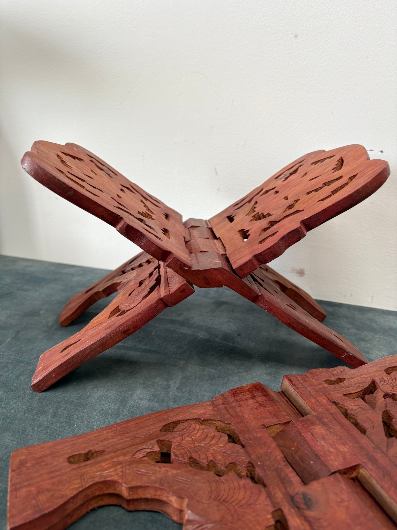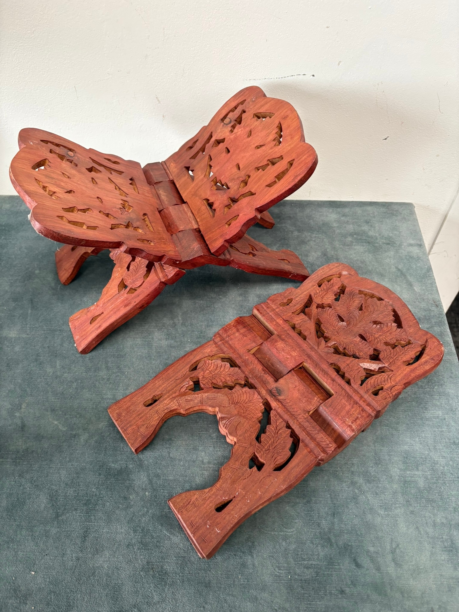 2 x Wooden carved book stands