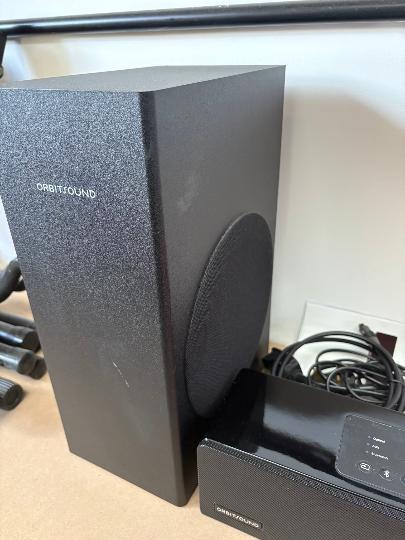 Orbit Sound M9 sound bar with wireless subwoofer and Bluetooth. Complete with all cables, remote control and manual.