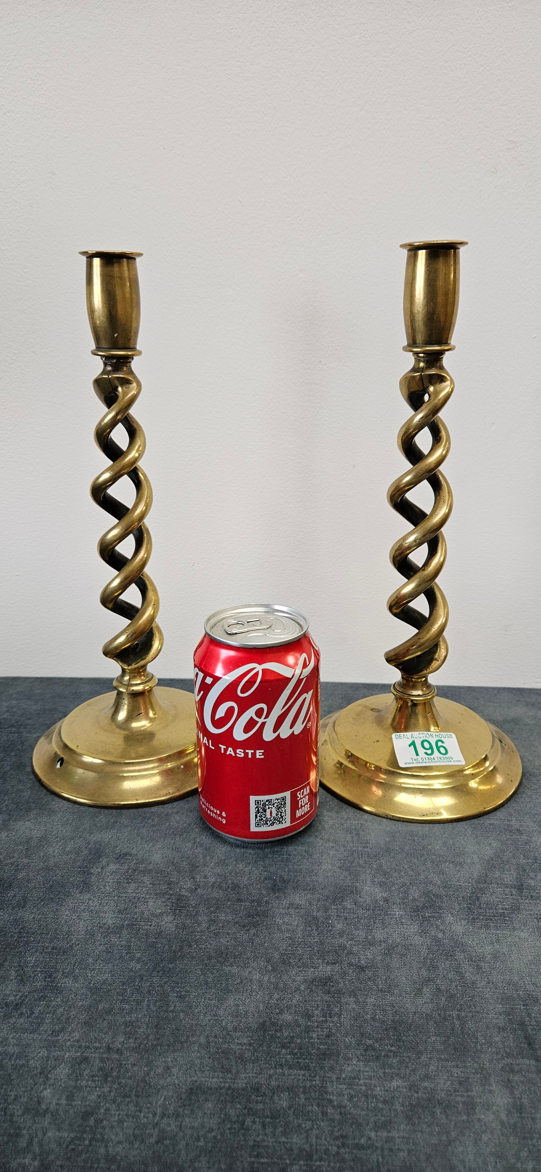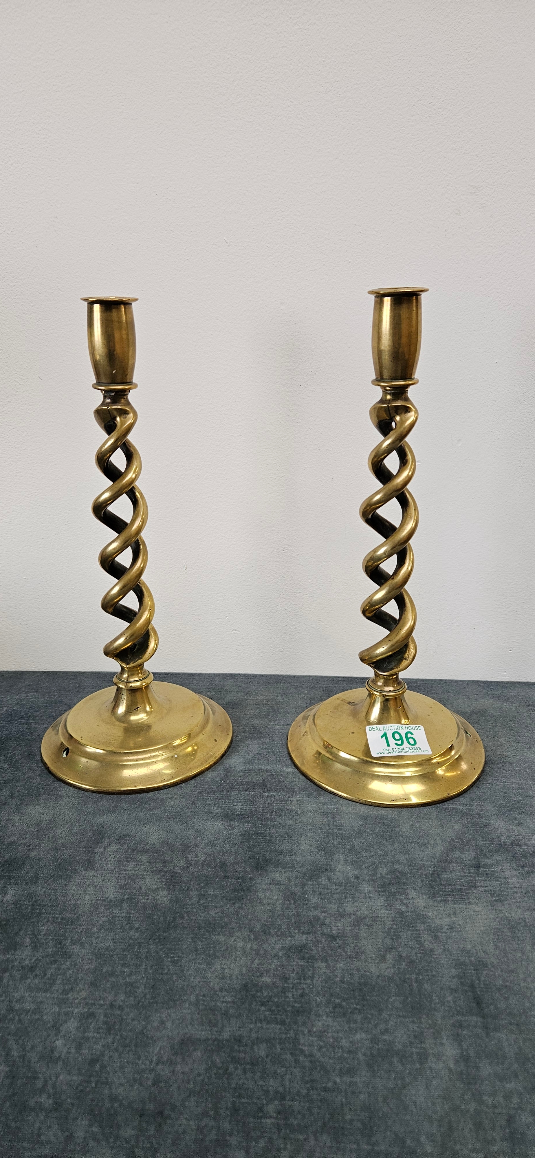 Pair of brass barley twist candlesticks.