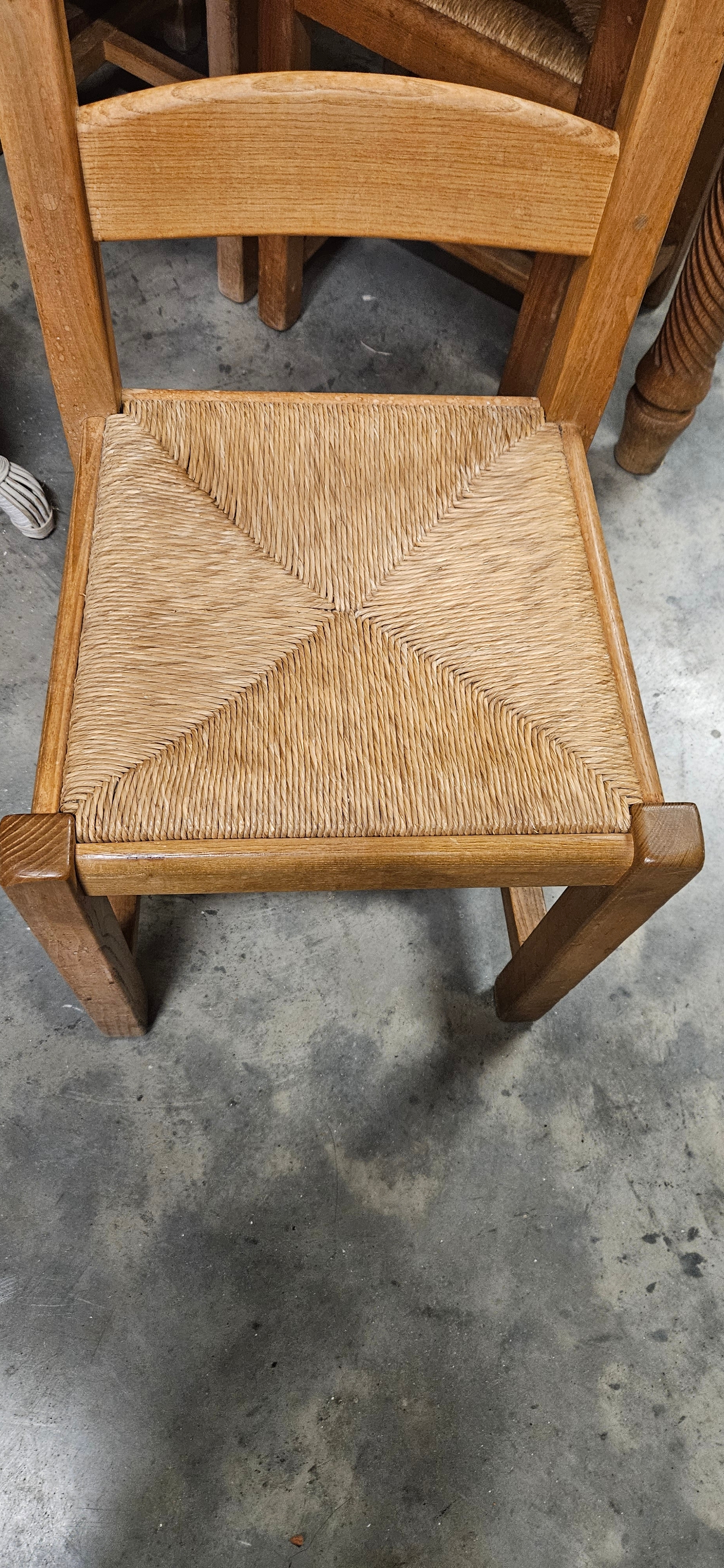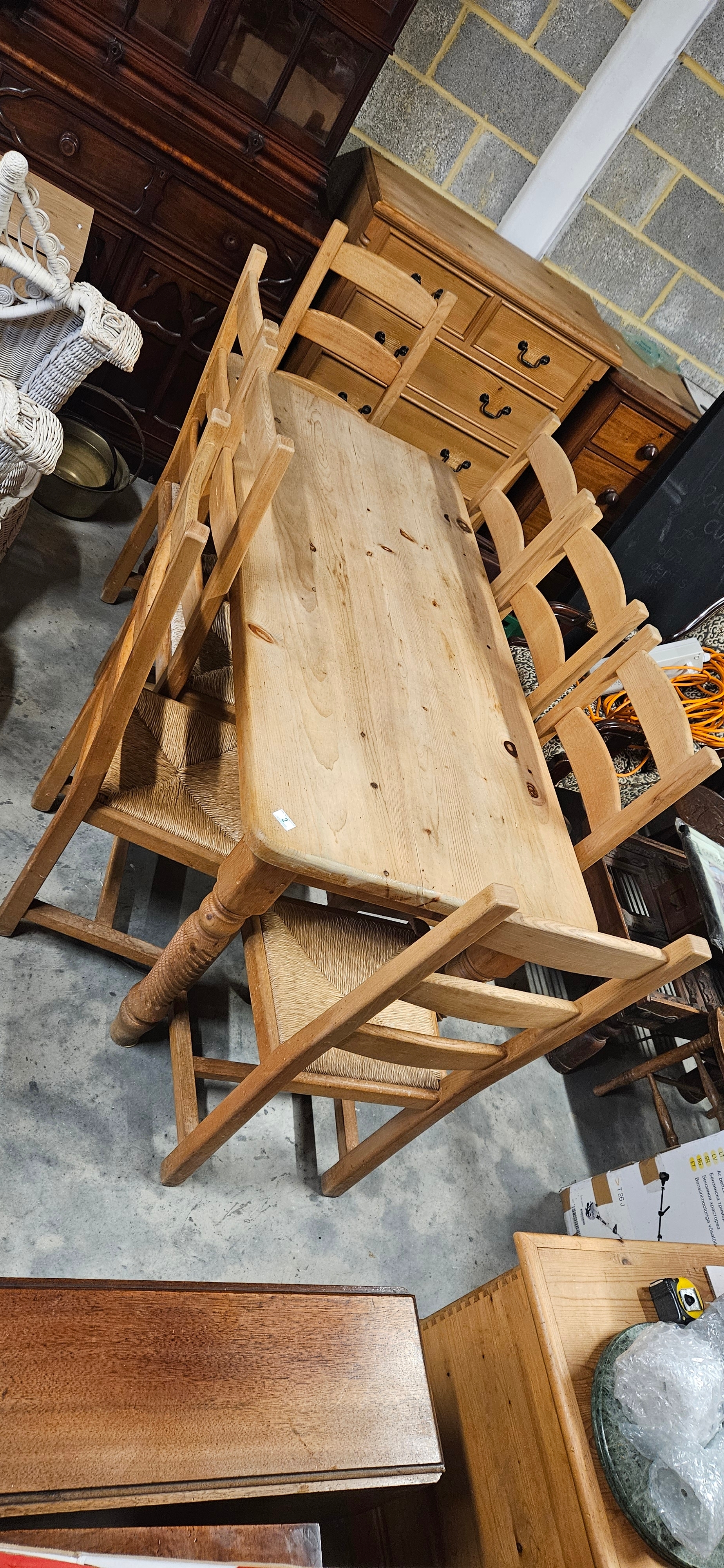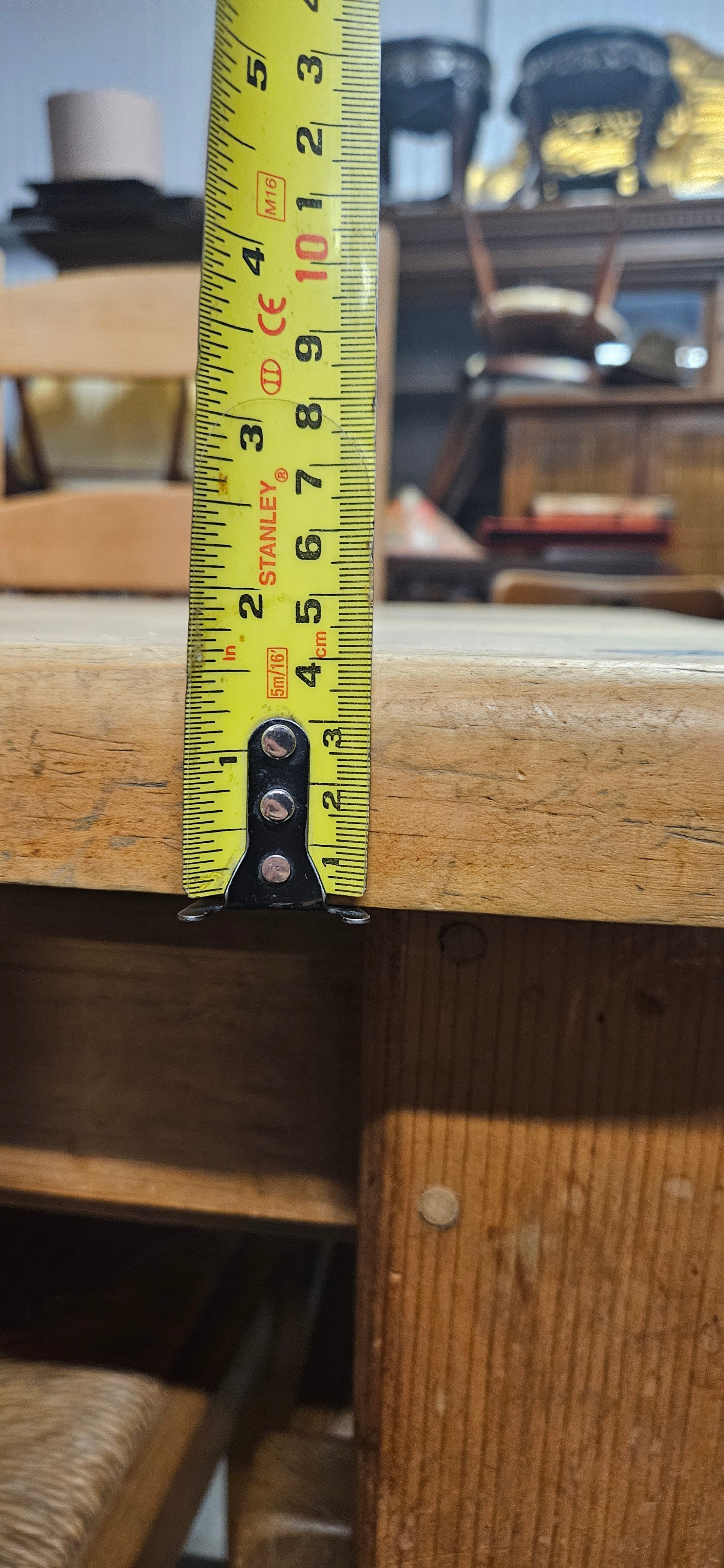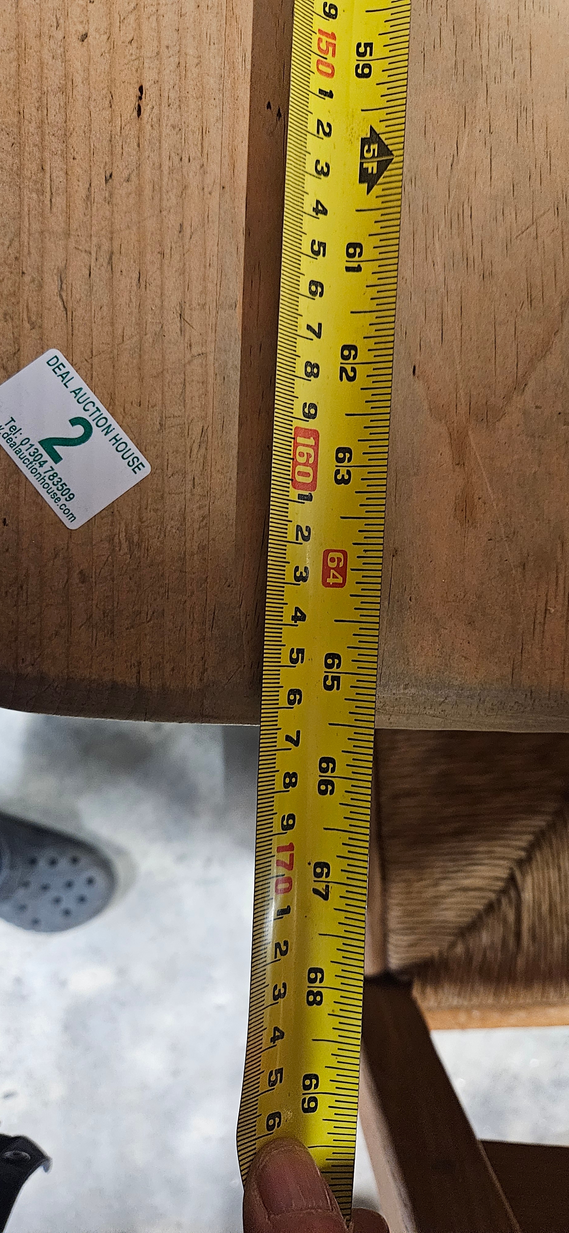 Good quality rustic farmhouse antique pine dining table and 8 dining chairs with rush bases. Very sturdy 166cm 75cm table top