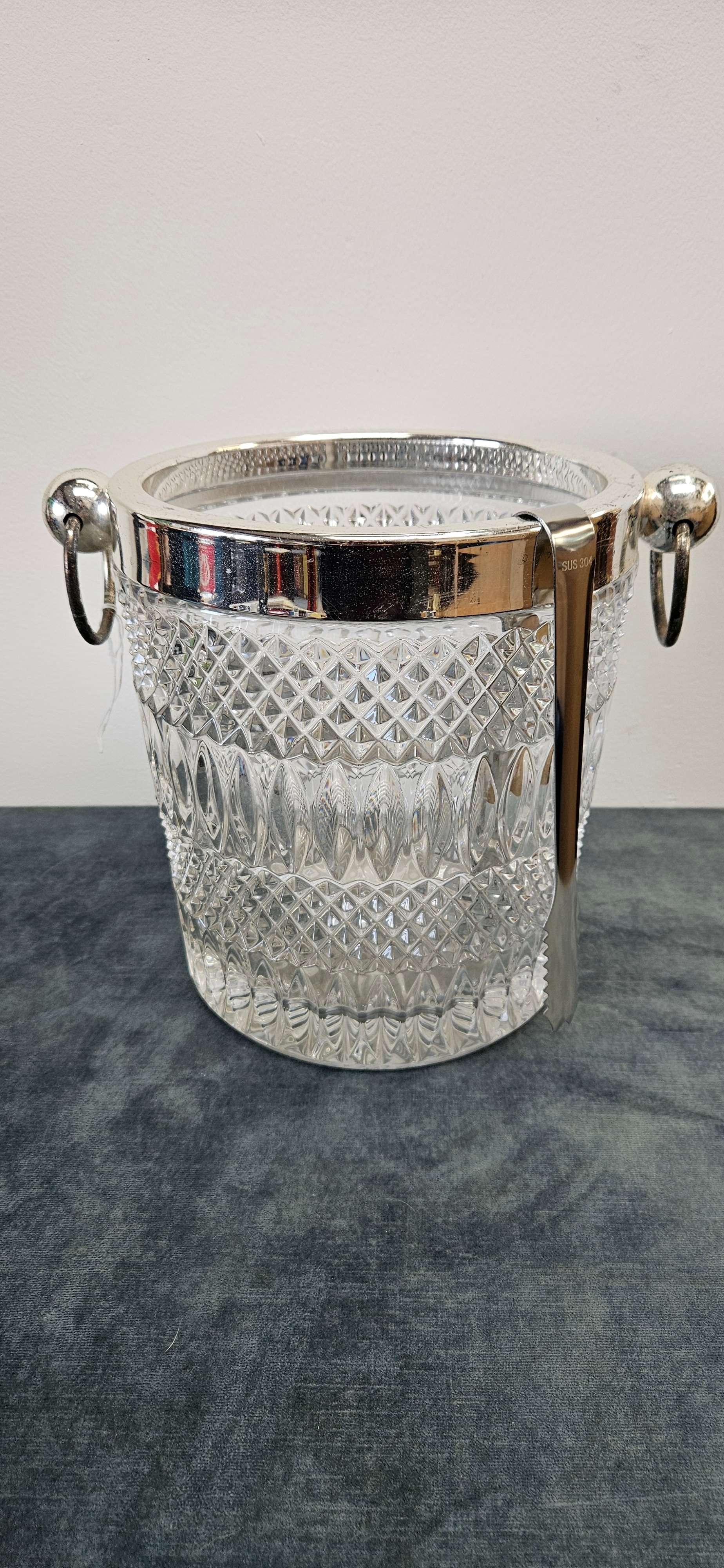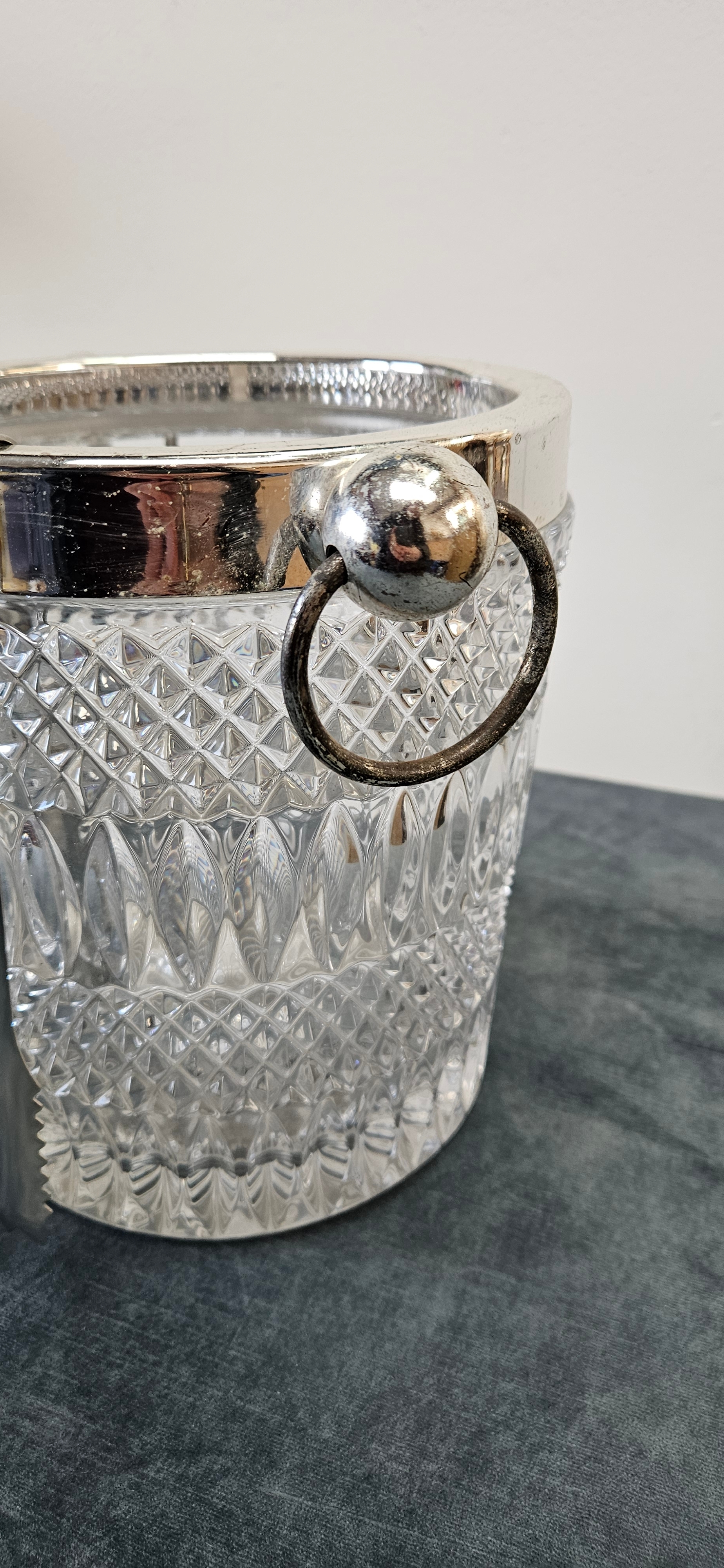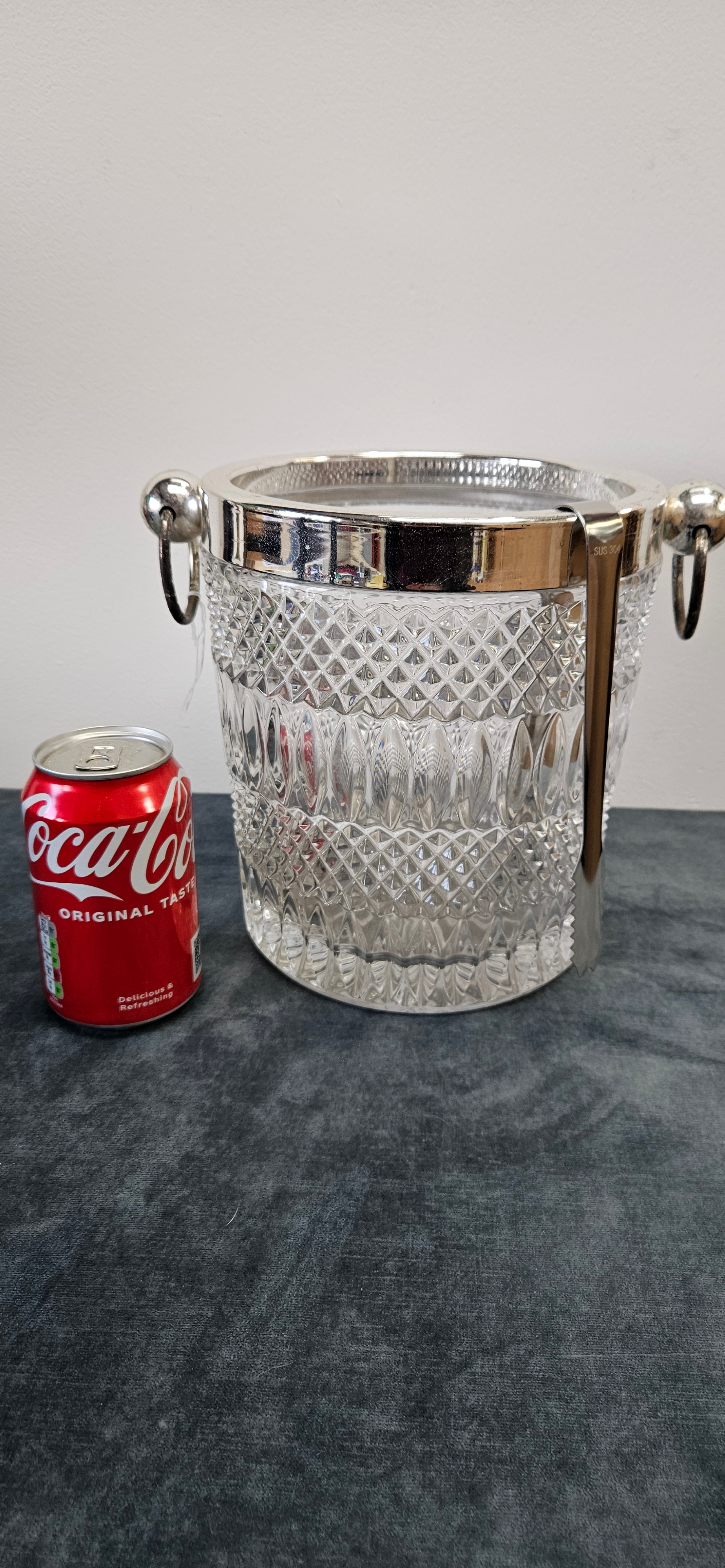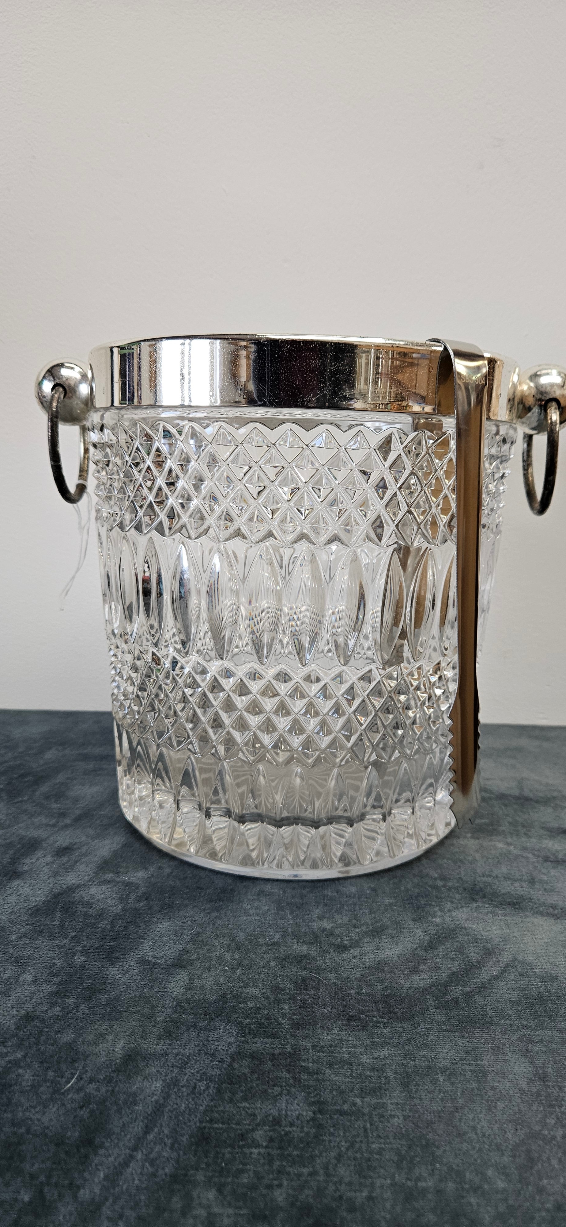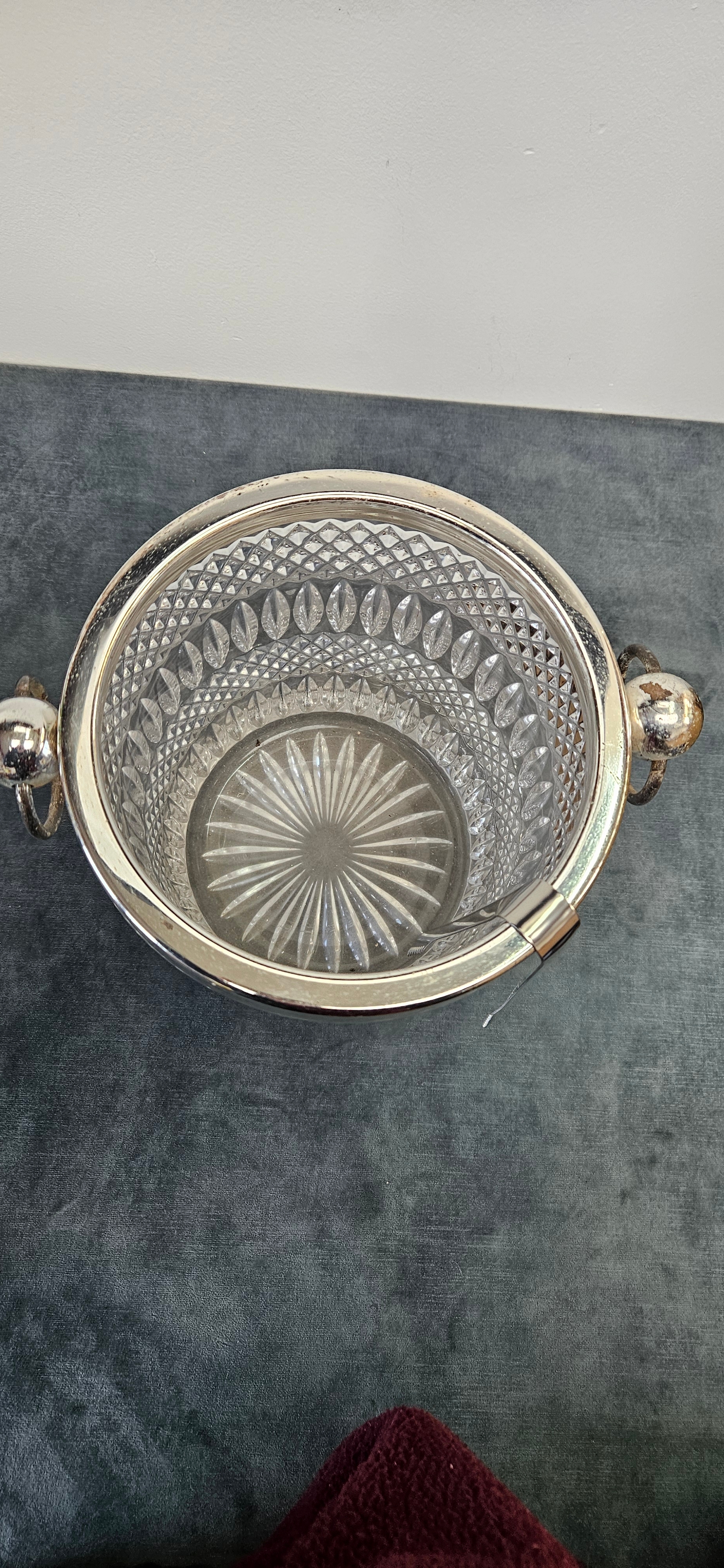 Large heavy crystal and silver plate ice bucket