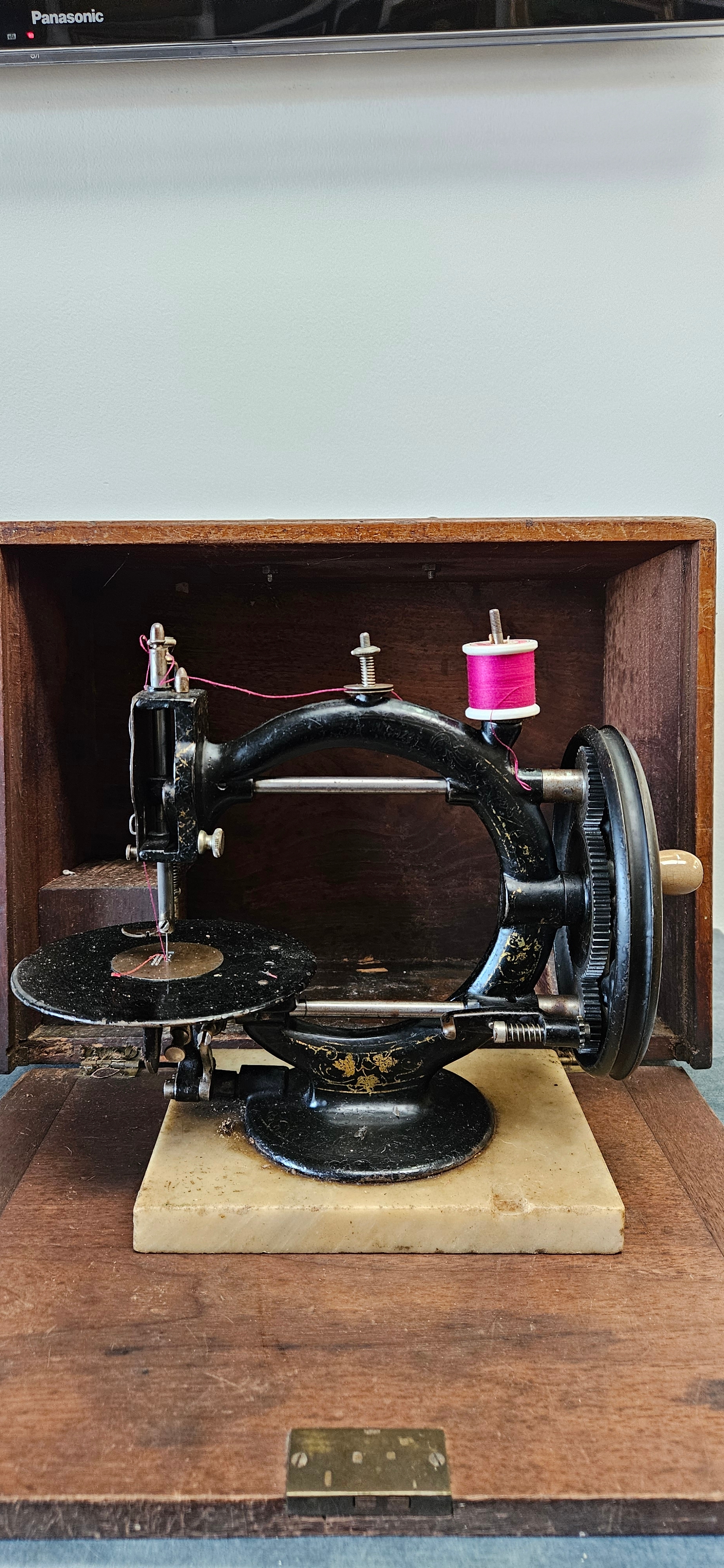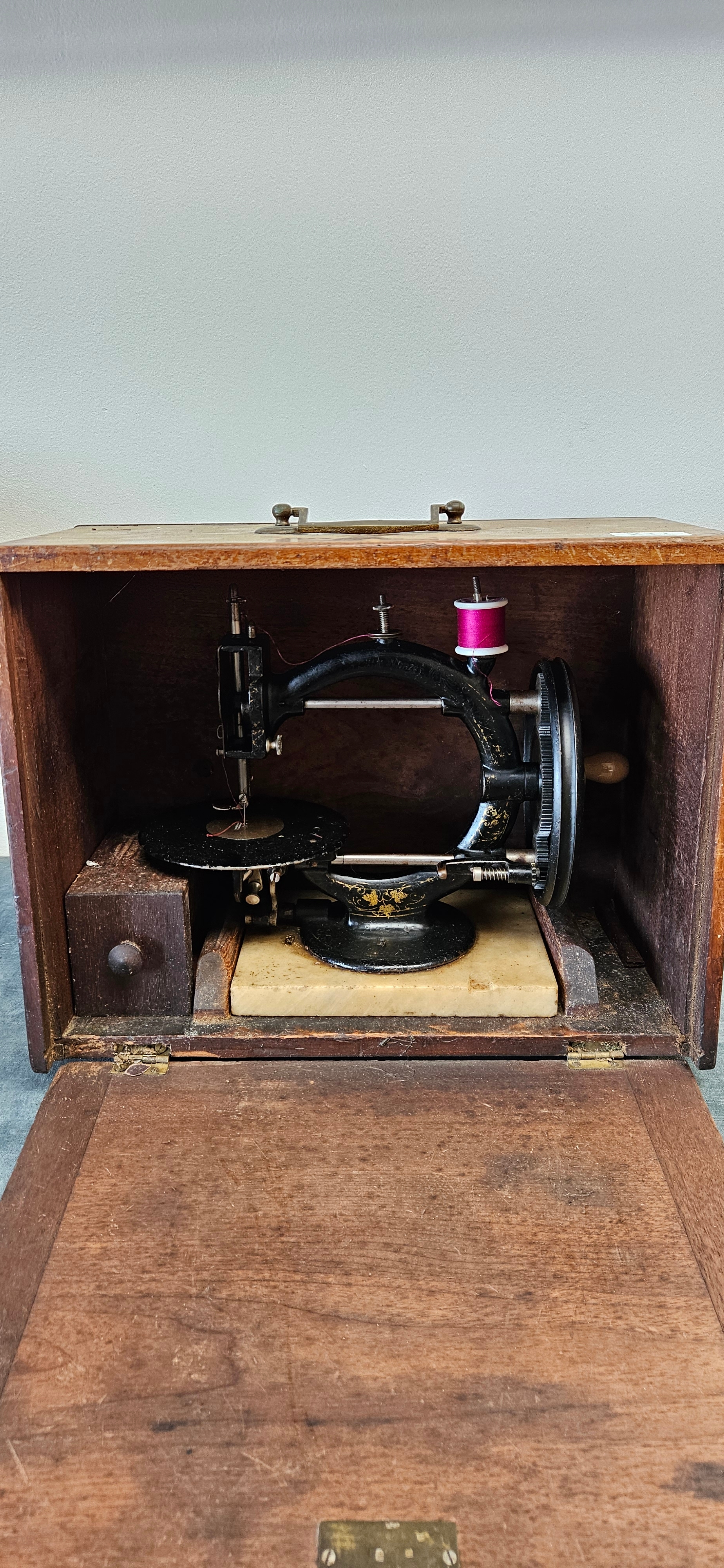 German ‘Little Wanzer’ sewing machine with wooden travel box