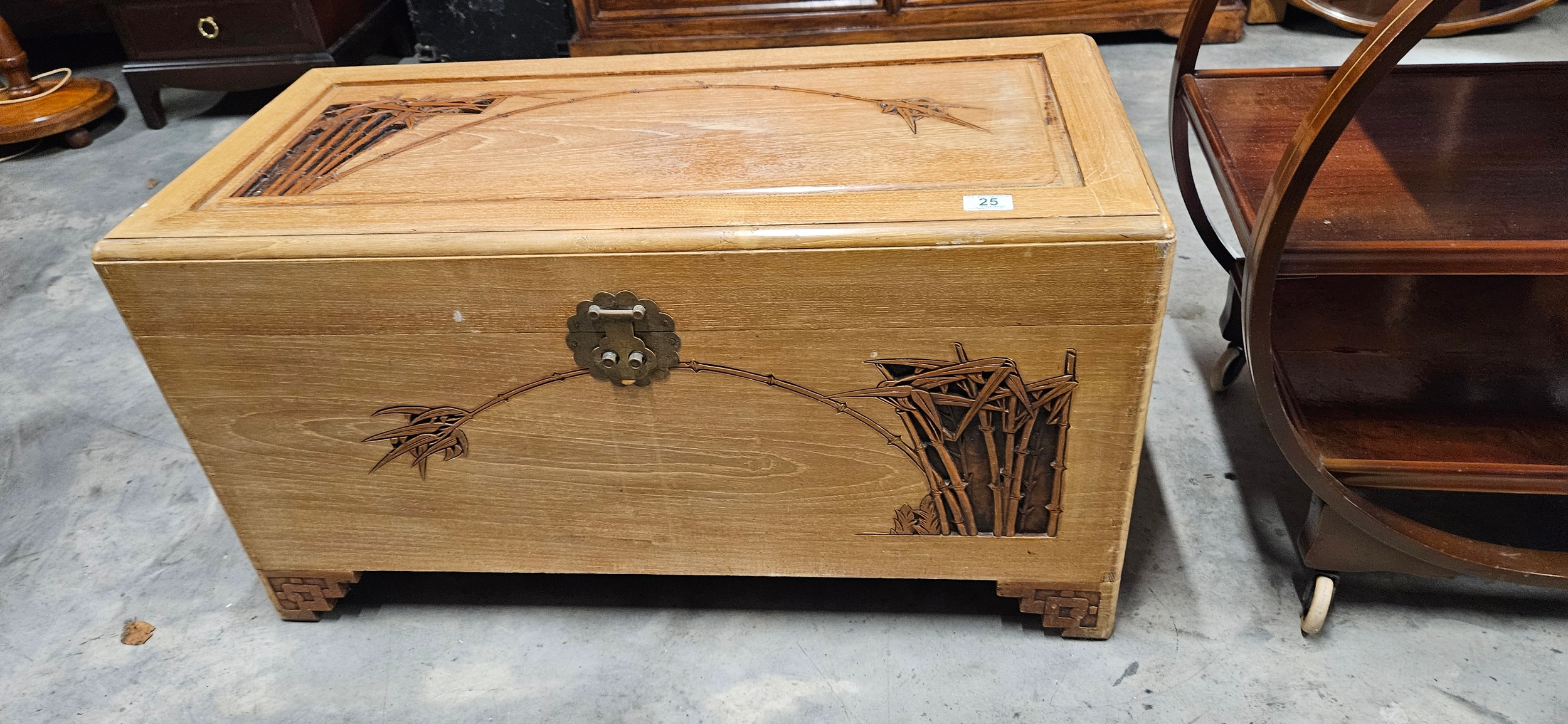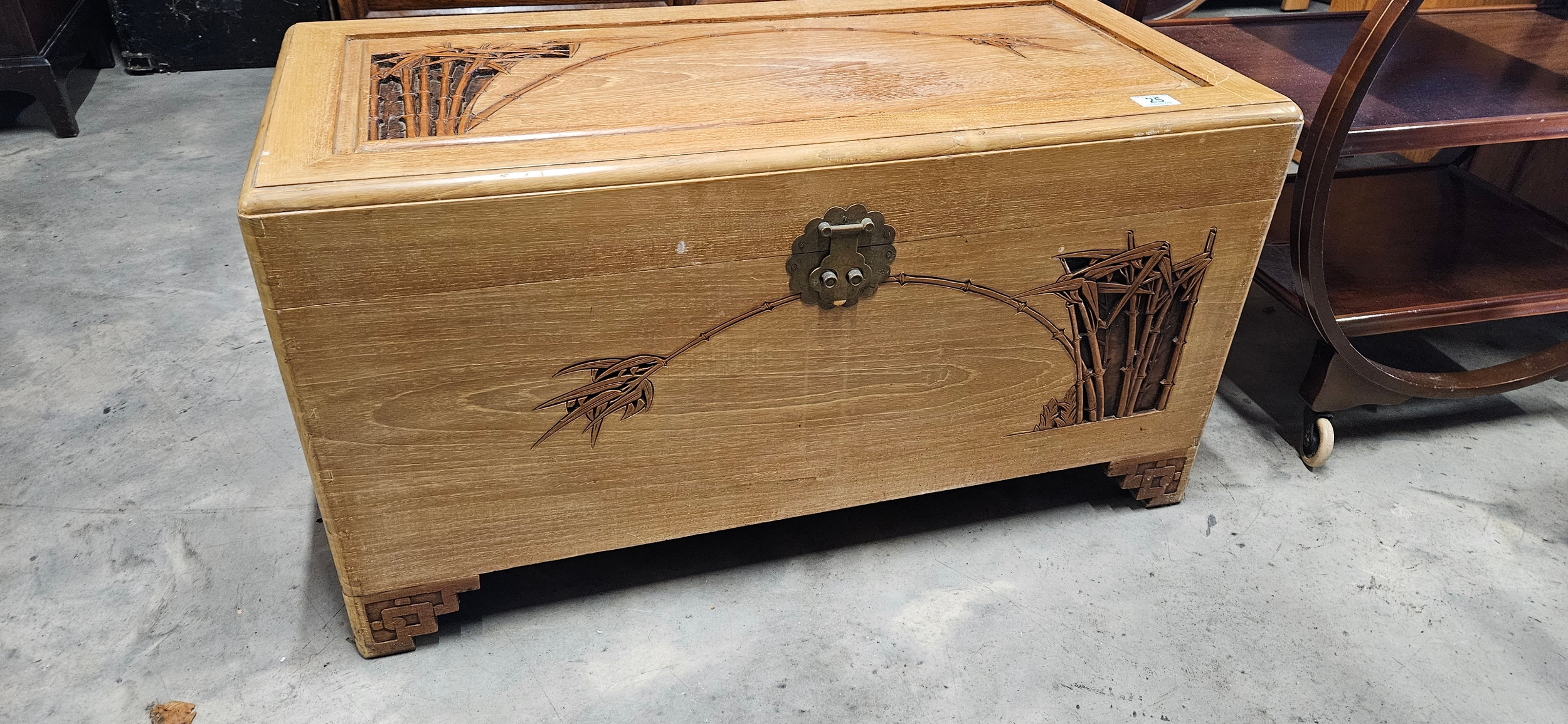 Chinese lightwood carved camphor wood trunk/ chest.
