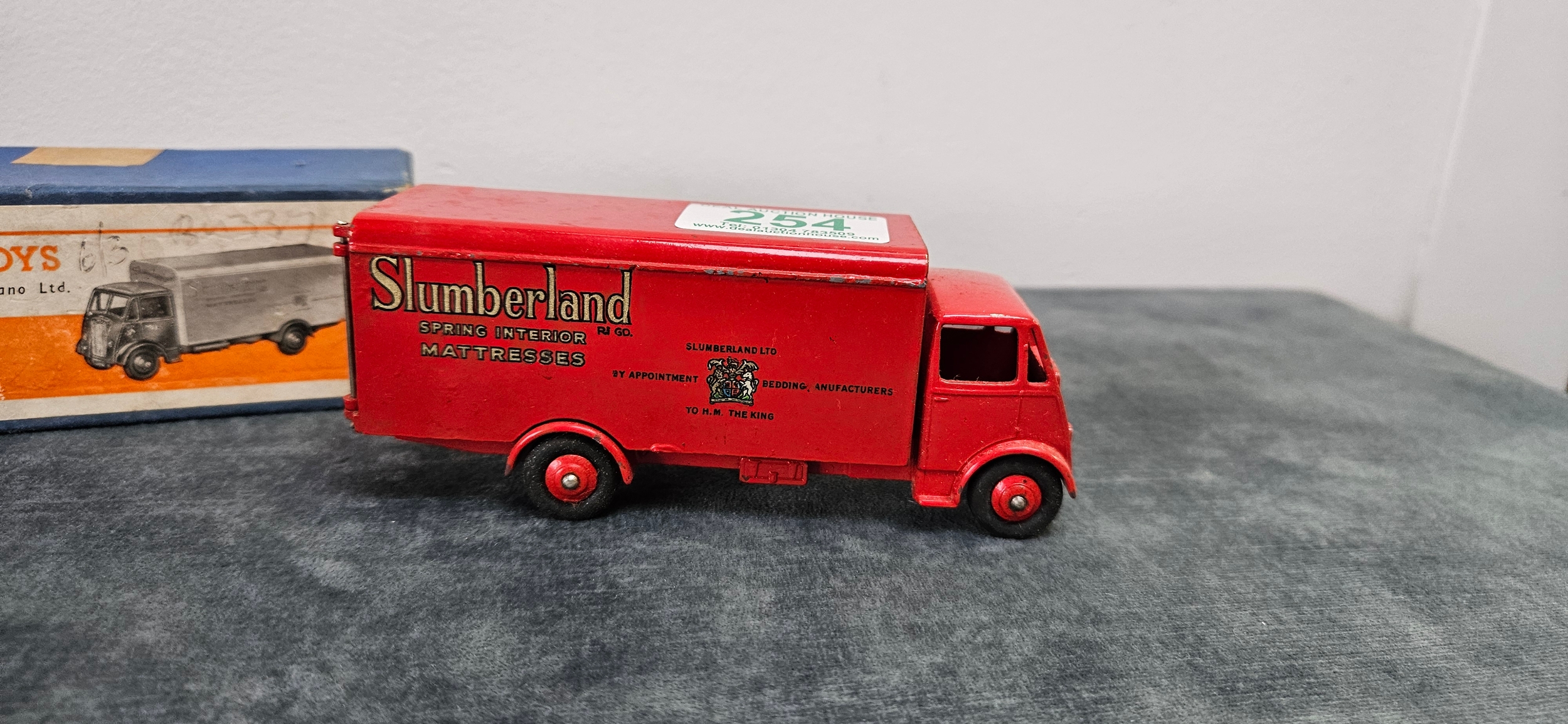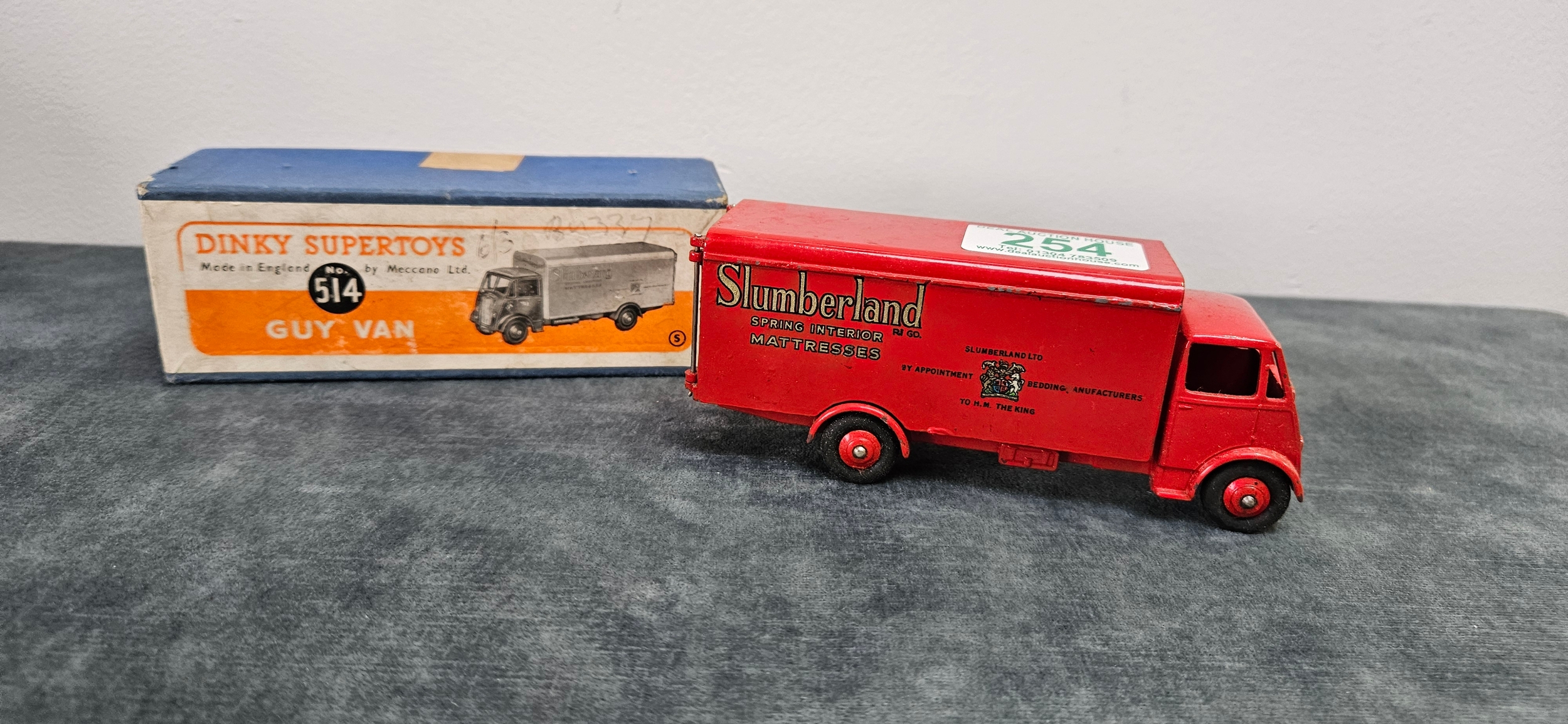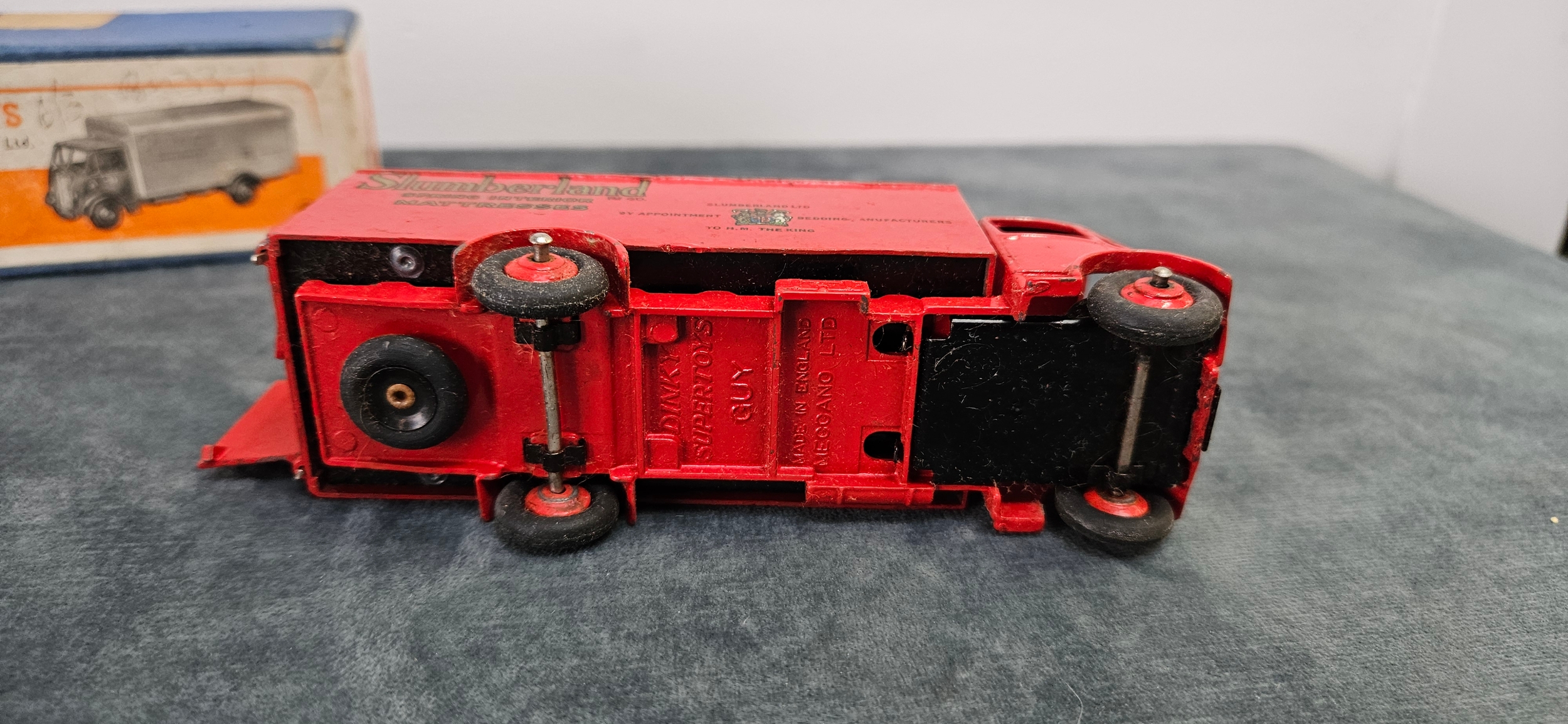 Dinky Supertoys No. 514 Guy Van model, featuring the red "Slumberland" livery.