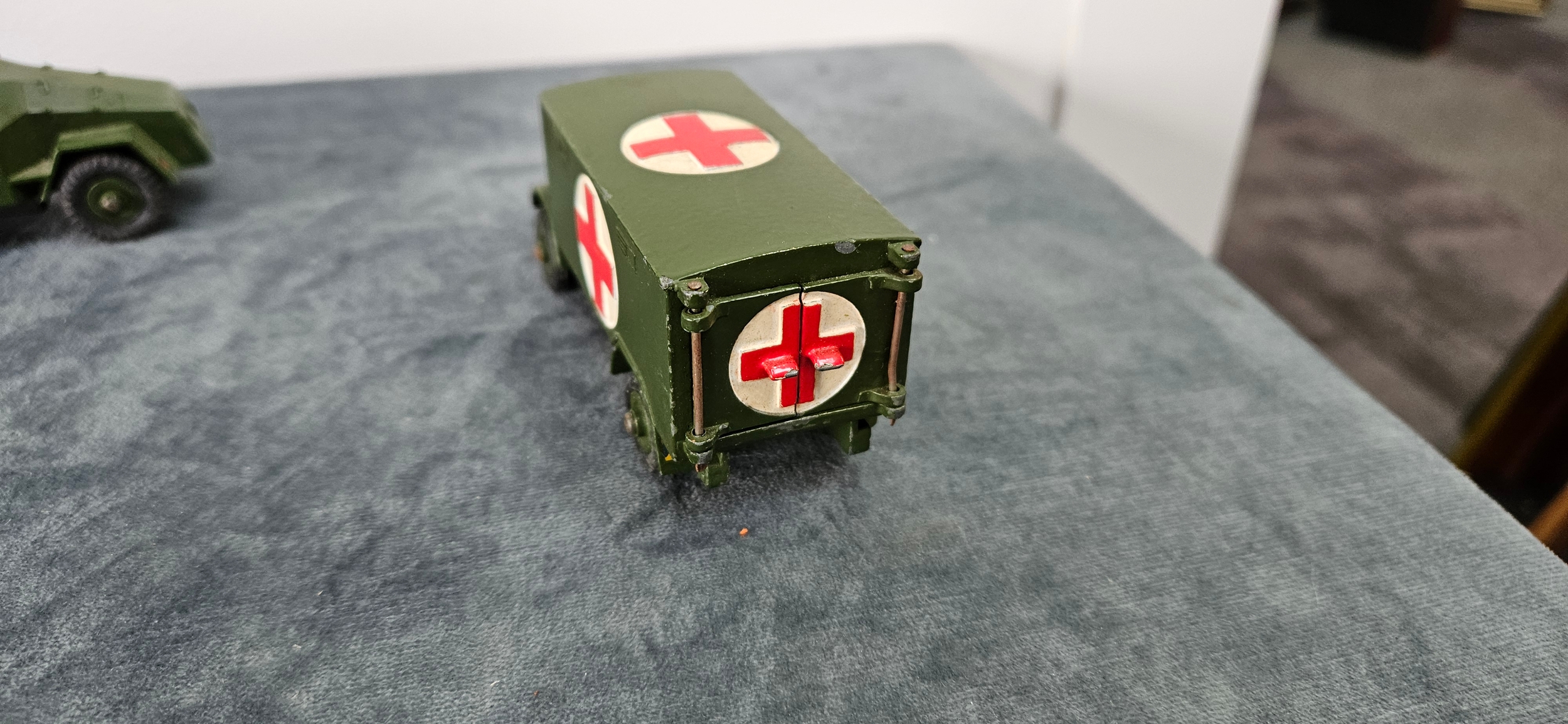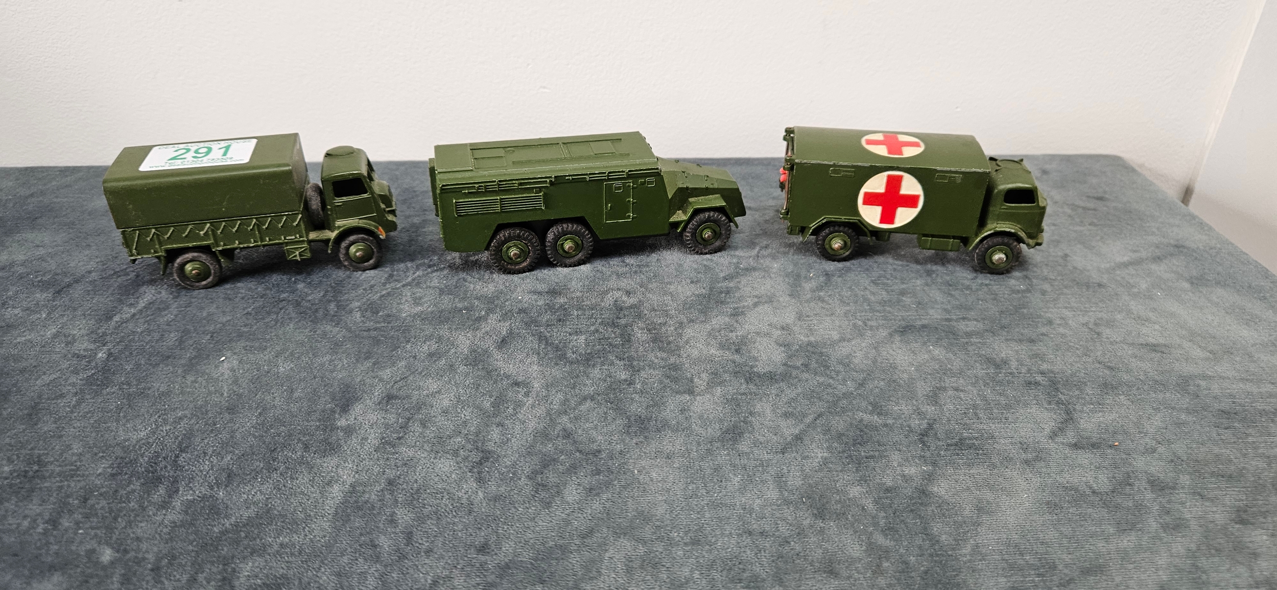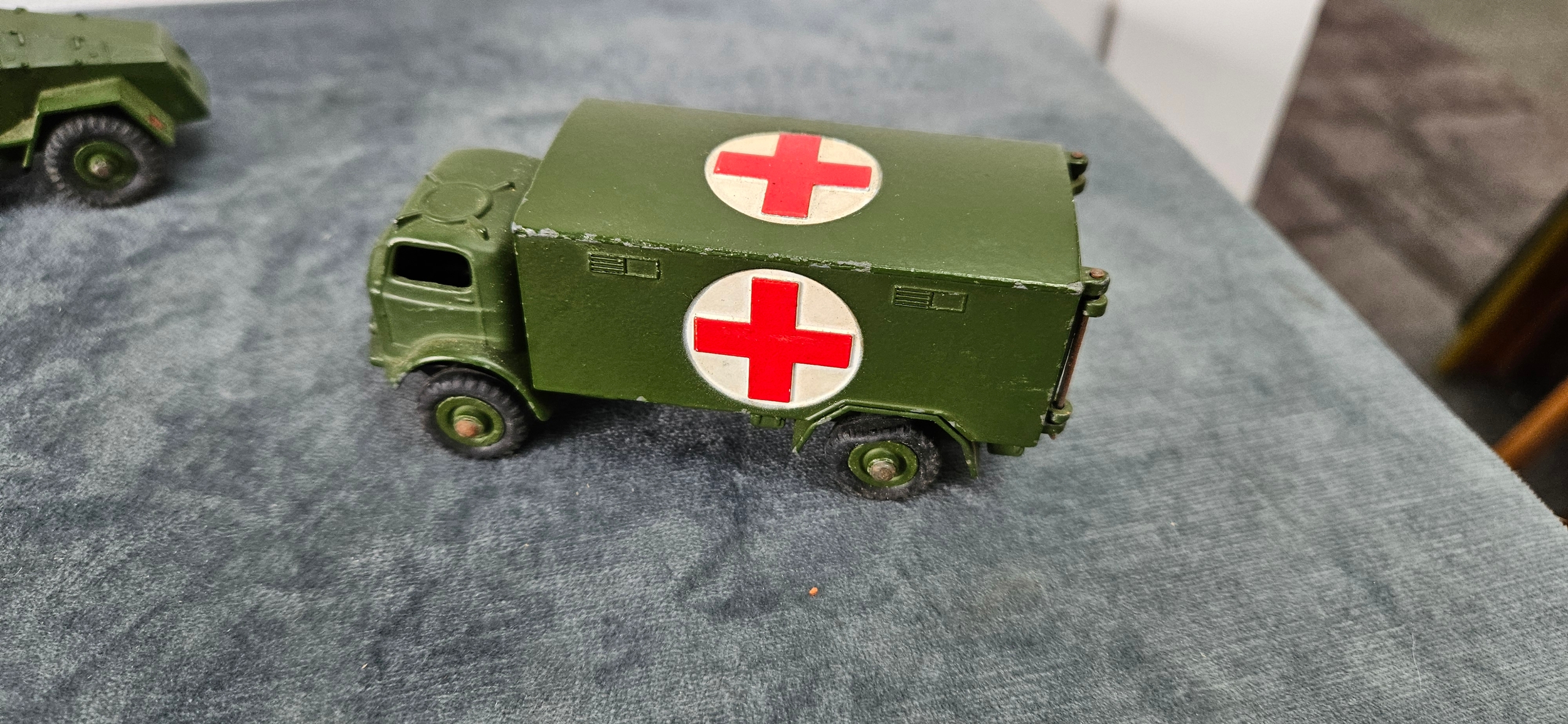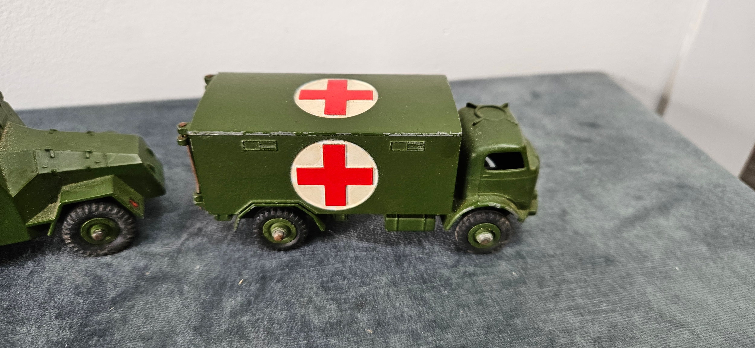 Dinky Toys military die-cast vehicles including – Military Ambulance 626, Armoured Command Vehicle 677 and Army Wagon 623