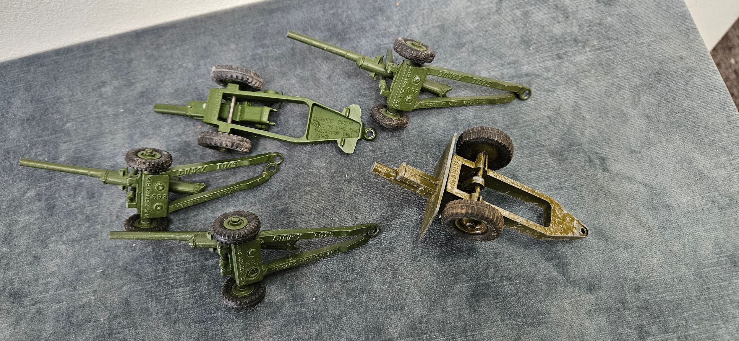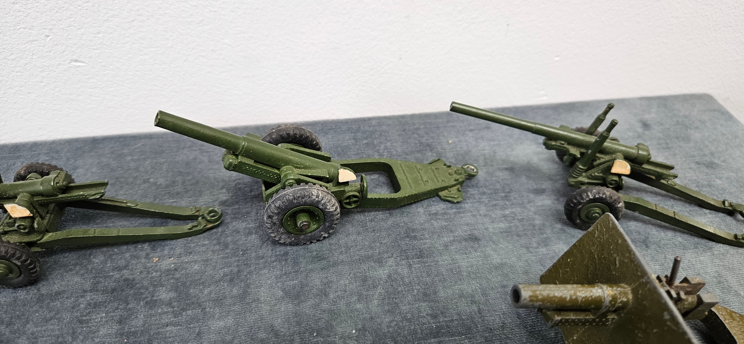 Collection of vintage military die-cast guns including Britains/ Dinky