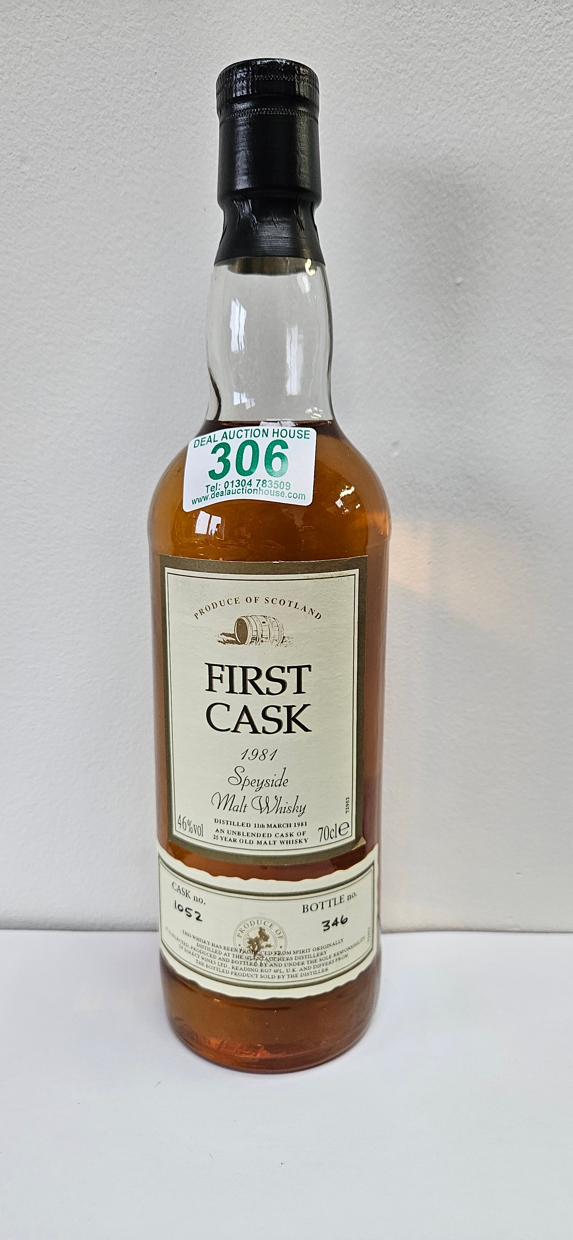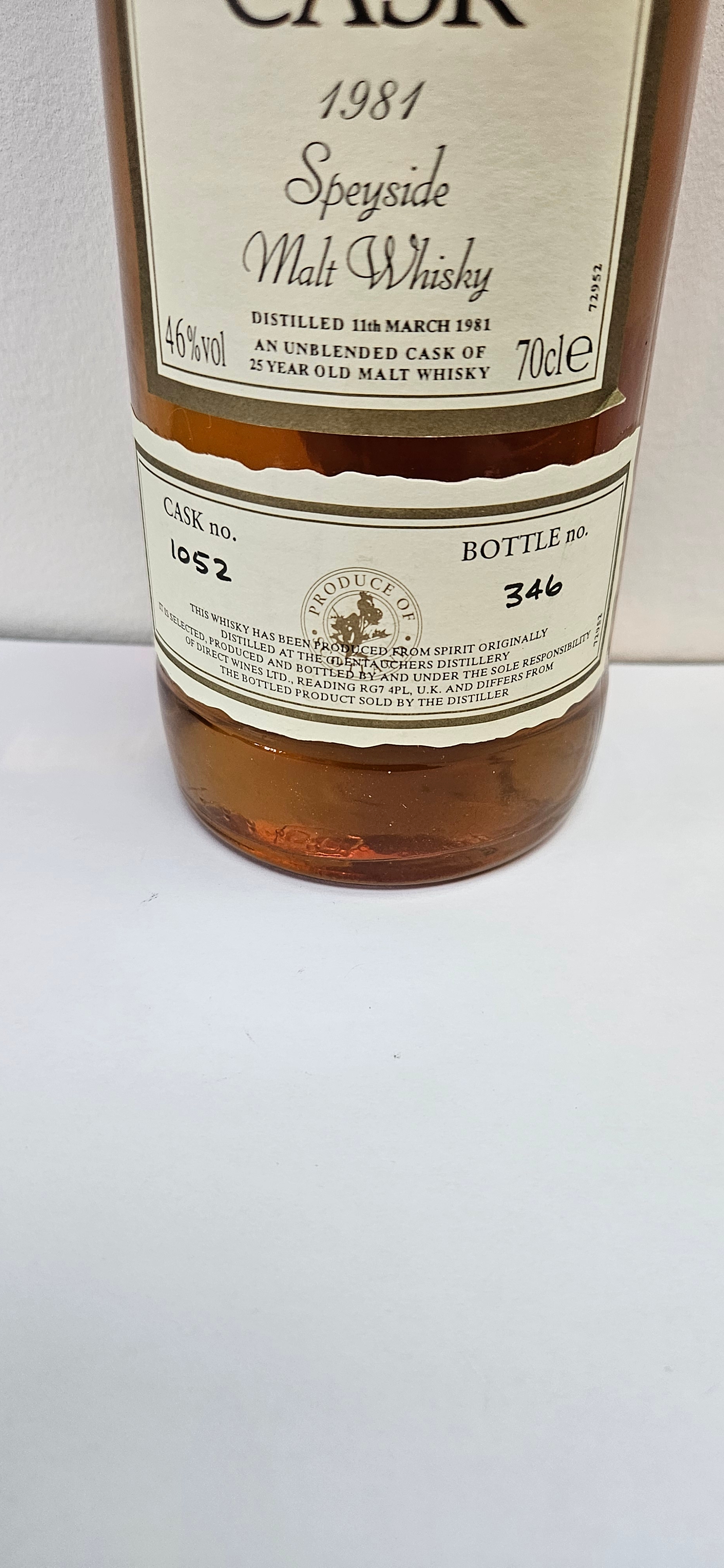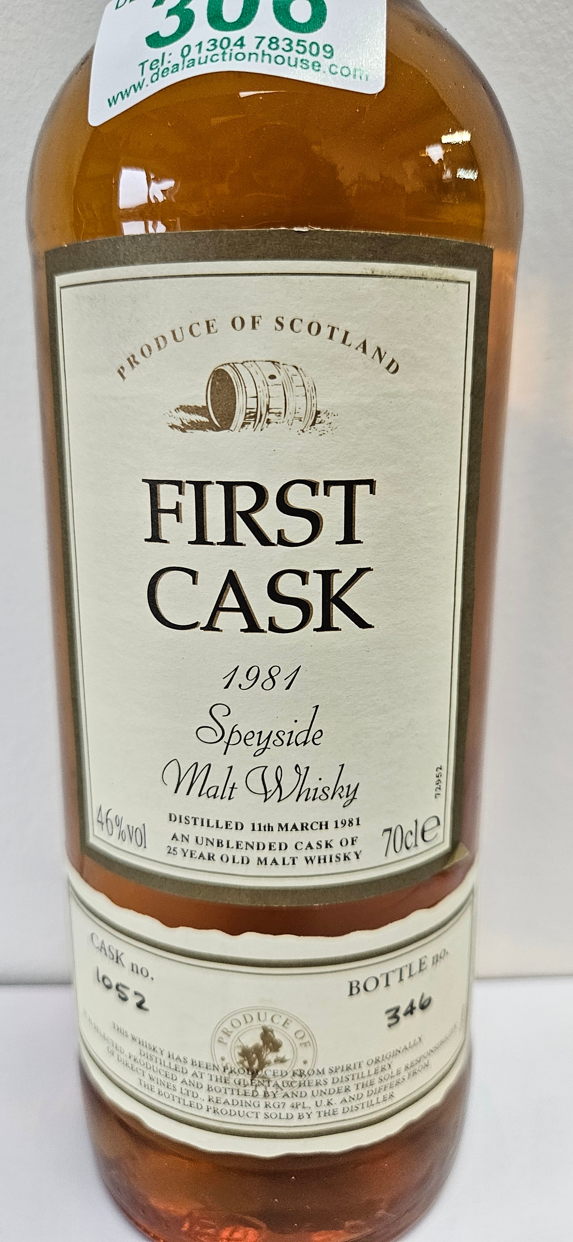 First Cask 1981 Speyside Malt Whisky 25 Year Old – Distilled at The Glentauchers Distillery, 46% ABV.
