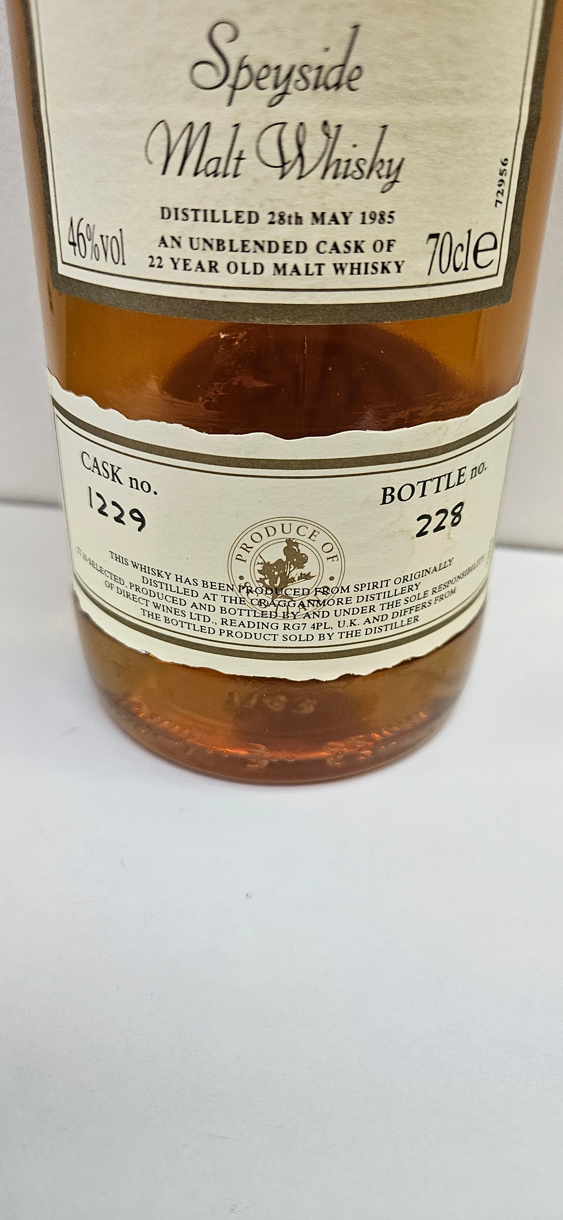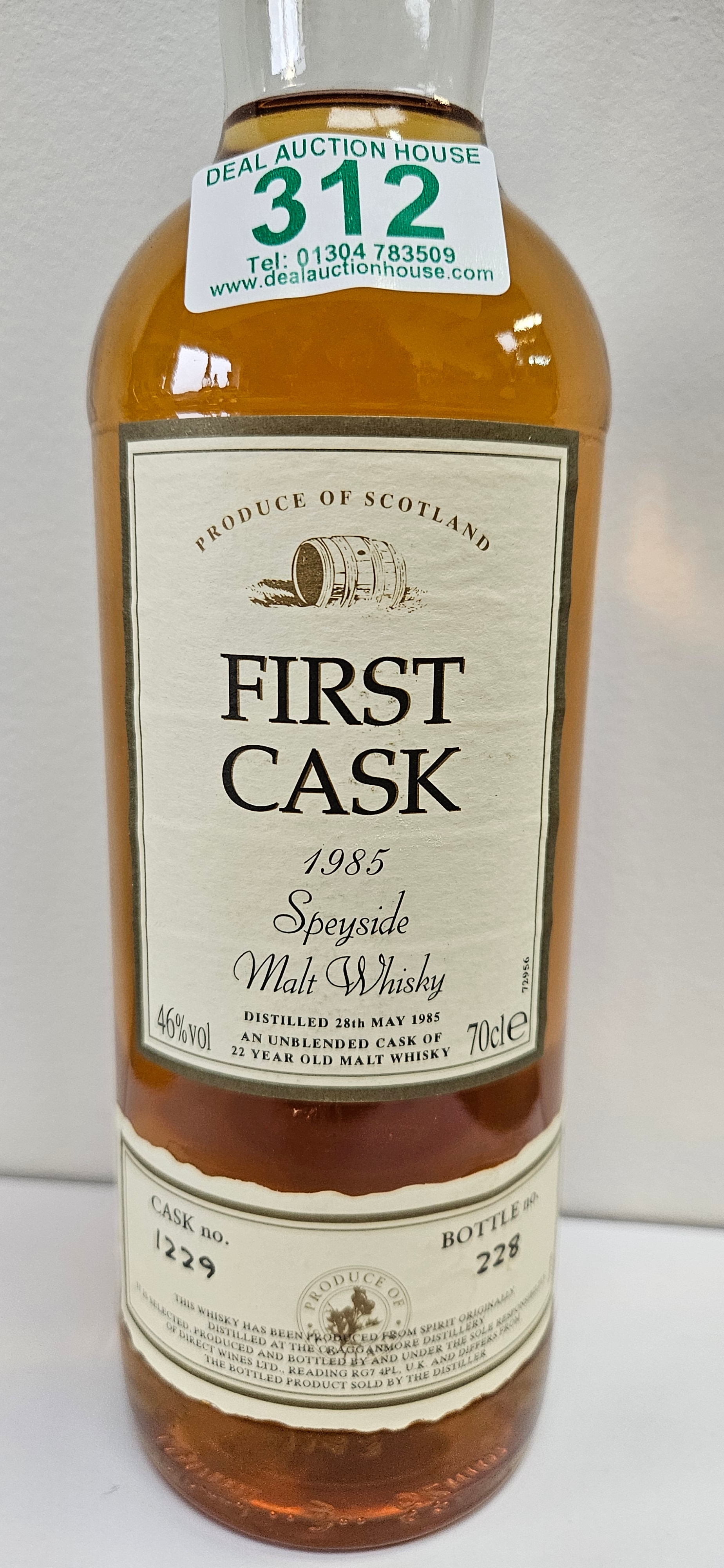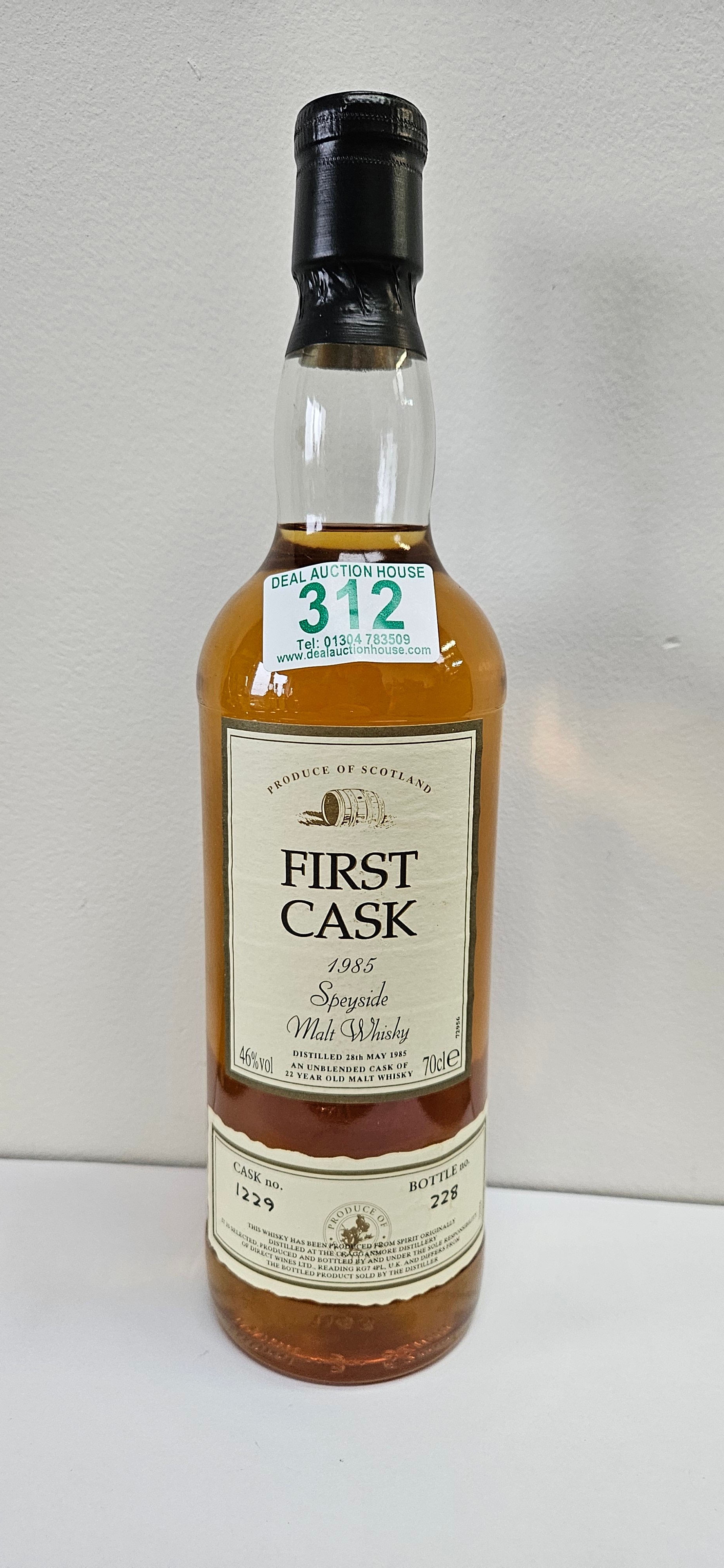First Cask 1985 Speyside Malt Whisky 22 Year Old – Distilled at The Cragg Anmore Distillery, 46% ABV.