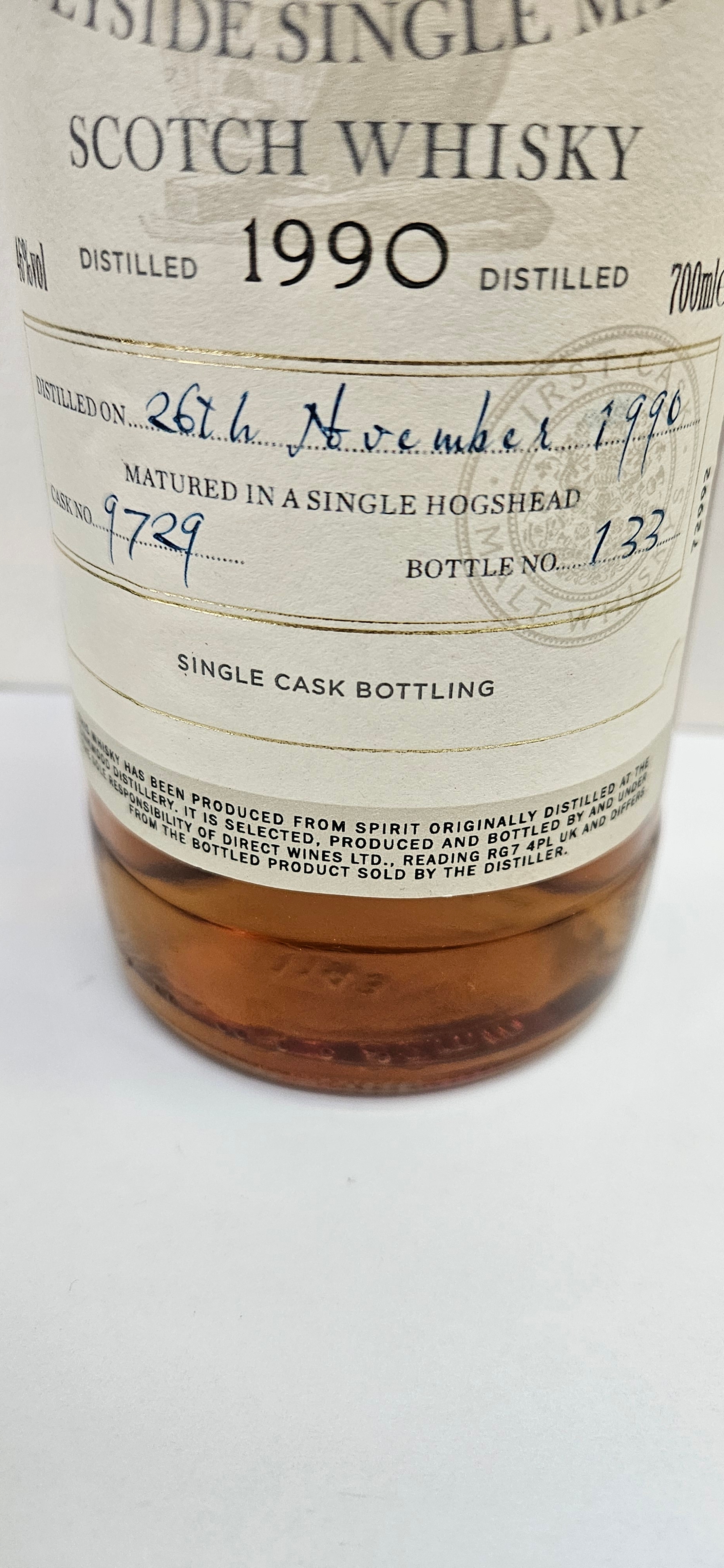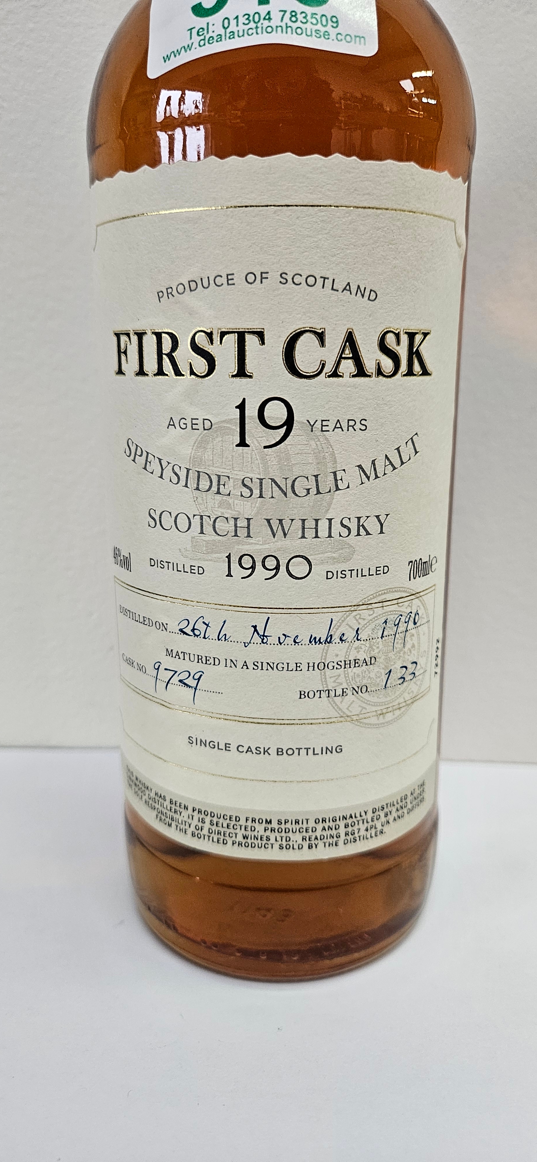 First Cask 1990 Speyside Malt Whisky 19 Year Old – Distilled at The Linkwood Distillery, 46% ABV.