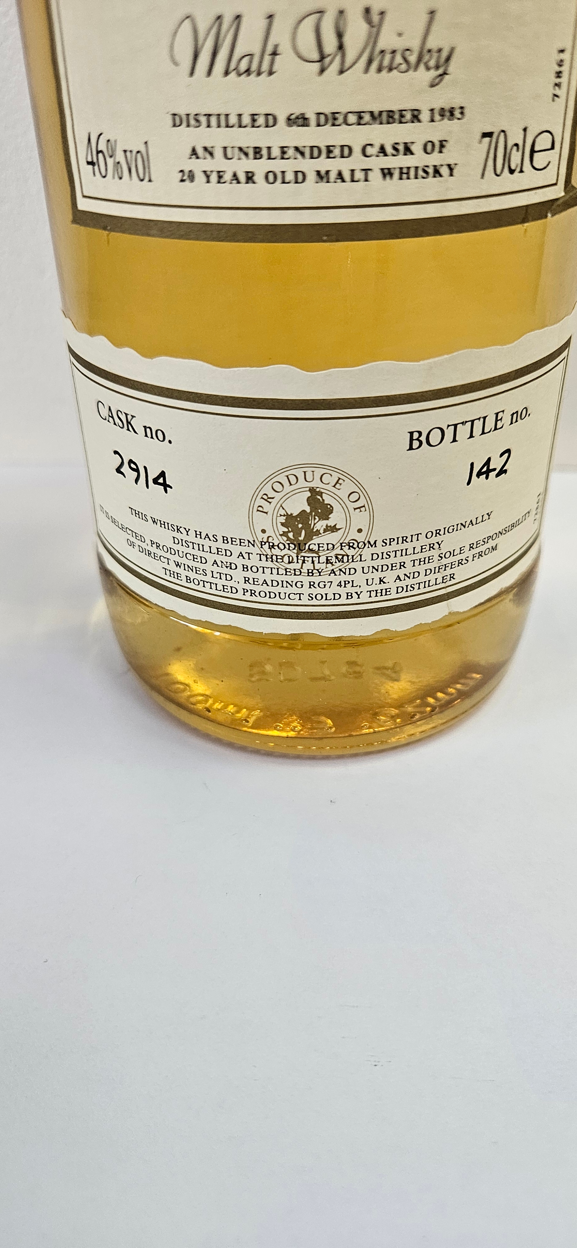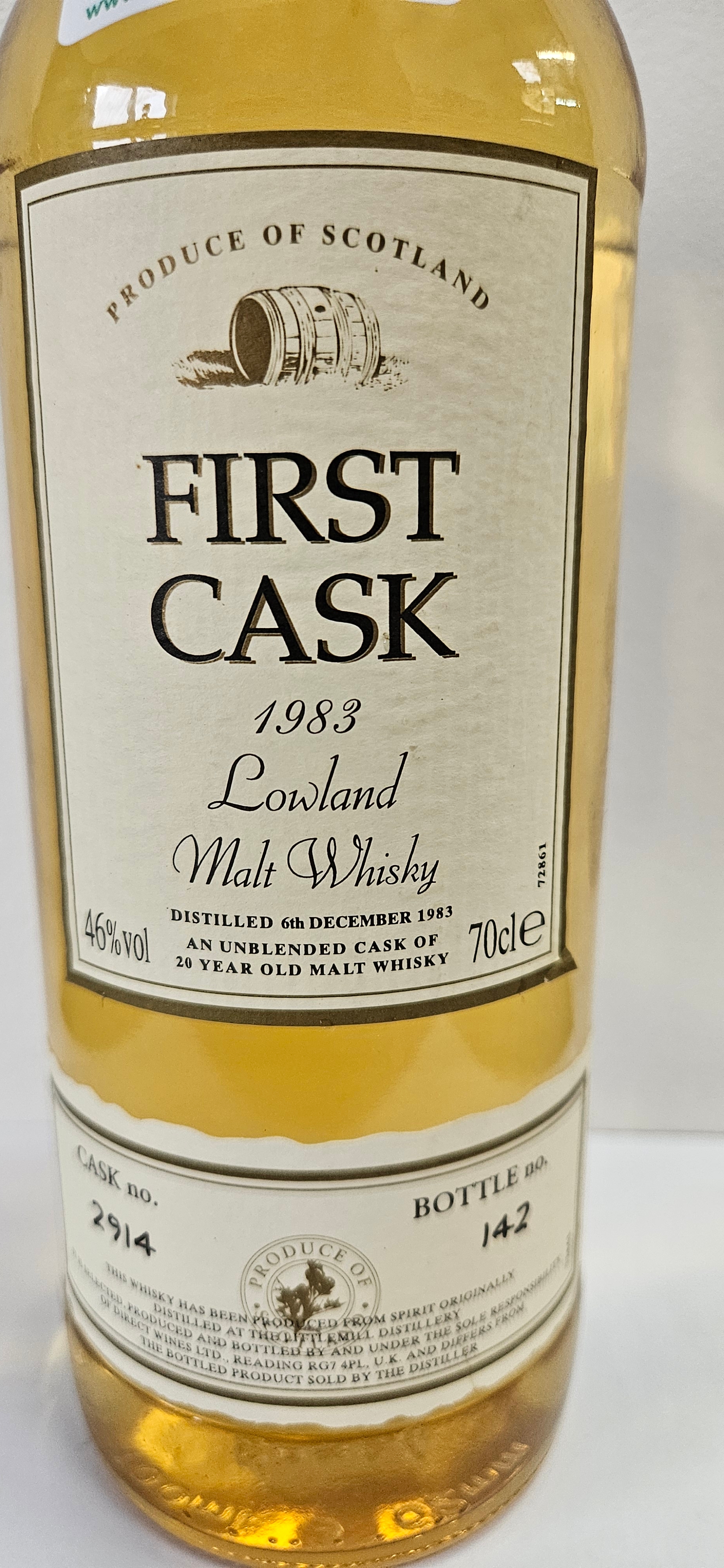 First Cask 1983 Lowland Malt Whisky 20 Year Old – Distilled at The Littlemill Distillery, 46% ABV.