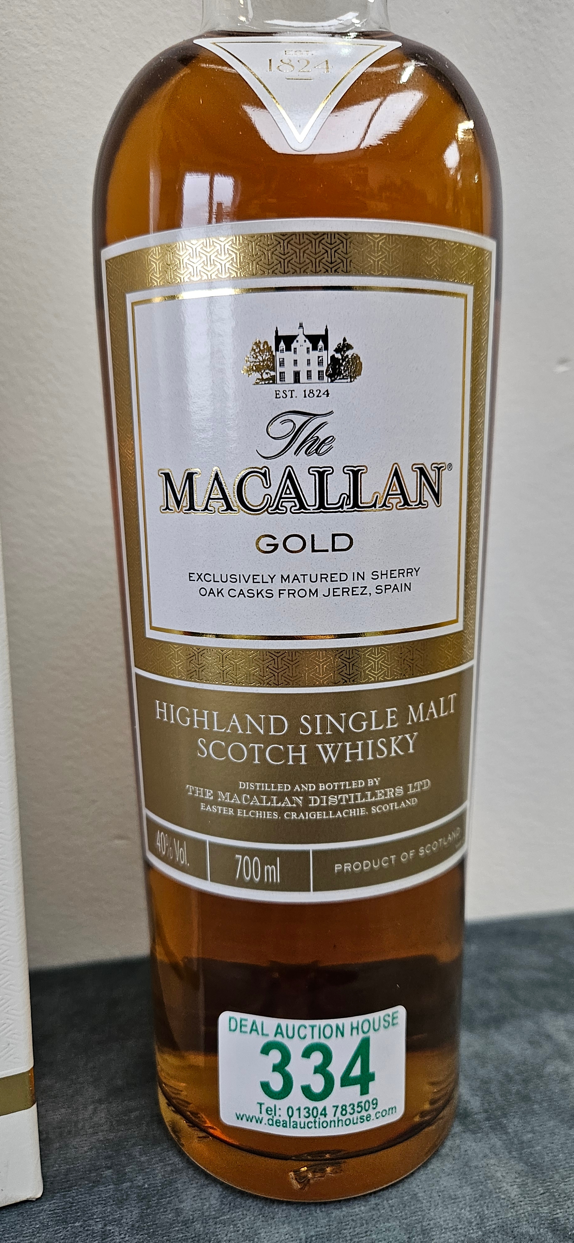 The Macallan Gold Highland Single Malt Scotch Whisky, part of the 1824 Series.