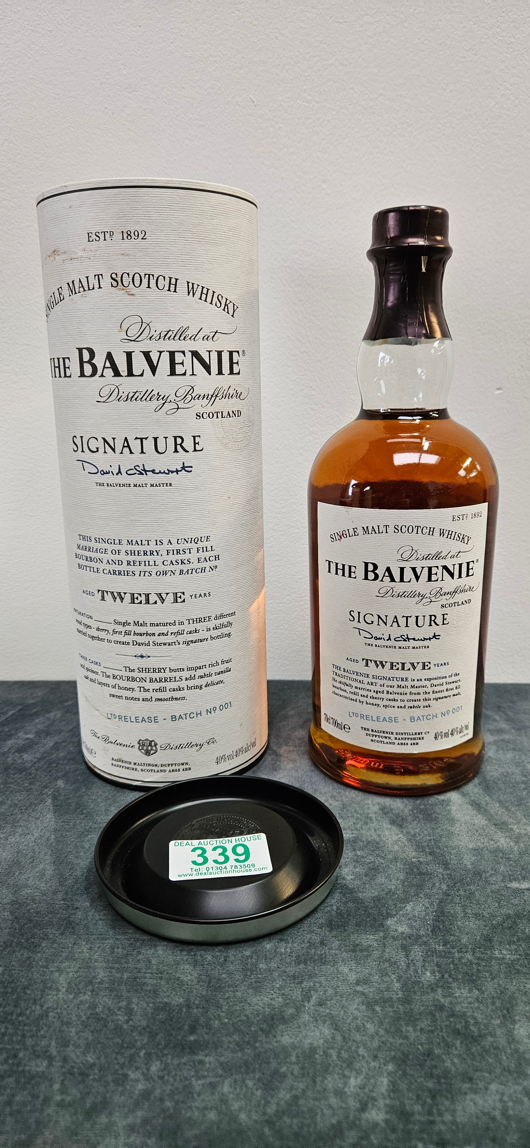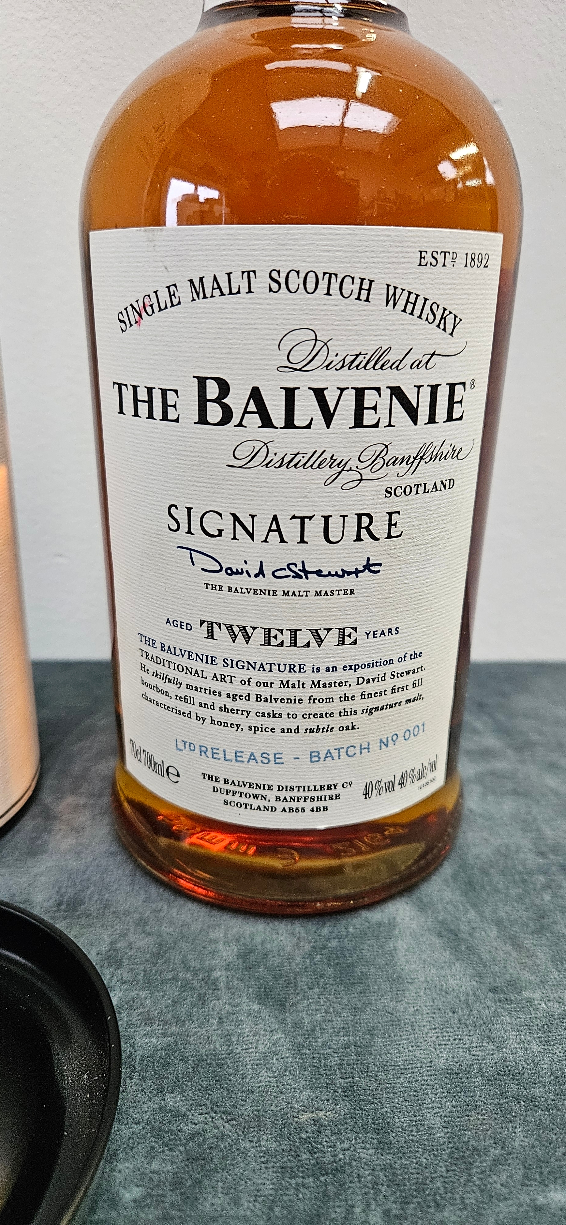 The Balvenie 12 Year Old Signature Limited Batch Release No. 001 single malt Scotch whisky.