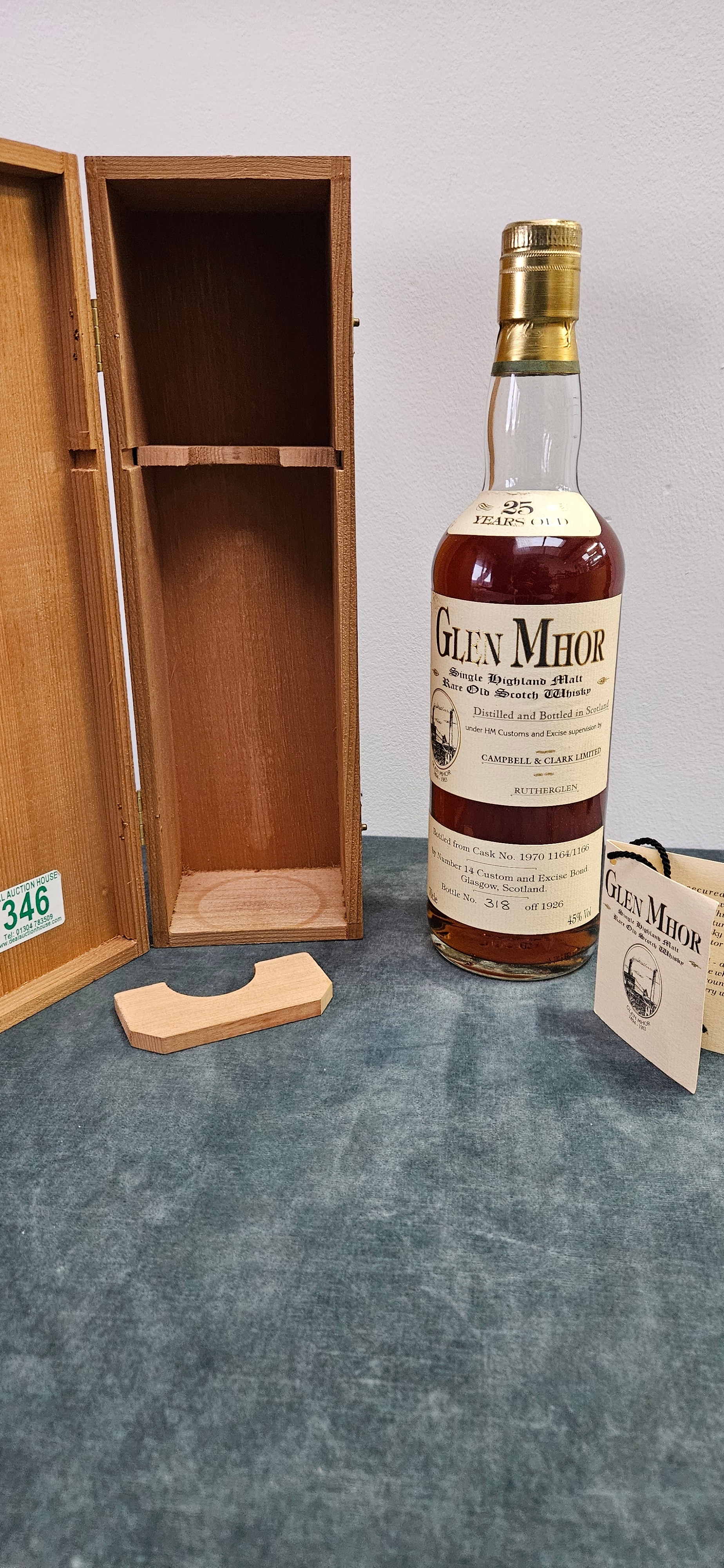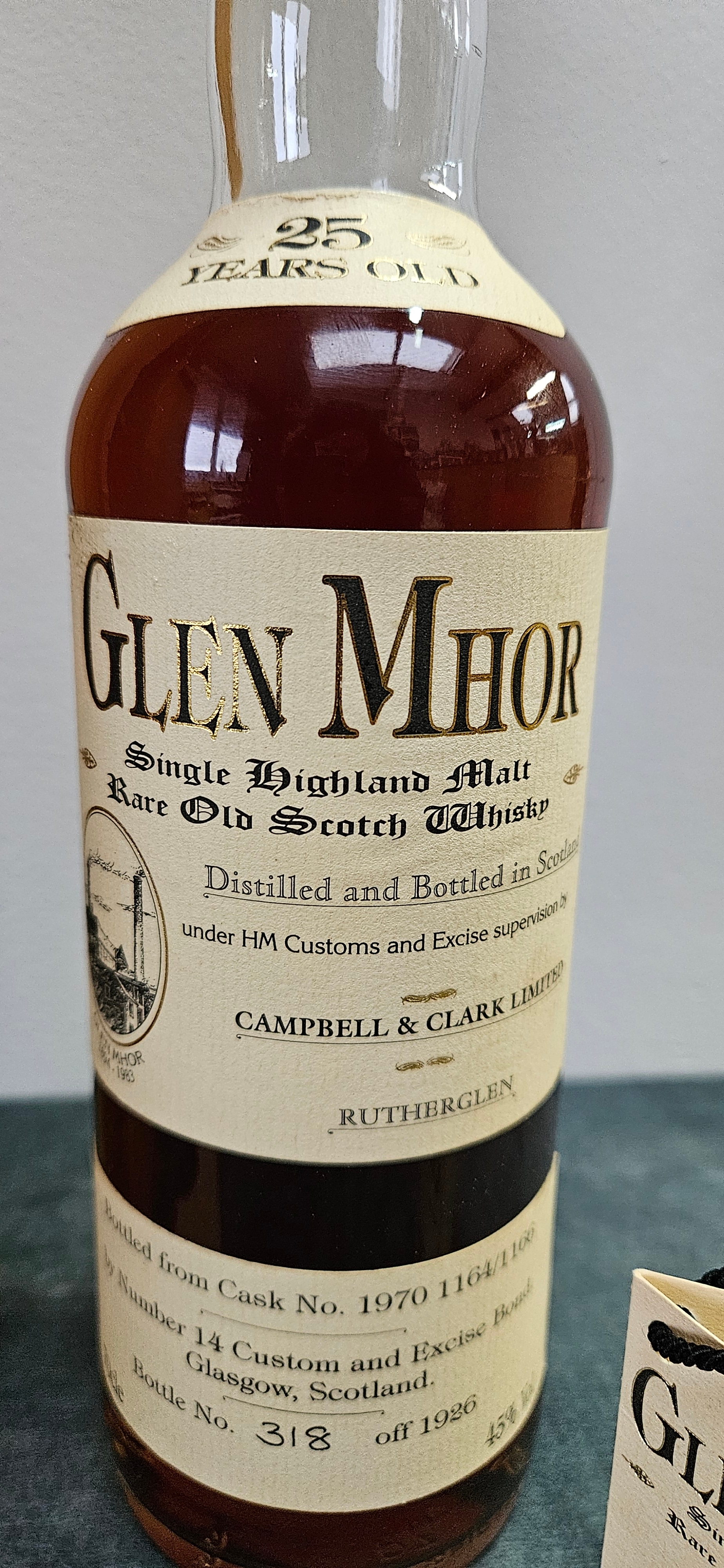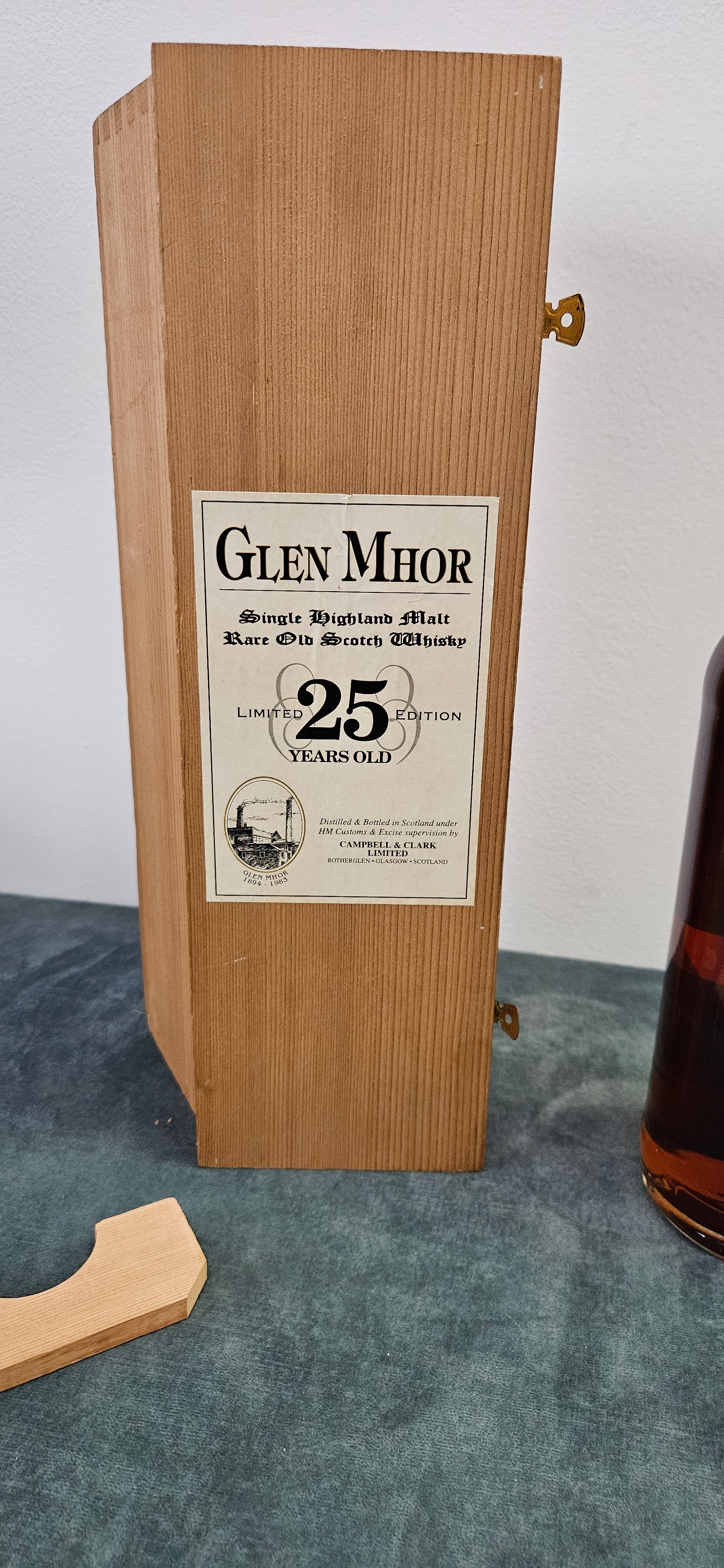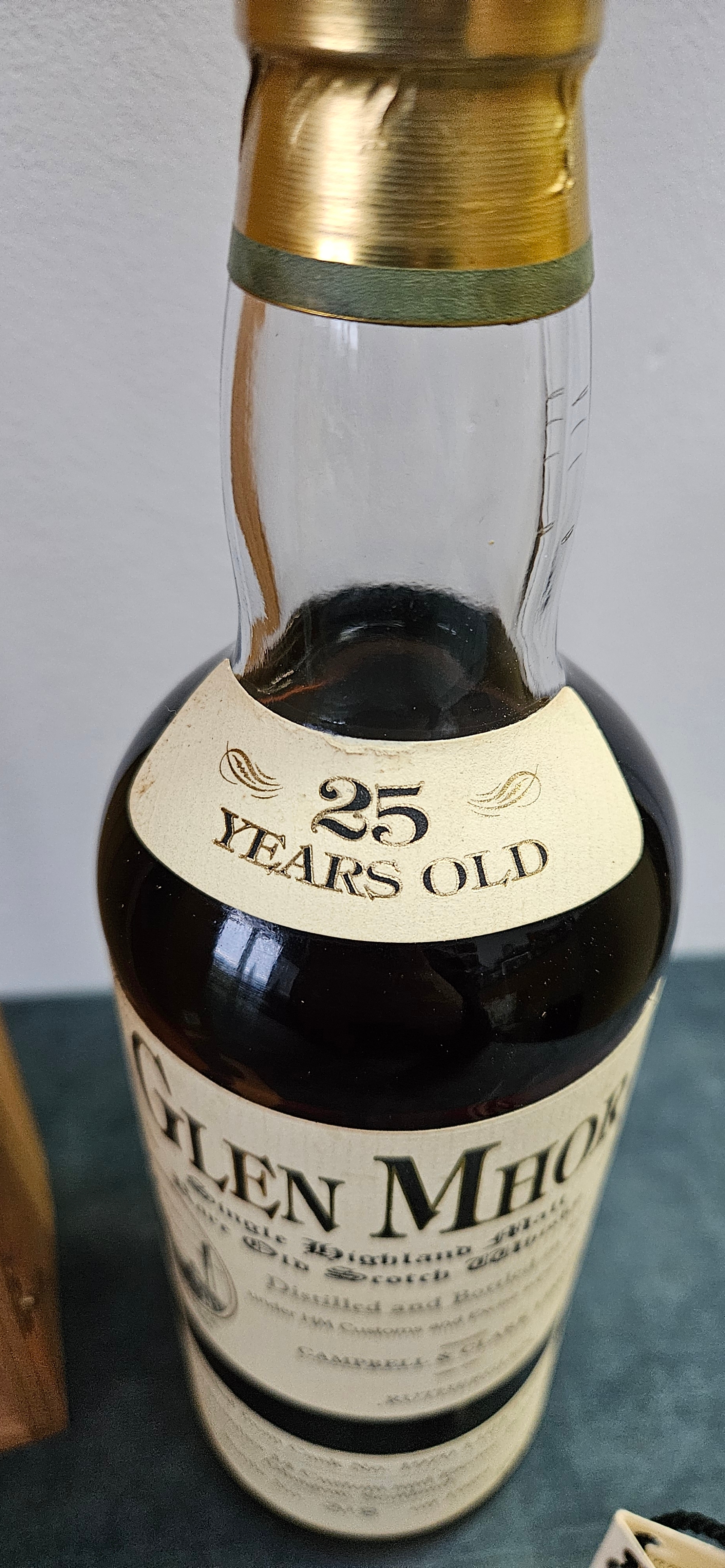 Glen Mhor 1970 25 Year Old Single Malt Scotch Whisky – Campbell & Clark – in wooden presentation box