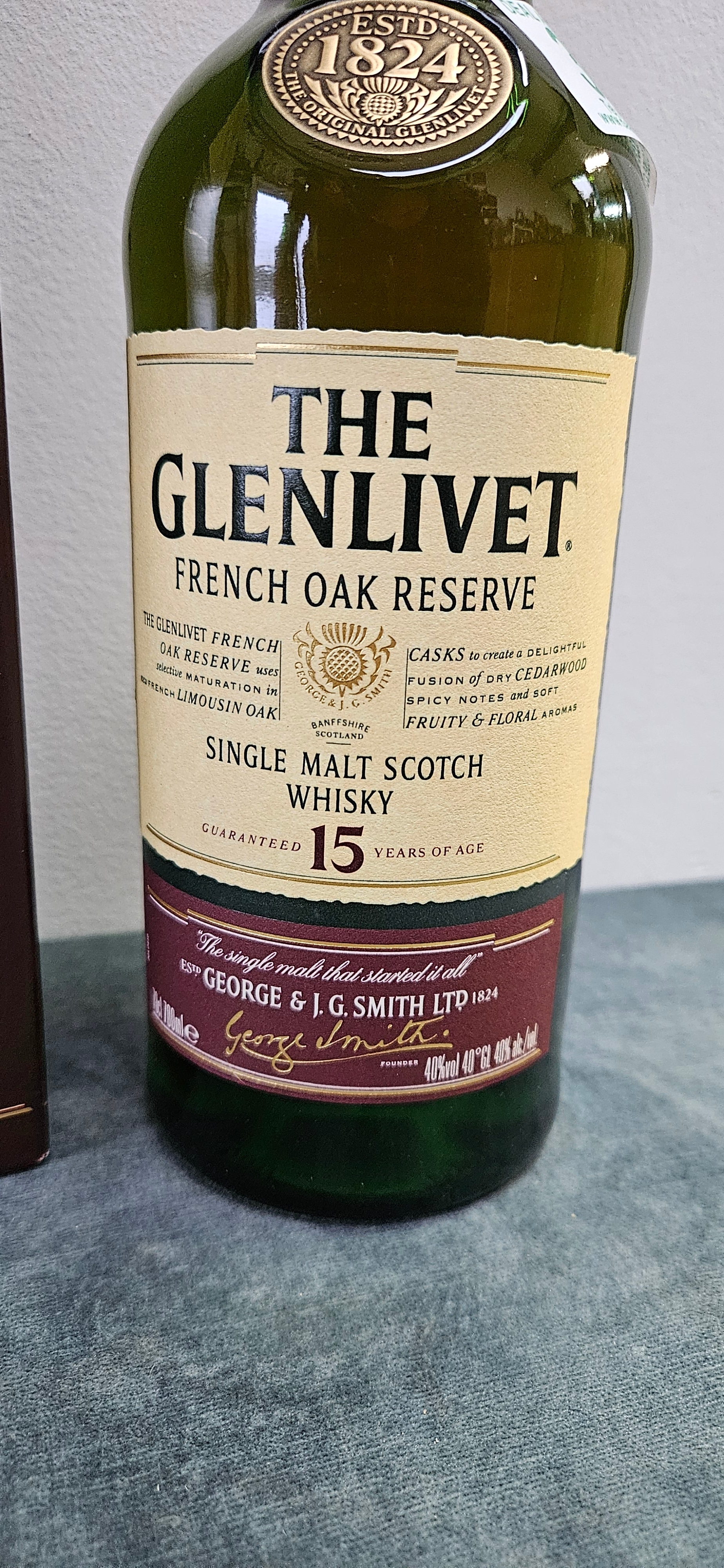 The Glenlivet 15 Year Old French Oak Reserve single malt Scotch whisky.