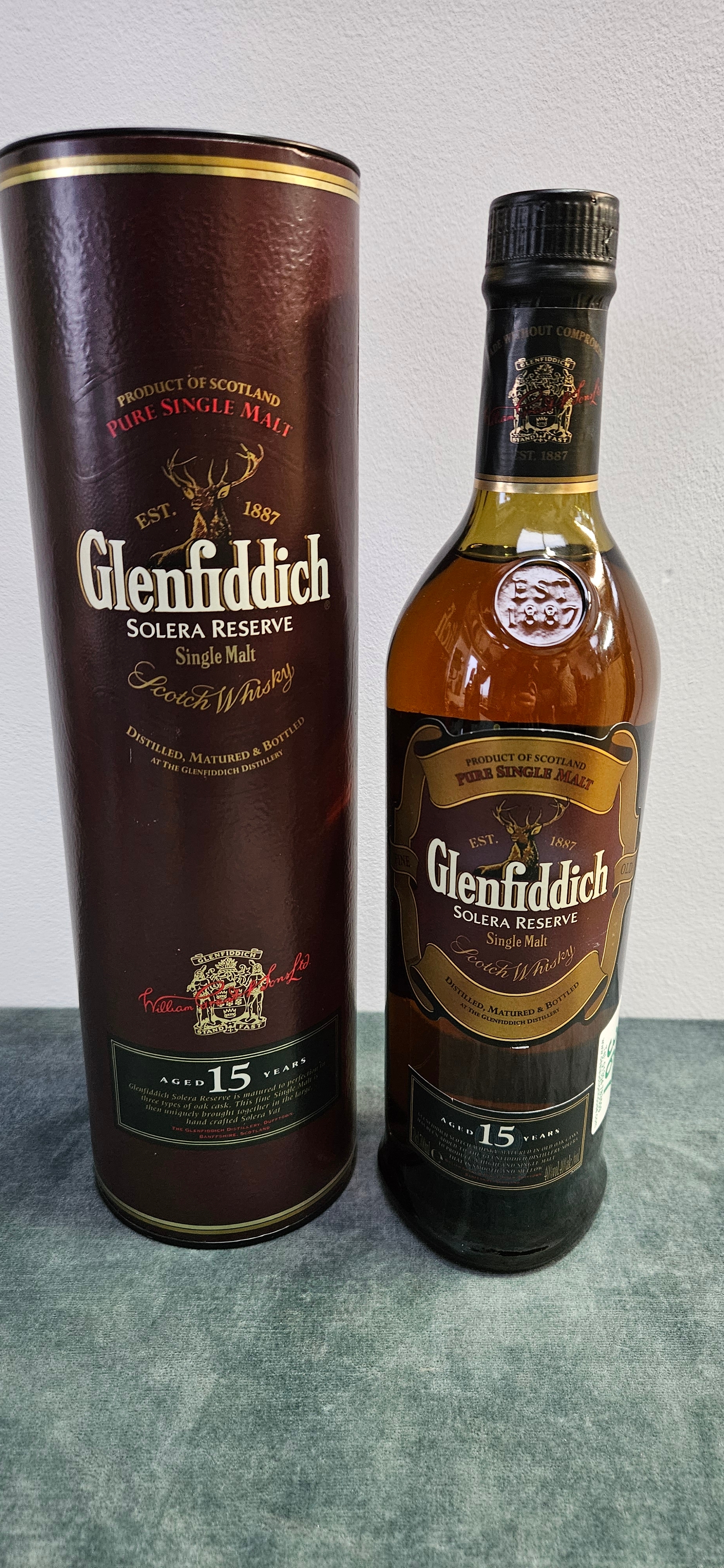 Glenfiddich 15 Year Old Solera Reserve Single Malt Scotch Whisky.