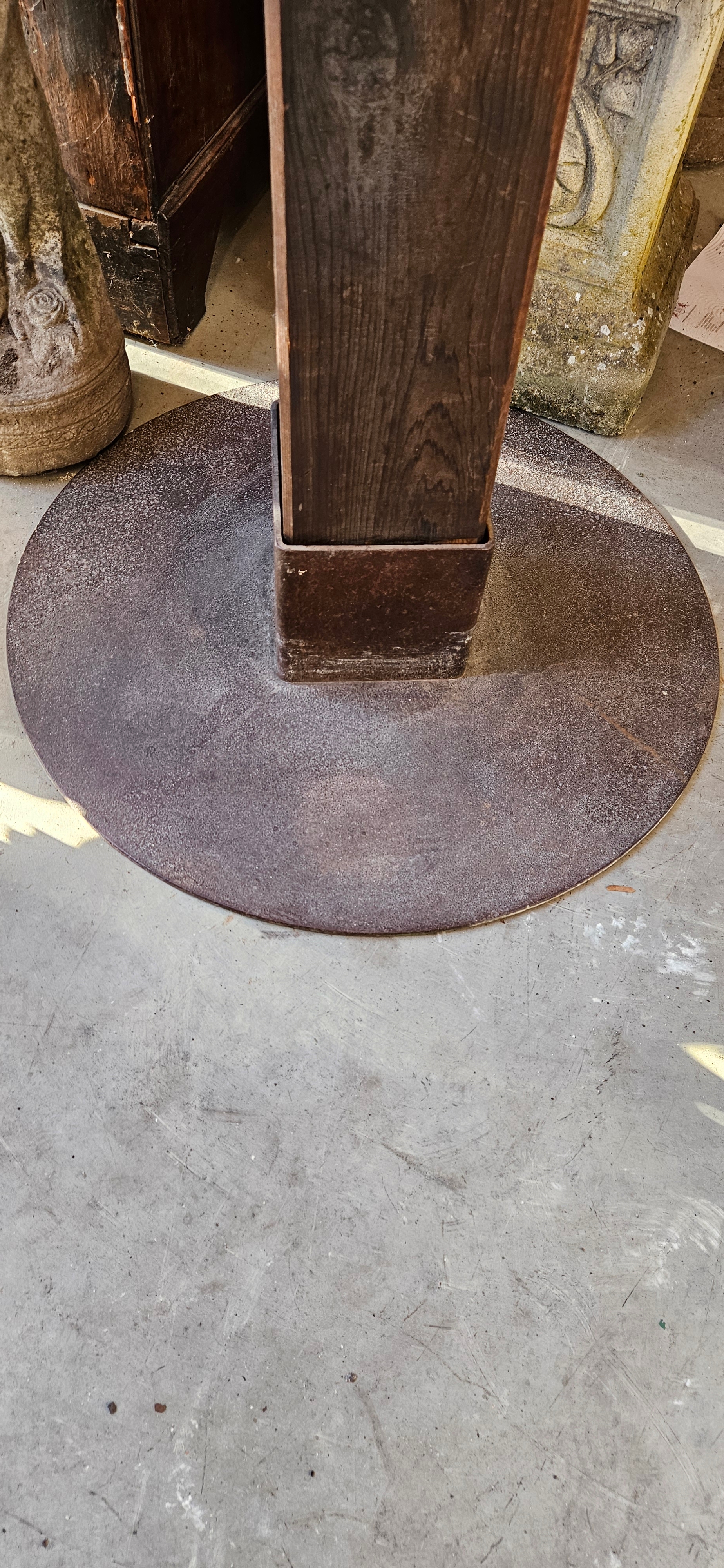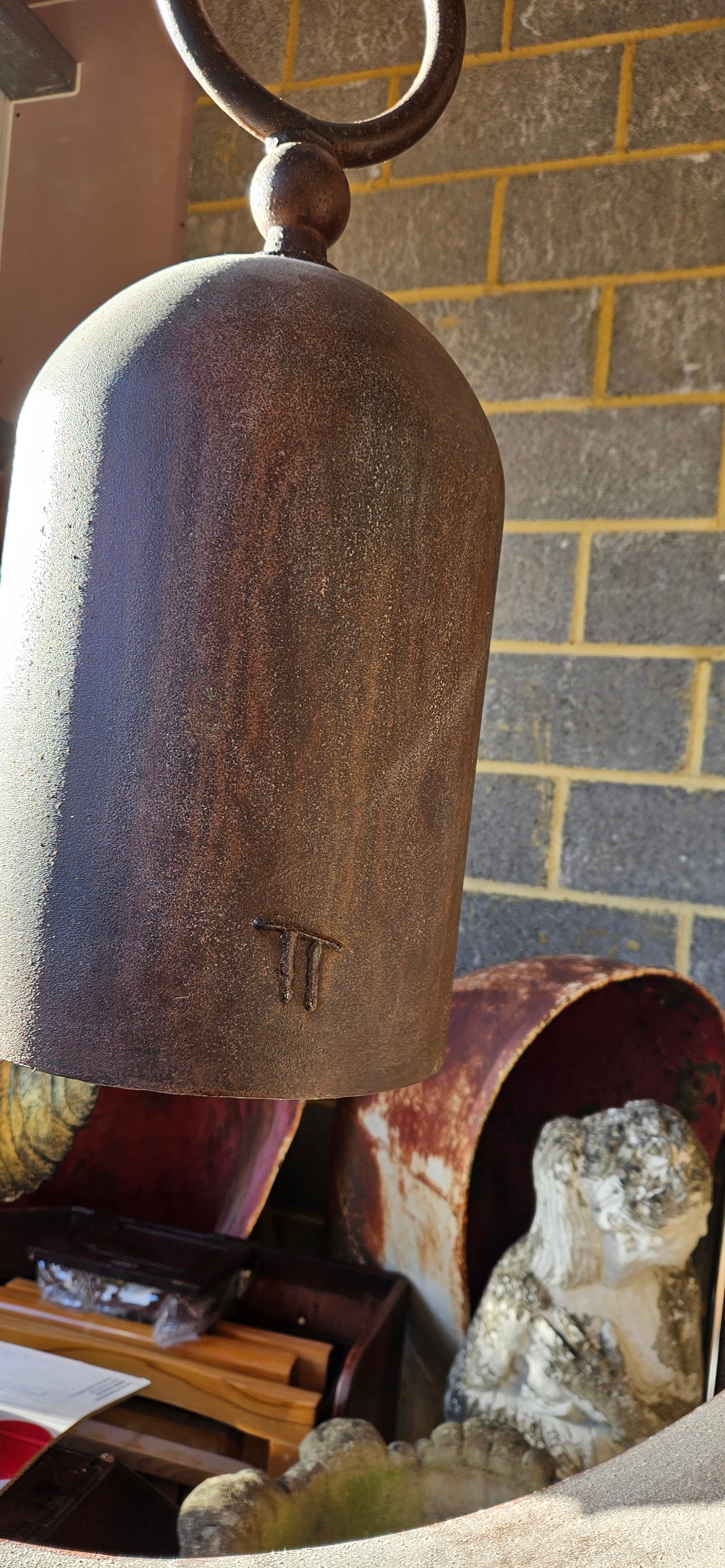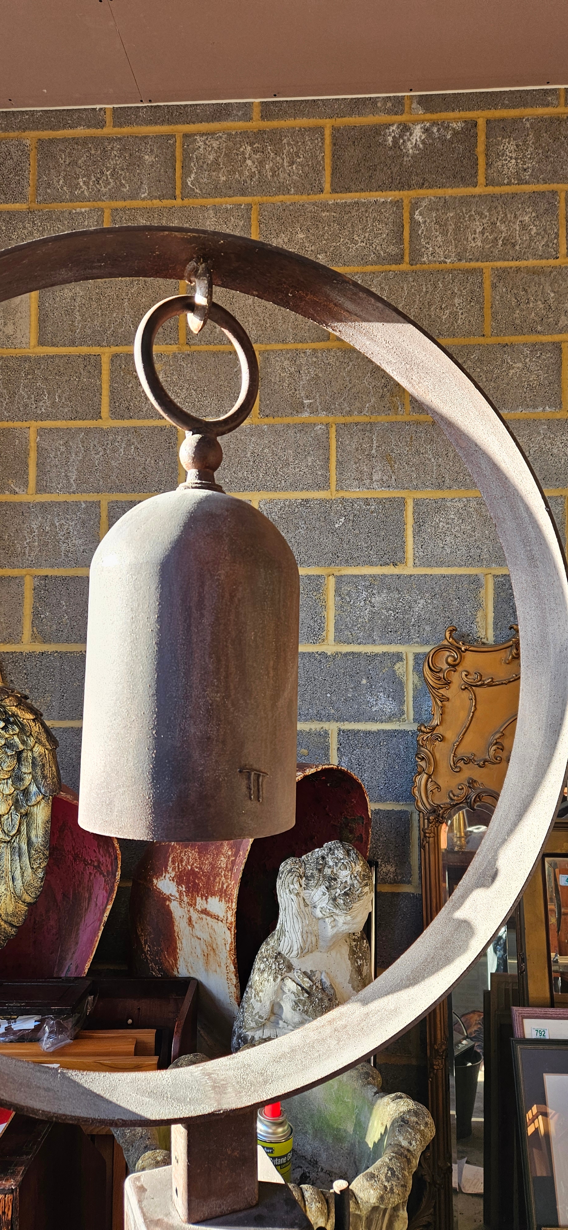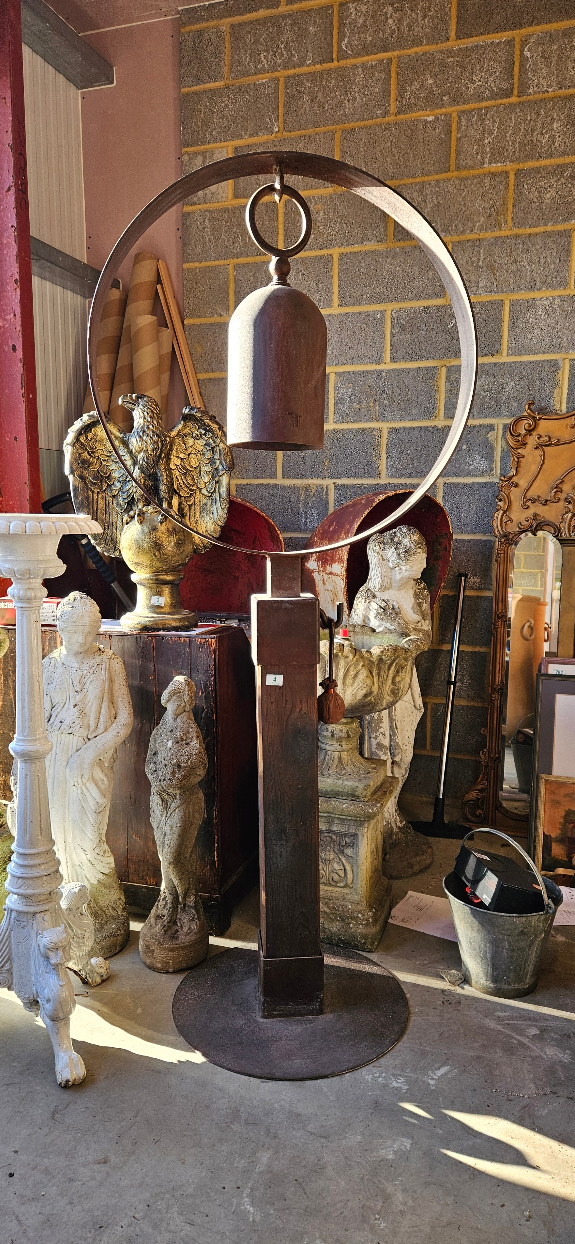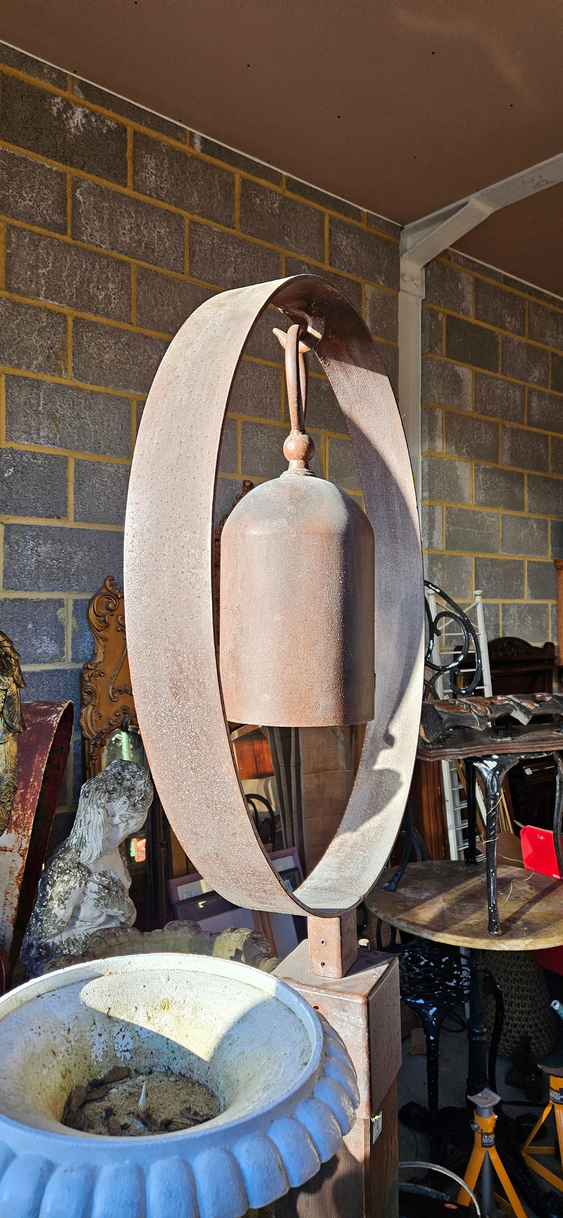 Very large bell/ gong stand. Produced by American metal sculptor Tom Torrens
