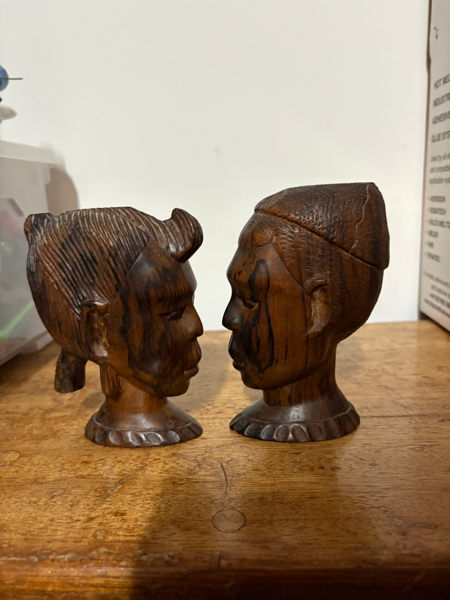 2 x Small wooden carved heads